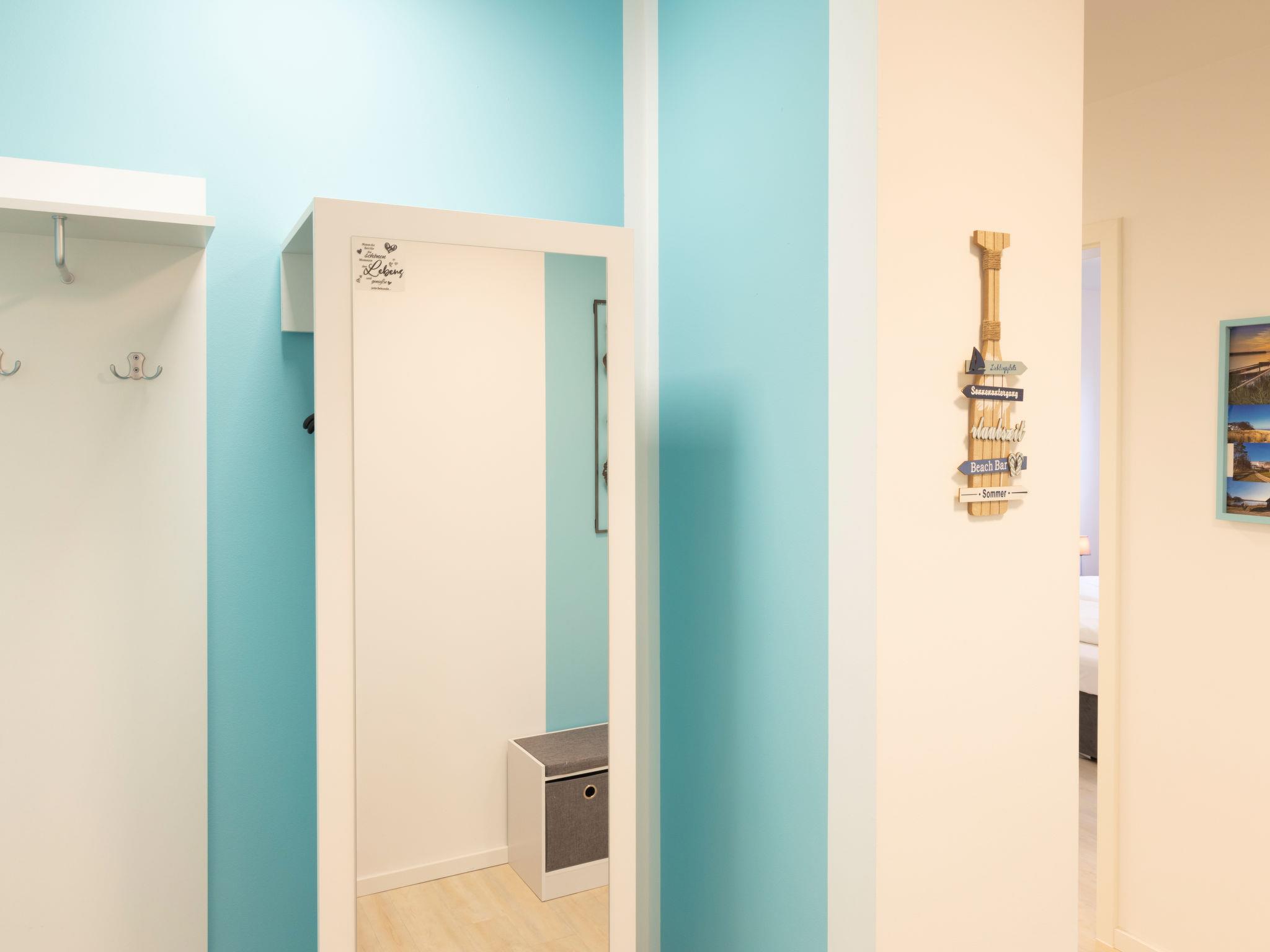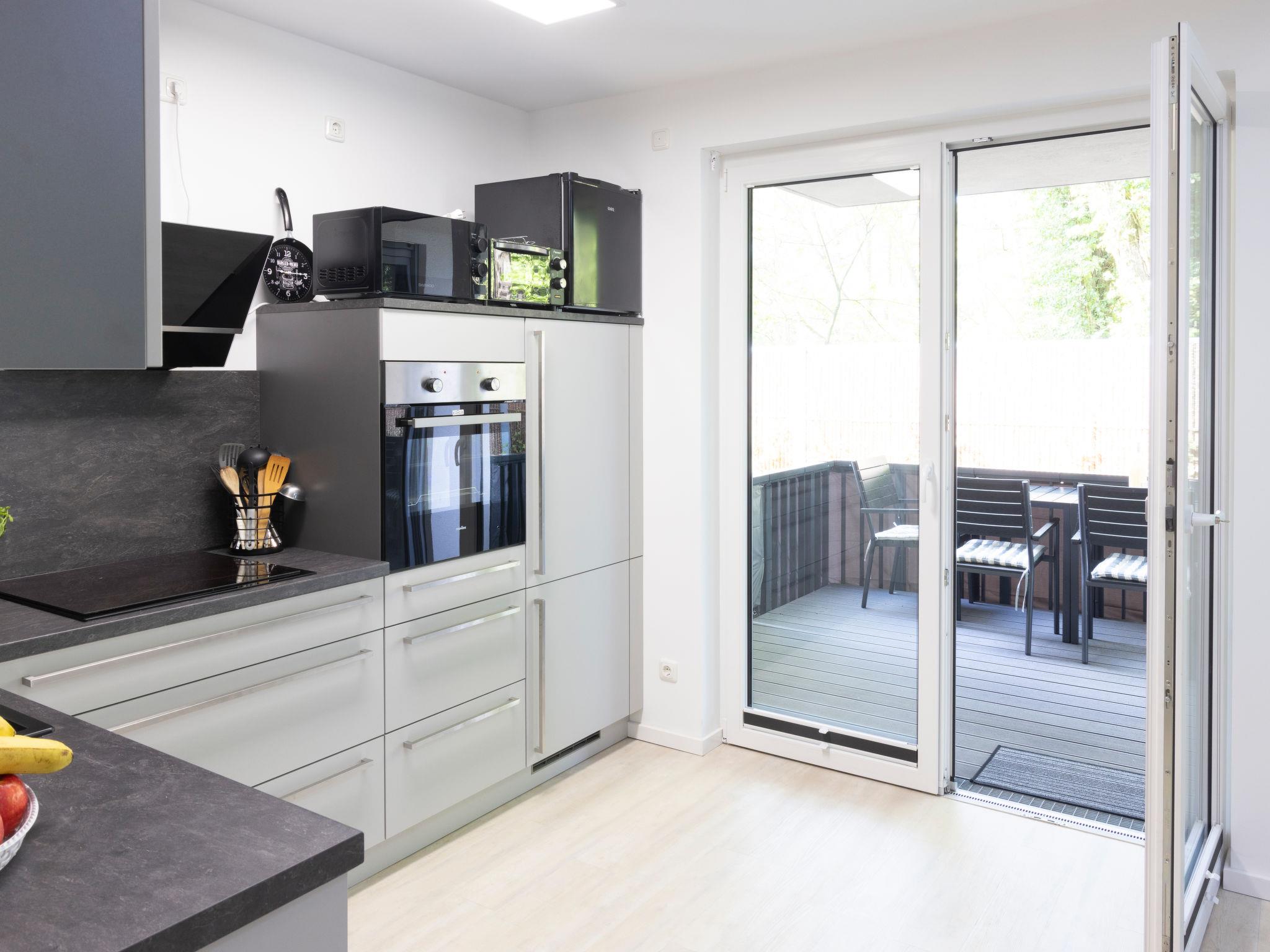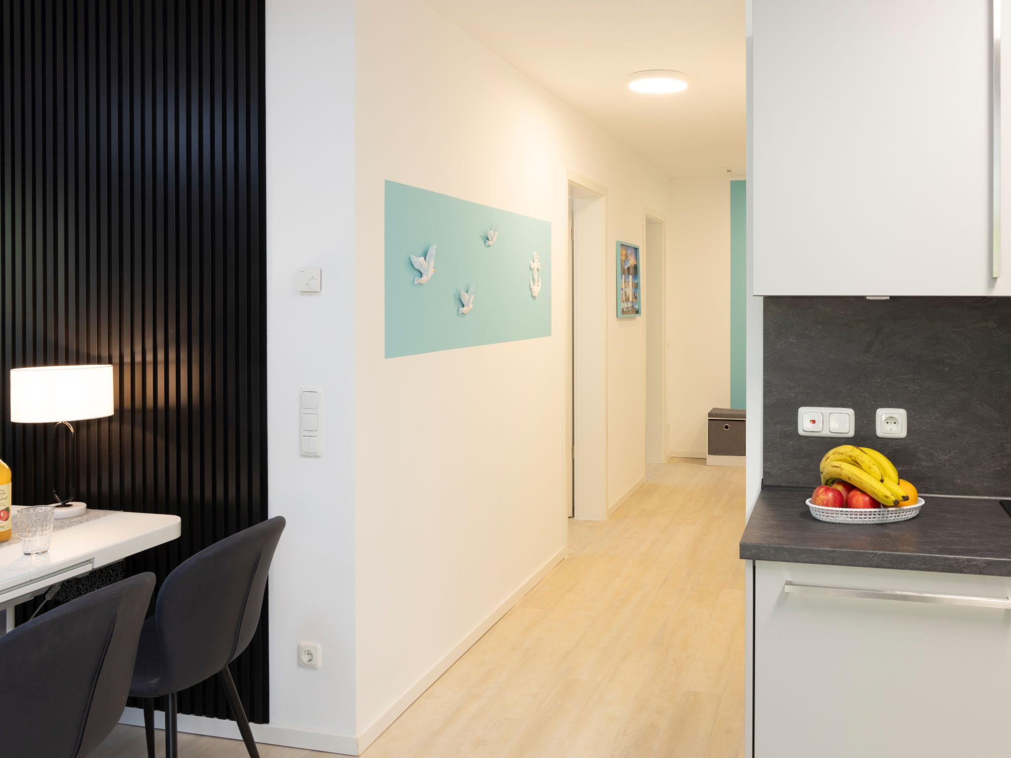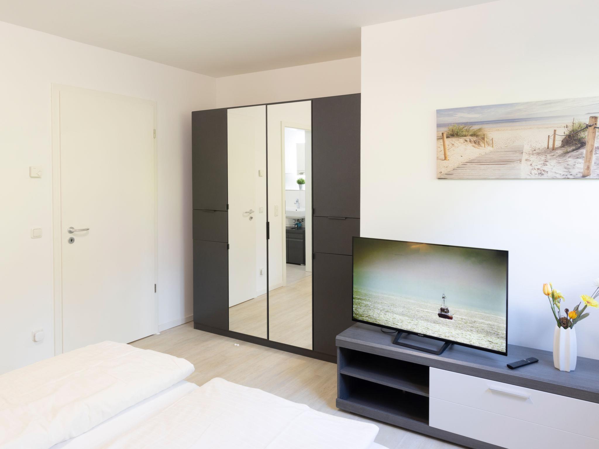 "Sandmann", 3-room apartment 82 m2, on the ground floor. Modern and tasteful furnishings: living/dining room with dining table and cable TV (flat screen). Exit to the terrace. 1 room with 1 double bed (180 cm, length 200 cm), shower/WC and satellite TV (flat screen), electric shutters. 1 room with 1 double bed (180 cm, length 200 cm), electric shutters. Open kitchen (oven, dishwasher, 4 ceramic glass hob hotplates, toaster, kettle, microwave, freezer, electric coffee machine). Shower/WC. Underfloor heating. Terrace partly roofed. Terrace furniture. Facilities: children's high chair, baby cot. Internet (WiFi, free). Garage (1 car), height 190 cm. Please note: suitable for families. Non-smokers only. Maximum 1 small pet/ dog allowed. Smoke alarm. Small dogs up to 30cm shoulder height.