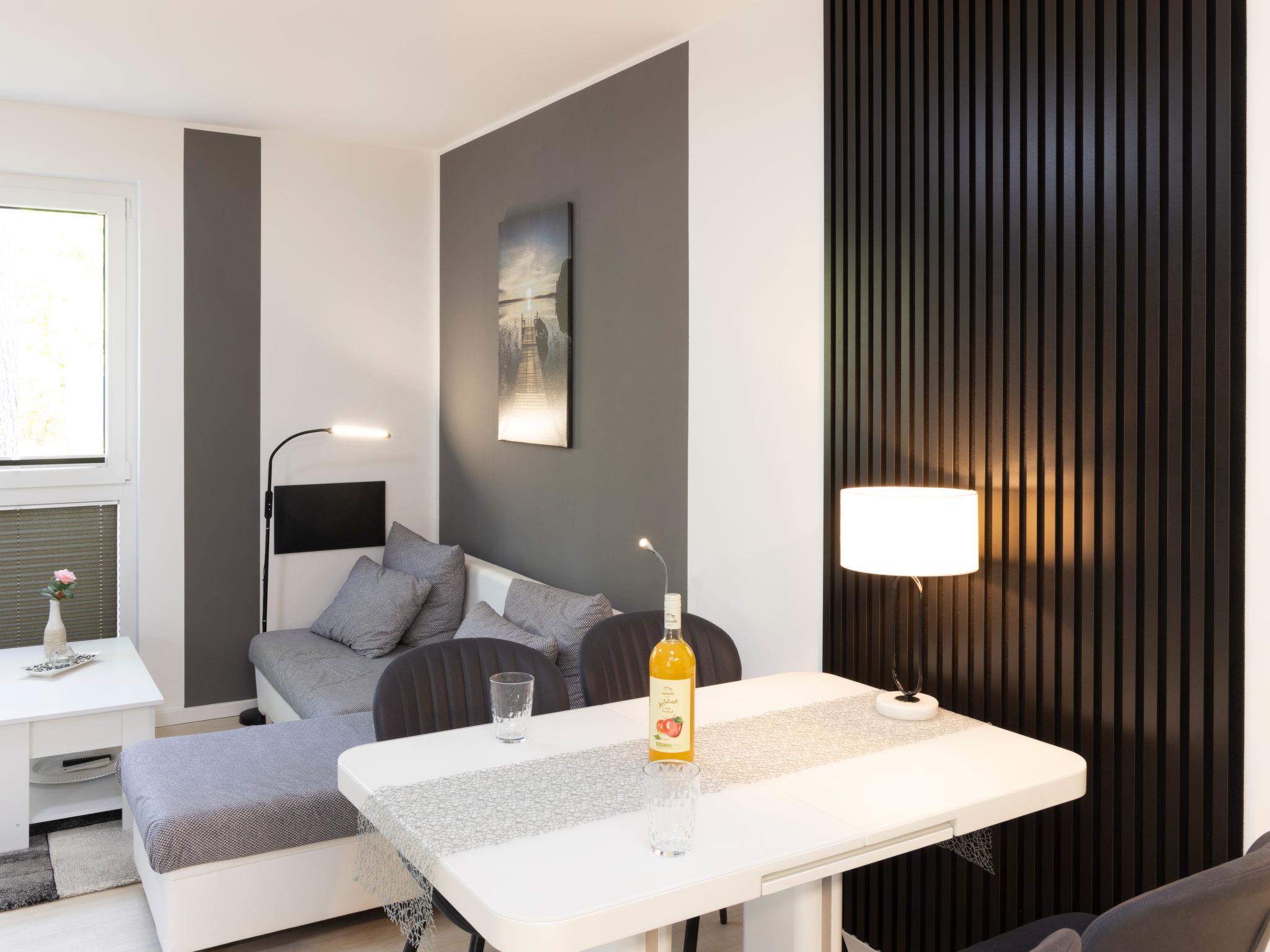 Modern apartment block "Bernsteinquartier", 3 storeys, built in 2023. In the district of Kölpinsee 400 m from the centre of Loddin, 10 km from the centre of Zinnowitz, 19 km from the centre of Wolgast, 750 m from the sea, 750 m from the beach. In the house: lift, central heating system. Communal covered parking. Grocery 1.7 km, supermarket 1.7 km, restaurant 300 m, bakery 350 m, café 800 m, bus stop 450 m, railway station 300 m, sandy beach "Kölpinsee" 750 m.