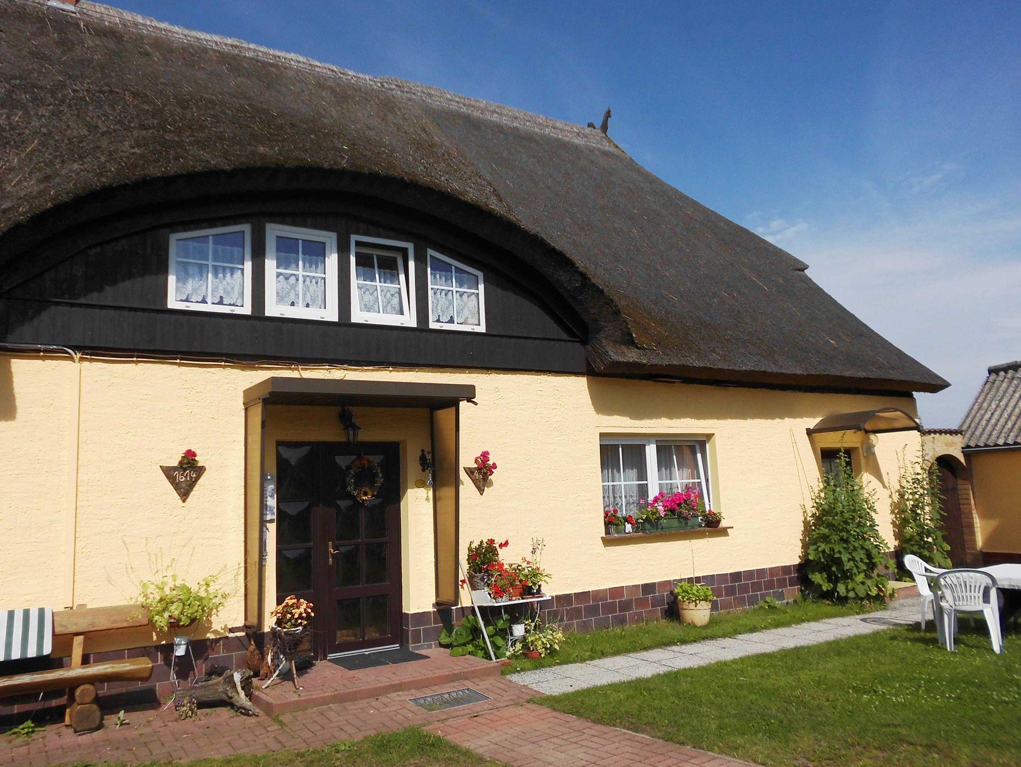 Die Ferienwohnungen befinden sich in einem reetgedeckten Bauernhaus mit direktem Blick und Zugang zum Achterwasser, dem Binnengewässer der Insel Usedom.