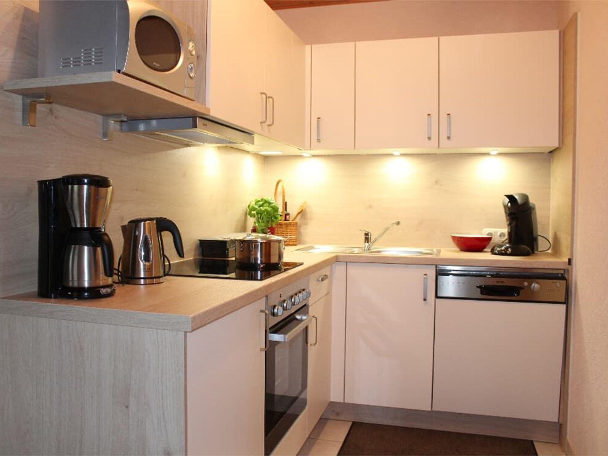 • sehr gut ausgestattete Küche Landhausküche mit Geschirrspüler, Mikrowelle, Cerankochfeld, Backofen, Gefrierfach, Wasserkocher, Filterkaffeemaschine, Toaster, Eierkocher, Kaffeevollautomat