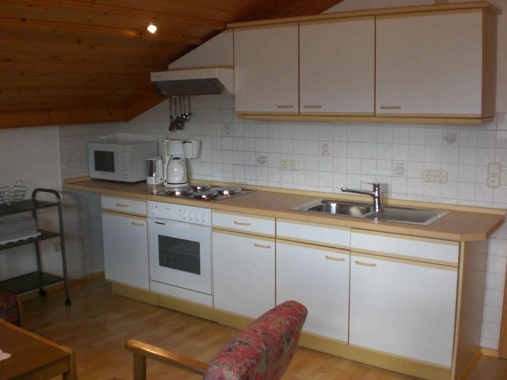 Komfortable und gemütliche Ferienwohnung für 2 Personen mit phantastischer Aussicht auf die Bayerwaldberge. Die Ferienwohnung ist ausgestattet mit einem Schlafzimmer (Doppelbett), einem Wohnzimmer mit Küchenzeile (inkl. E-Herd, Kühlschrank mit Gefrierfach, Kaffeemaschine, Wasserkocher, Mikrowelle, Toaster, ausreichend Geschirr) und separatem Essplatz. Das Badezimmer ist mit Dusche und WC ausgestattet und verfügt über ein Fenster und einen Handtuchtrockner. Falls Sie räumlich getrennt schlafen möchten, können Sie das Sofa im Wohnraum nutzen. Genießen Sie Aussicht: Der große, überdachte Balkon bietet Schutz vor extremer Sonne, Wind und Wetter und lädt zum Verweilen ein. Sie blicken über den Ort Lohberg hinweg auf die Bayerwald-Gebirgskette. Durch den hohen Kniestock sind die Räume voll nutzbar, die anteiligen Dachschrägen und Holzdecken verleihen der Wohnung zusätzlich ein Stück Gemütlichkeit. Aufgrund der Hanglage des Hauses erreichen Sie die Wohnung im Treppenhaus über eine Etage nach oben, obwohl sich der Balkon eigentlich im Obergeschoss befindet.