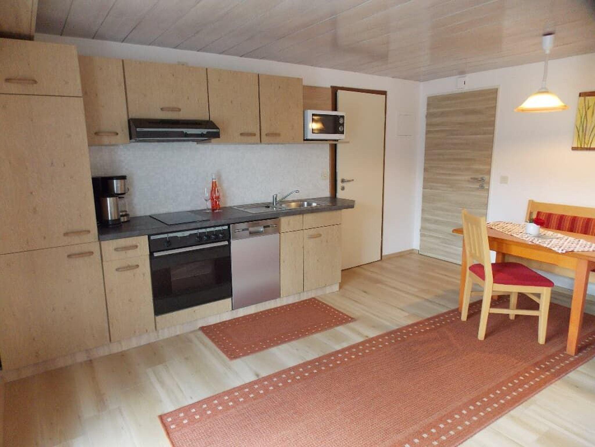 Mit 40qm bietet die Ferienwohnung Platz für 2 Personen. Doppelbett, Wohnraum mit Flachbild TV. und einem Bad. Die Küche ist ausgestattet mit Spülmaschine, Backofen, Kaffeemaschine, Kühlschrank, Mikrowelle und Toaster. Endreinigung, Parkplatz und WLAN sind im Preis enthalten. Auf der schönen Terrasse können Sie den freien Blick auf die umliegenden Bayerwaldberge genießen.