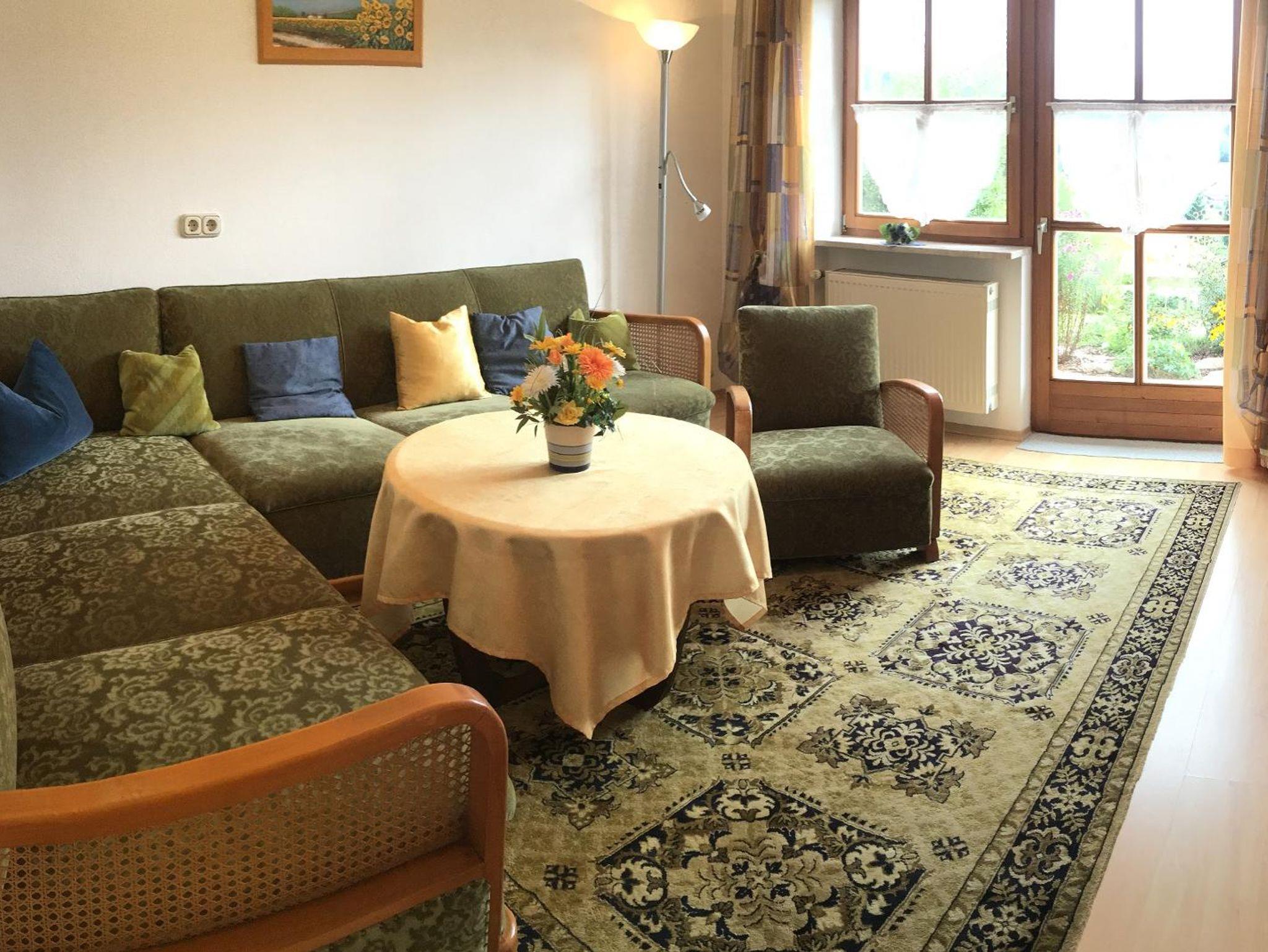 Komfortable und gemütliche Ferienwohnung für 2 - 4 Personen mit herrlicher Aussicht auf die Bayerwaldberge. Die Ferienwohnung ist ausgestattet mit einem Wohnzimmer, einer Küche (inkl. E-Herd, Kühlschrank mit