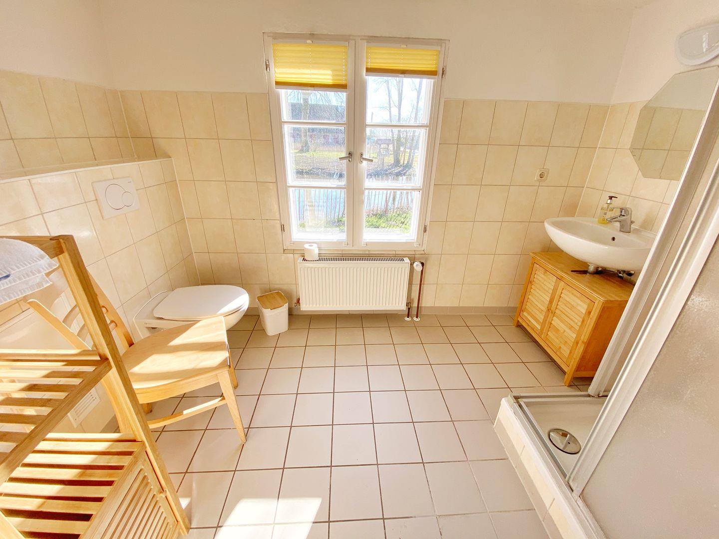 Das in 2019 komplett renovierte Ferienhaus "Alte Mühle" gehört zum Hofgut Bisdamitz und bietet Platz für insgesamt 5 Personen. Das idyllische Ziegelhaus steht auf einem kleinen, umzäunten Grundstück mit Garten und Sitzecke. Auf ca. 90 qm Wohnfläche gibt es drei Zimmer, eine Küche, ein Badzimmer, ein Gäste-WC und Sauna. Das helle Wohnzimmer bietet eine Couchecke, einen Flachbild-TV und einen Kamin für gemütliche Stunden. Über eine Treppe ins Obergeschoß erreicht man die beiden Schlafzimmer: eines davon mit Doppelbett und das andere mit Doppelbett und einem Einzelbett. Die moderne und freundliche Wohnküche bietet neben einem großen Esstisch alle zu einer Küche gehörenden Annehmlichkeiten und Ausstattungen wie Geschirrspüler, Mikrowelle, Ceran-Kochfeld, Backofen, Kühlschrank mit Gefriermöglichkeit und natürlich Kaffeemaschine, Toaster und Wasserkocher. Das Bad im Erdgeschoß verfügt über eine Dusche und WC. Im Obergeschoß gibt es ein weiteres Gäste-WC. Außerdem steht den Gästen eine eigene Sauna zur Verfügung. Das Ferienhaus ist gemütlich im Landhausstil eingerichtet. Zum Haus gehört ein kleiner Garten mit Sitzecke. Das Grundstück ist eingezäunt, so dass Sie dort auch ihre vierbeinigen Freunde laufen lassen.