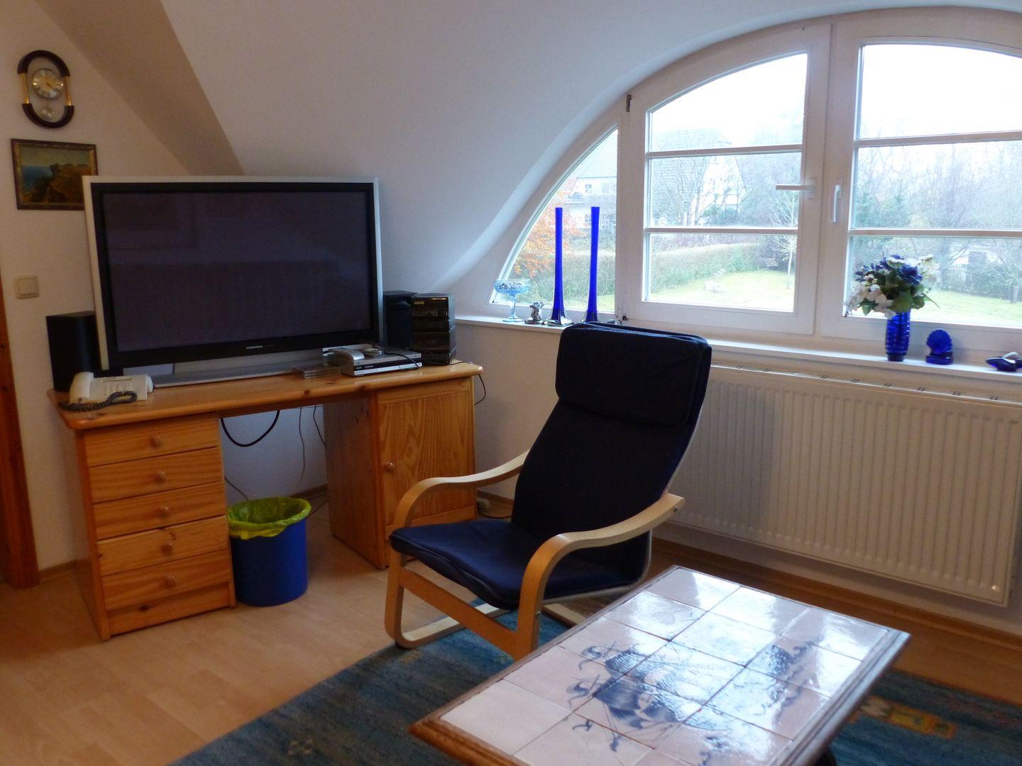 In der Ferienwohnung im Dachgeschoss mit 68qm Wohnfläche gibt es neben einem Wohnbereich 3 Schlafzimmer, ein Bad und ein Gäste-WC. Sie ist ausgestattet für 6 Personen. Im Wohnbereich finden Sie einen CD-Player, Flachbildfernseher, Kassettenrekorder und ein Telefon vor. Die großzügige Einbauküche ist mit einem 4-Plattenherd, Backofen, Dunstabzugshaube, Kaffeemaschine, Kochzeile, Kühlschrank, Toaster und Wasserkocher ausgestattet. Kinderbett und Hochstuhl sind vorhanden. Die Terrasse mit dem Garten ist mit Gartenmöbel für gemütliche Stunden ausgestattet. Ein kostenloser PKW-Stellplatz am Haus ist vorhanden.