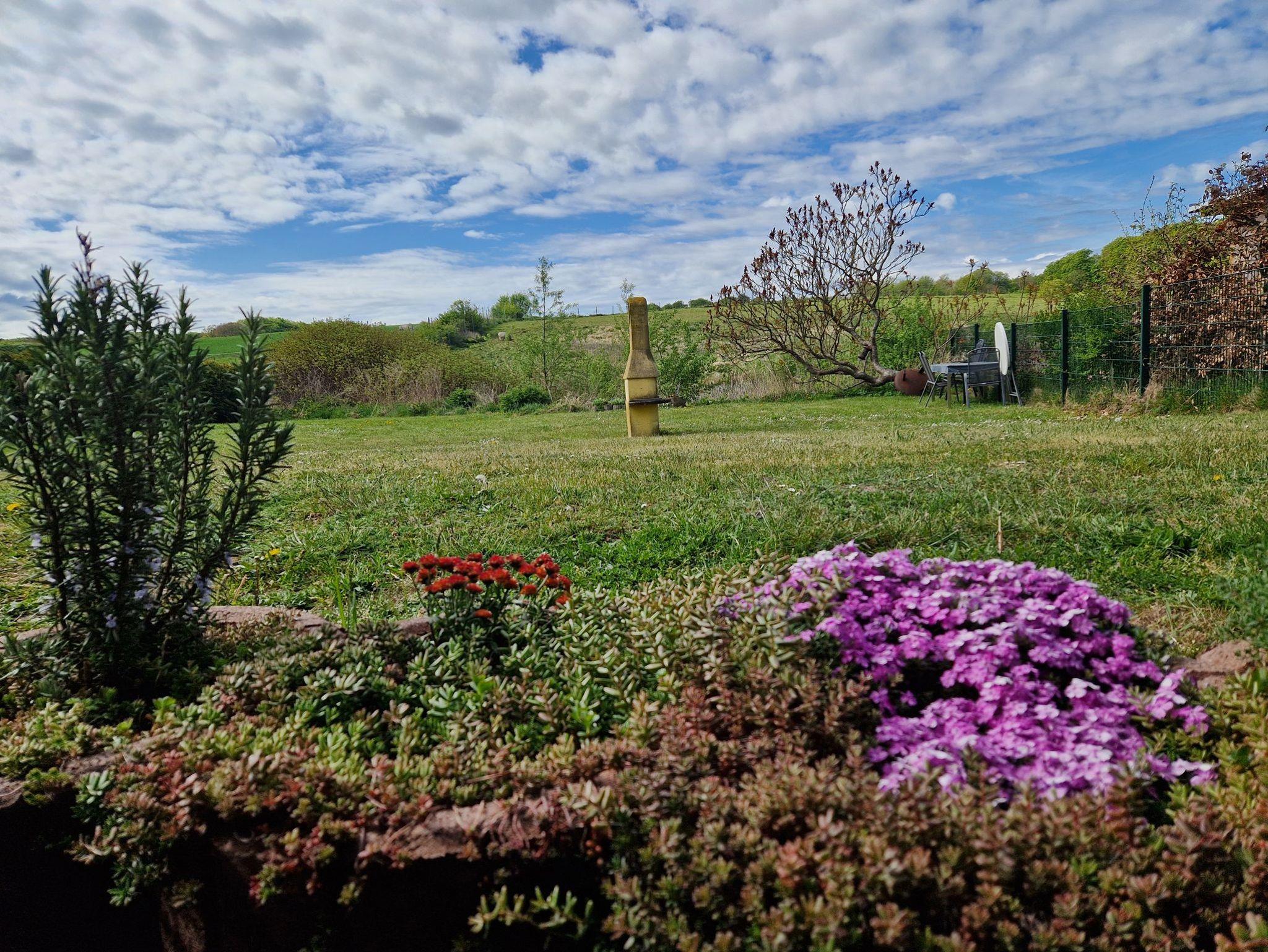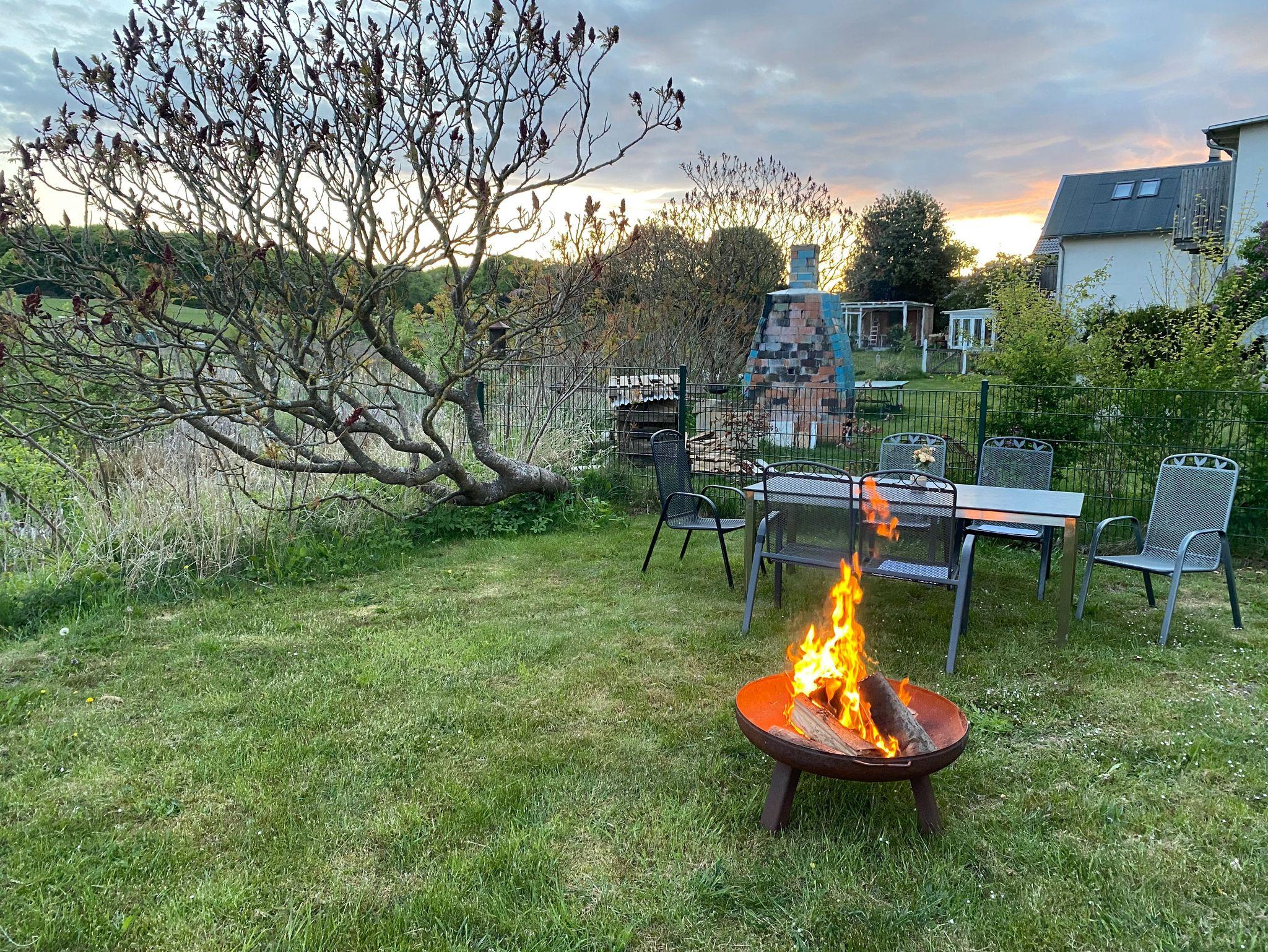 Draußen: Auf dem Grundstück befindet sich ein Grillplatz und eine Feuerschale. Dieser steht zur gemeinschaftlichen Benutzung zur Verfügung.