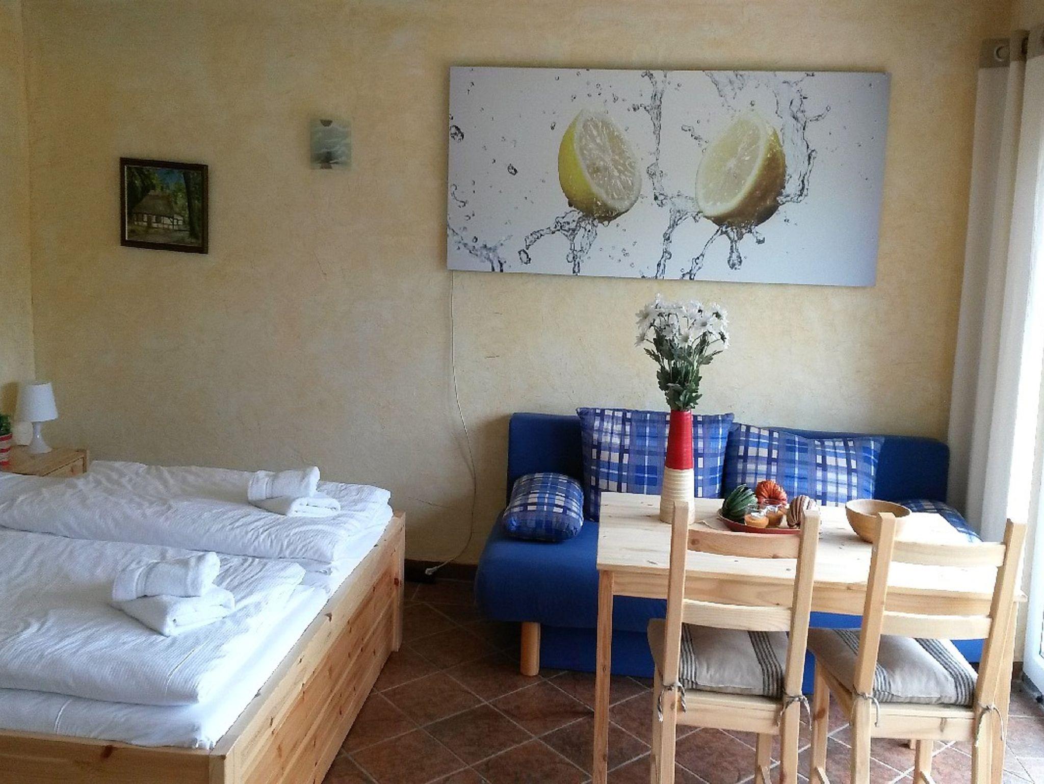 * 1 großer Wohn-/Schlafraum mit Couch, Doppelbett