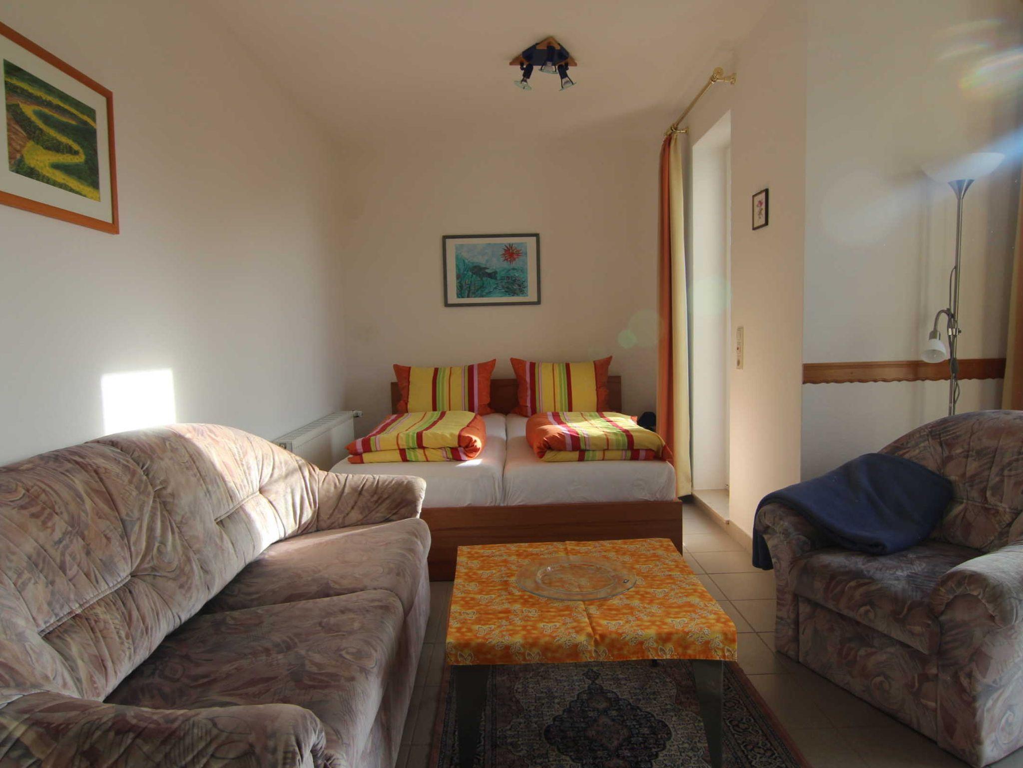 Das 25 Quadratmeter grosse Appartment ist ausgestattet mit einem kombinierten Wohn- und Schlafbereich (mit einem Doppelbett), einer offenen Küche und einem Duschbad.