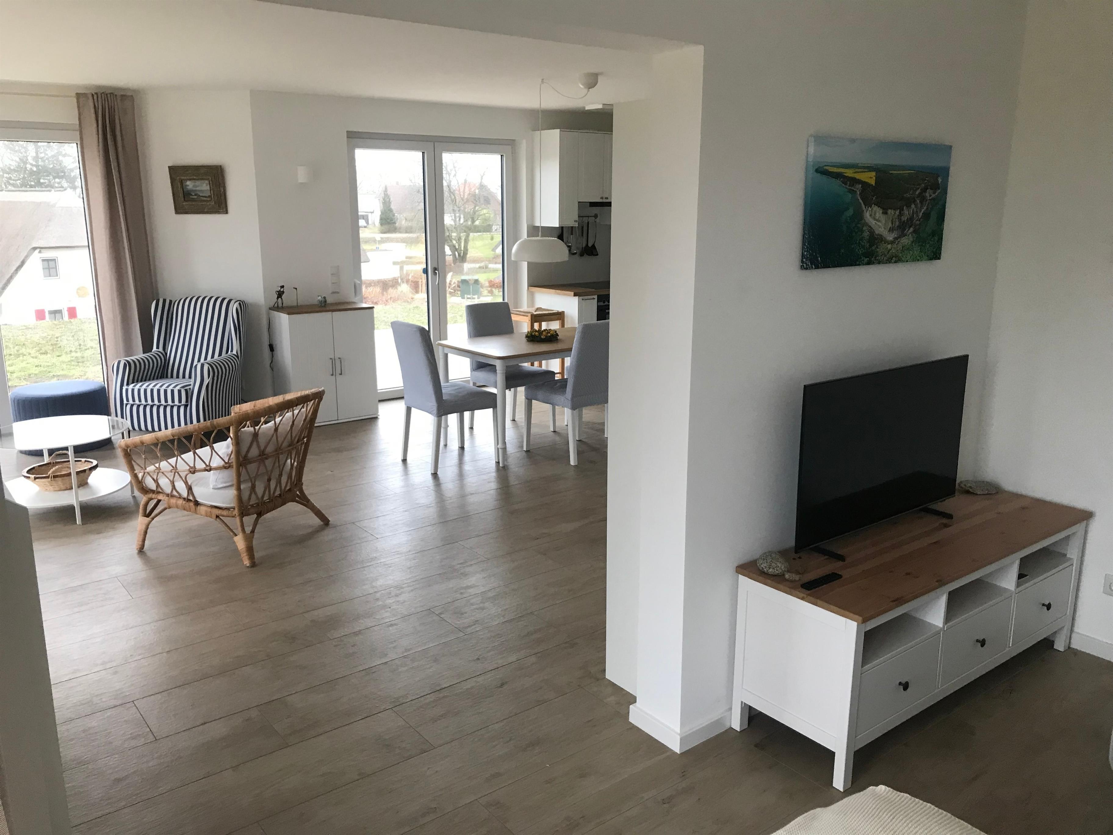 Die nordisch-helle Einrichtung ist vollständig neu angeschafft worden und gibt eine gemütliche Urlaubsatmosphäre, ist aber auch auf permanent gründliche Putz- und Hygienearbeiten ausgerichtet.