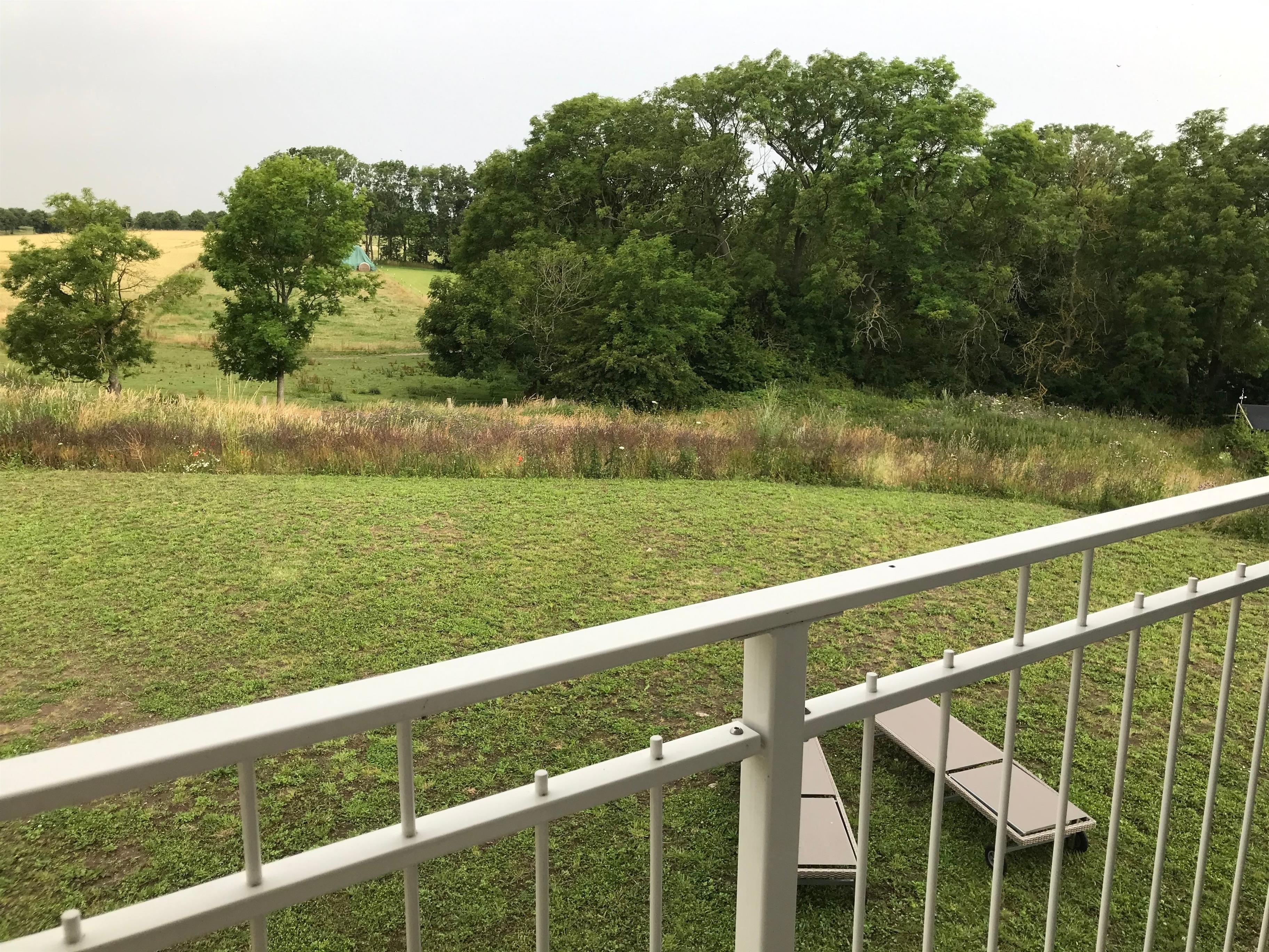 Für eine besonders erholsame Nachtruhe können alle Räume durch Rolläden abgedunkelt werden und vor oder nach dem Schlaf ist vom Balkon der beiden oberen Schlafzimmer aus der Weitblick mit faszinierendem Sonnenuntergang zu genießen. In den frühen Morgenstunden sind häufig interessante Wildtiere wie Fuchs, Wildkatze, Rehe und (mitunter weiße) Hirsche zu beobachten, im Frühjahr und Herbst verweilen Kraniche und Wildgänse auf den Feldern.