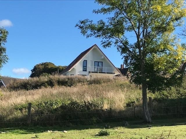 Hoch im Norden Rügens, eingerahmt von der Kreide-Steilküste und dem Nationalpark Jasmund, liegt am Rande der Gemeinde Lohme - frei von Durchgangsstraßen - der idyllische Ort Ranzow. Hier finden Sie am Ende einer kleinen Stichstraße das freistehende Einfamilienhaus Breidablik mit großzügigem Garten, Terrassen und zugehörigen Naturwiesen. Das Haus liegt erhöht am Berg und bietet Rundumblick auf ganz Ranzow und sein Schloss sowie die angrenzenden Felder, Pferdekoppeln, Wald und Meerstreifen. Hier sind Sie ungestört für sich und finden Ruhe und Entspannung.