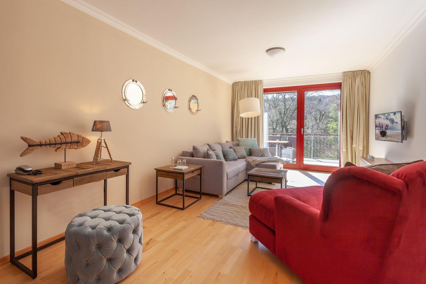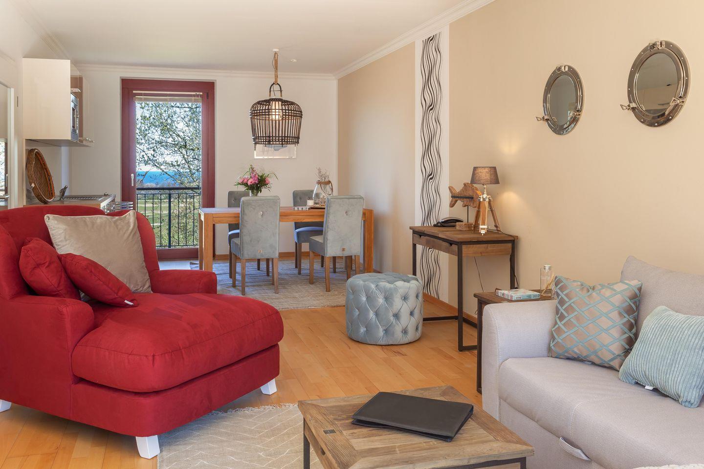 Im Haus Fore direkt am Golfplatz mit Blick auf die Ostsee bietet Ihnen unsere großzügige 2-Raum-Ferienwohnung „Hiddensee II“ mit hochwertigem Interieur Wärme und Wohnkomfort.