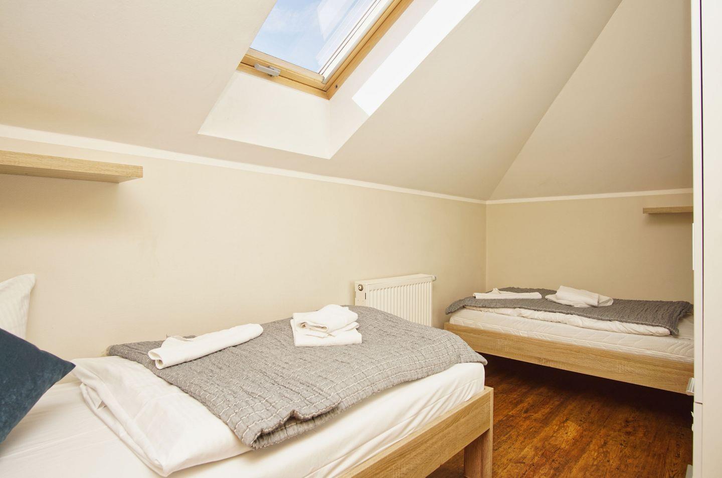 SCHLAFEN // ein Schlafzimmer mit bequemem Doppelbettbett, zweites mit zwei Einzelbetten ++