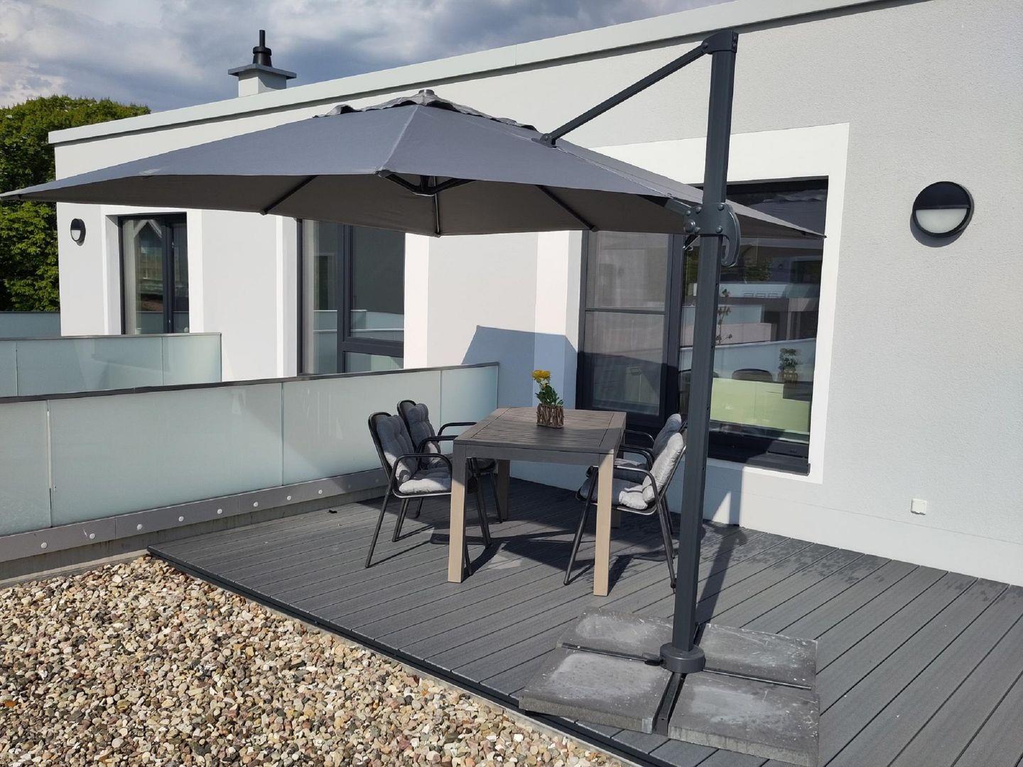 Herzlich Willkommen in der Ferienwohnung Tee 9 mit gemütlichen 67 m² Wohnfläche verteilt auf 2 Zimmer. Diese charmante Ferienunterkunft verbindet Komfort, Moderne und eine einladende Atmosphäre, um Ihren Aufenthalt an der Ostsee auf der Insel Rügen zu einer erholsamen Auszeit zu gestalten.Hier finden bis zu 4 Personen Platz. Die offenen, voll ausgestatteten Küche bietet alles, was Sie für die Zubereitung Ihrer Lieblingsgerichte benötigen. Das Bad ist mit einer ebenerdigen Dusche und einer Badewanne ausgestattet, um Ihnen ein Gefühl wie zu Hause zu geben. Besonders hervorzuheben ist die Dachterrasse für gemütliche Abende. Nicht zu vergessen, die wundervollen Sonnenuntergänge.