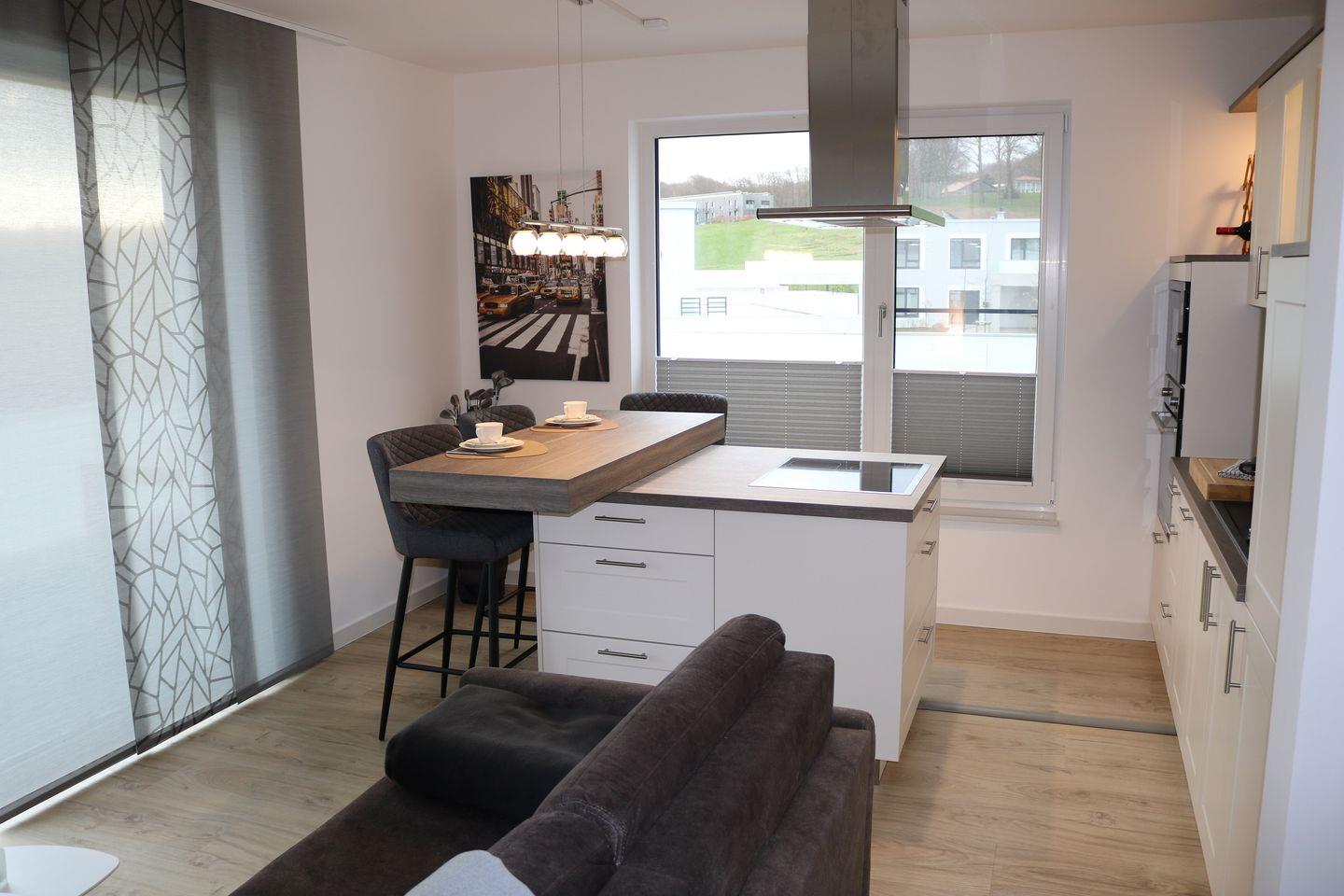 In einer der schönsten Gegenden Deutschlands erwartet Sie eine geräumige Wohnung mit 67 Quadratmetern, die Platz für bis zu 4 Personen bietet und perfekt für einen erholsamen Urlaub geeignet ist. Die Wohnung besitzt ein gemütliches Wohnzimmer mit einer offenen, voll ausgestatteten Küche, die alles bietet, was Sie für die Zubereitung Ihrer Lieblingsgerichte benötigen. Im Schlafzimmer können Sie sich nach einem ereignisreichen Tag an der Ostsee herrlich entspannen, während zwei weitere Personen auf dem bequemen Schlafsofa Platz finden. Das Badezimmer ist mit einer ebenerdigen Dusche und einer Badewanne ausgestattet, um Ihnen ein Gefühl wie zu Hause zu geben.