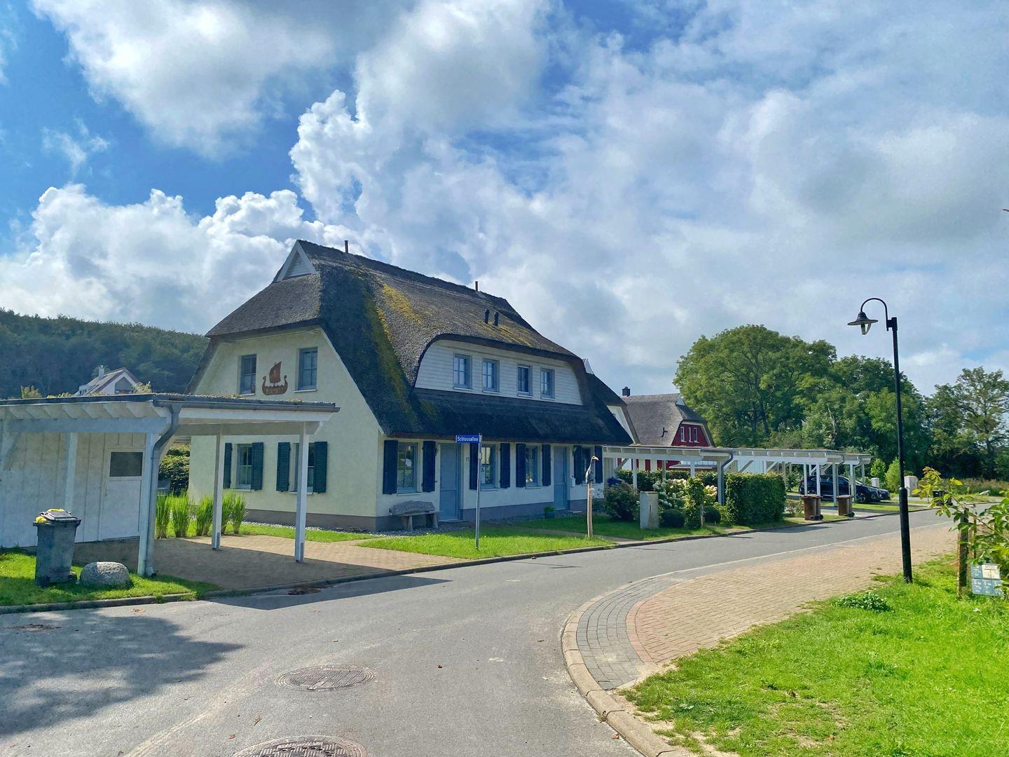 Die wunderschöne Doppelhaushälfte mit Reetdach und gepflegtem Garten befindet sich in Lohme, OT Ranzow, auf der Halbinsel Jasmund im Nordosten der Insel Rügen. In etwa 25 Gehminuten ist die beeindruckende Steil- und Kreideküste und der imposante Königsstuhl im Nationalpark Jasmund zu erreichen. In unmittelbarer Nähe befindet sich das Schloss Ranzow mit einem 18 Loch-Golfplatz, einem Restaurant sowie Wellnessbereich.