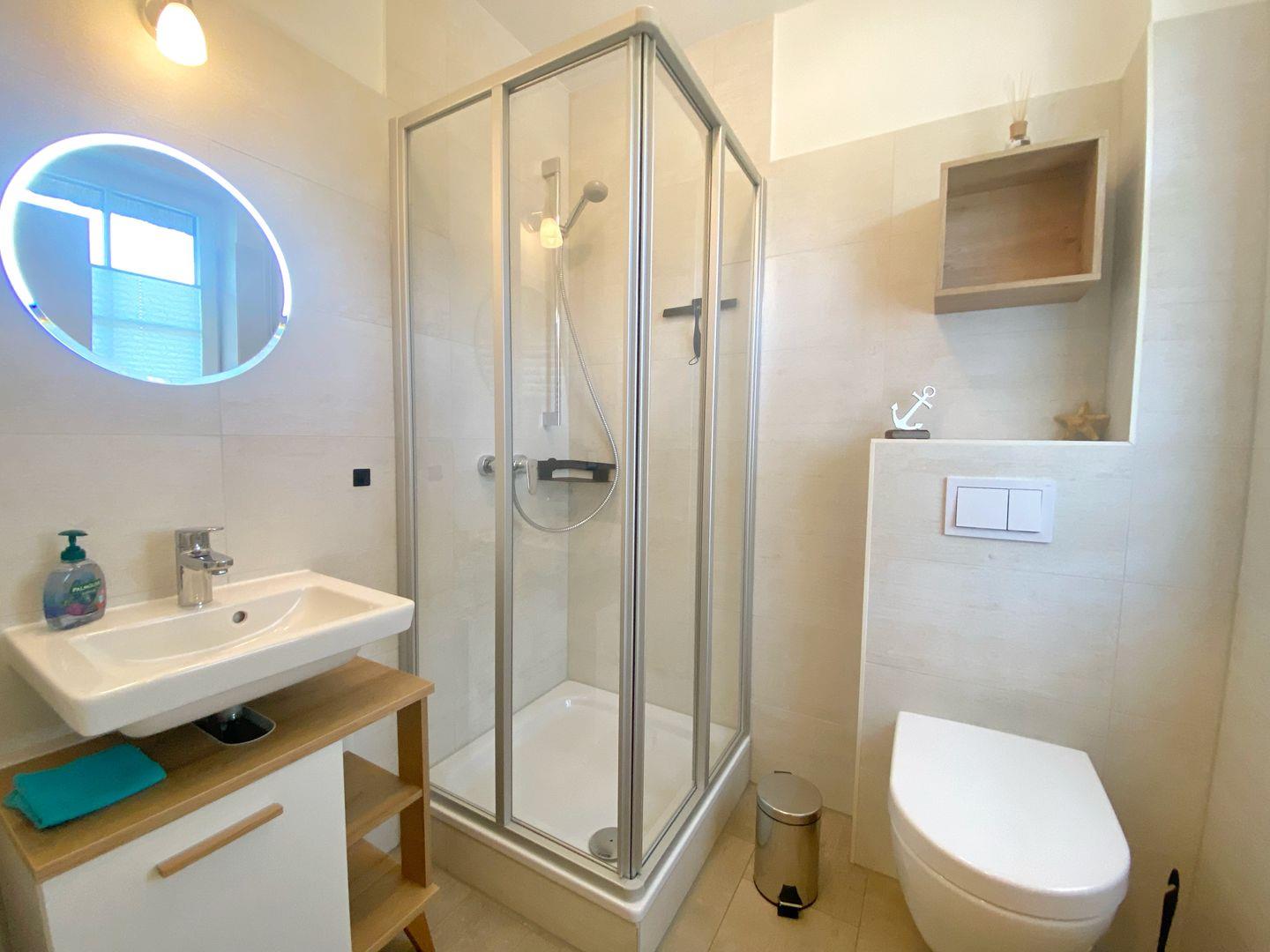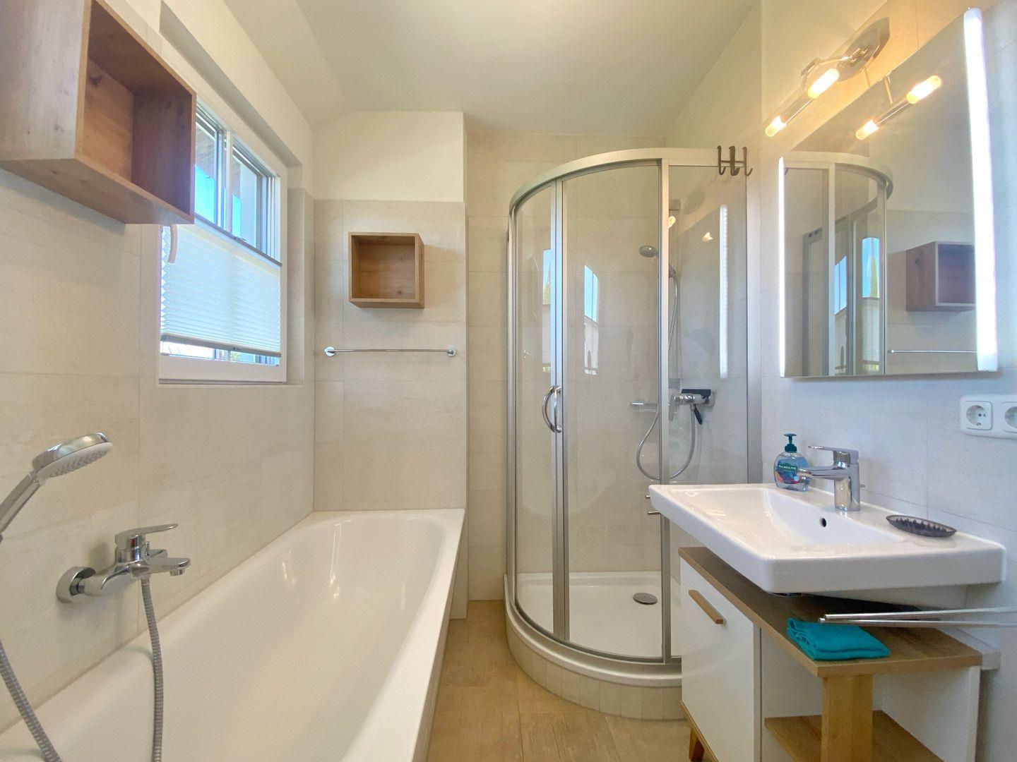 Im Haus gibt es zwei Bäder, eines davon mit Dusche und das andere mit Dusche und Badewanne.