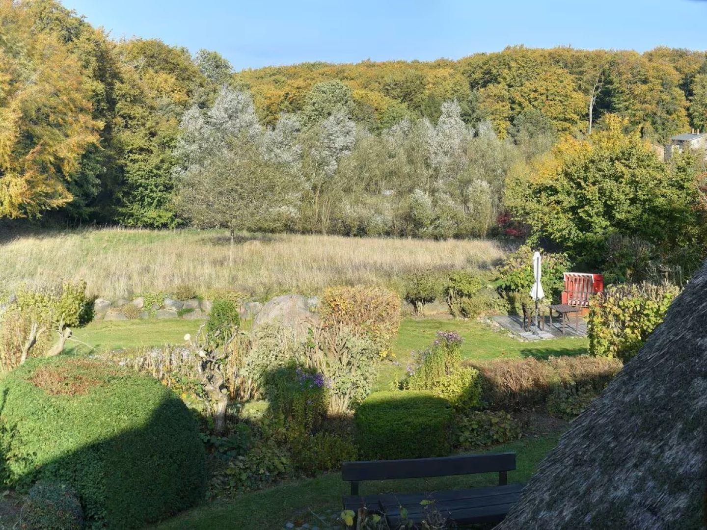 Die ebenerdige Ferienwohnung bietet ausreichend Platz für 3 Personen und beinhaltet 1 Schlafzimmer mit 2 Einzelbetten, 1 Küche, 1 Wohnzimmer mit Schlafcouch und 1 Badezimmer. Die Wohnung verfügt über ca. 45qm Wohnfläche und zugehöriger Terrasse. WLAN ist vorhanden. Zur Wohnung gehört ein Pkw-Stellplatz und es gibt überdachte Fahrradunterstellmöglichkeiten. Das Reetdachhaus ist von einem großzügig angelegten Garten umgeben und bietet direkten Zugang zum als Naturschutzgebiet ausgewiesenen Buchenwald. Hier finden Sie Ruhe und Entspannung für einen erholsamen Urlaub.