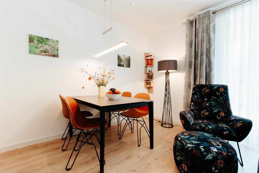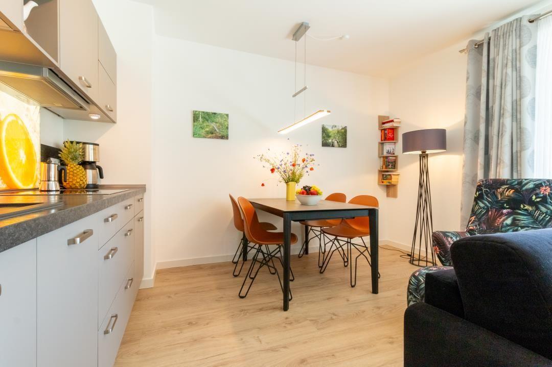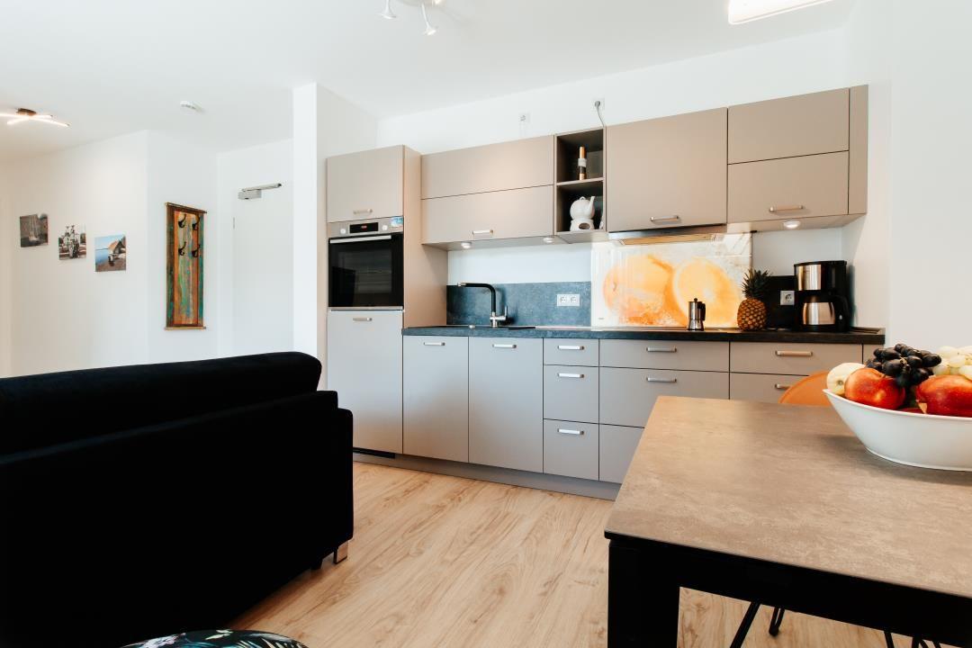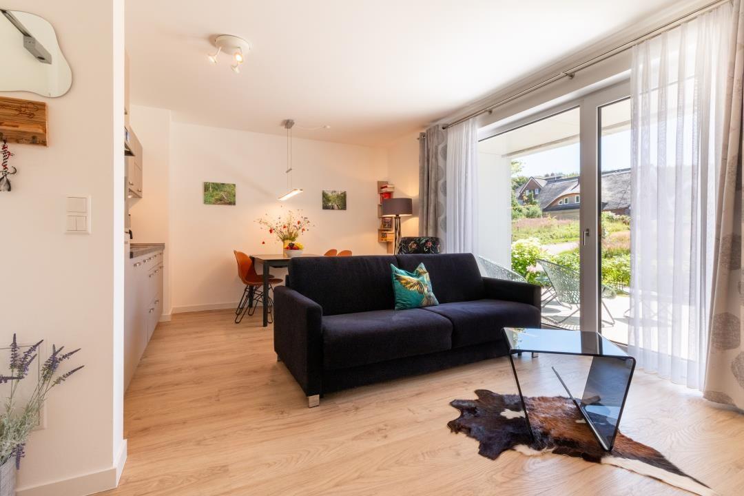 Im offen gestalteten Wohn-Essbereich genießt du lichtdurchflutete Räume mit bodentiefen Fenstern und direktem Zugang zur Terrasse und dem großen Garten. Das hochwertige Schlafsofa bietet zusätzlichen Schlafplatz für bis zu zwei Personen. Die voll ausgestattete Küche mit Essbereich lädt zu gemeinsamen Mahlzeiten ein – ob Frühstück in der Morgensonne oder ein Glas Wein am Abend.