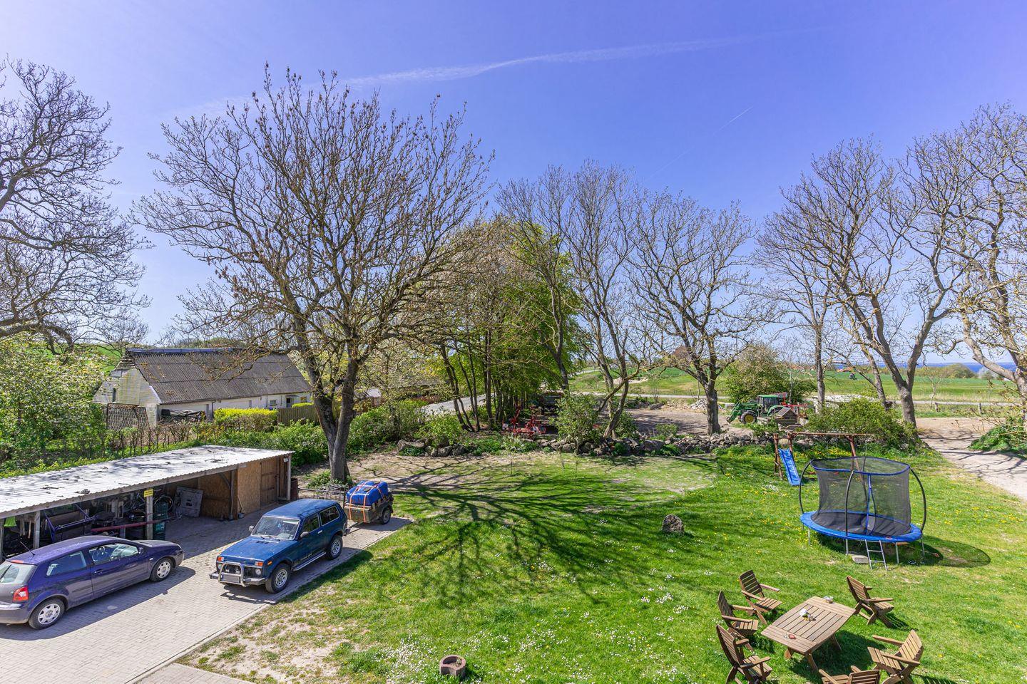 Im Außenbereich erwartet Sie ein Garten mit Gartenmöbeln sowie ein Grillplatz. Für aktive Stunden und Familien gibt es einen Spielplatz und ein Trampolin; außerdem stehen eine Feuerstelle und der Bauernhof-Charakter des Anwesens für abwechslungsreiche Urlaubstage. Die Wohnung bietet Landschafts- und Gartenblick und liegt in einem Dorf in ländlicher Umgebung. Haustiere sind erlaubt. Ein Parkplatz ist vorhanden; ein Auto ist empfohlen. Es gibt überdachte Unterstellmöglichkeiten für Fahrräder,