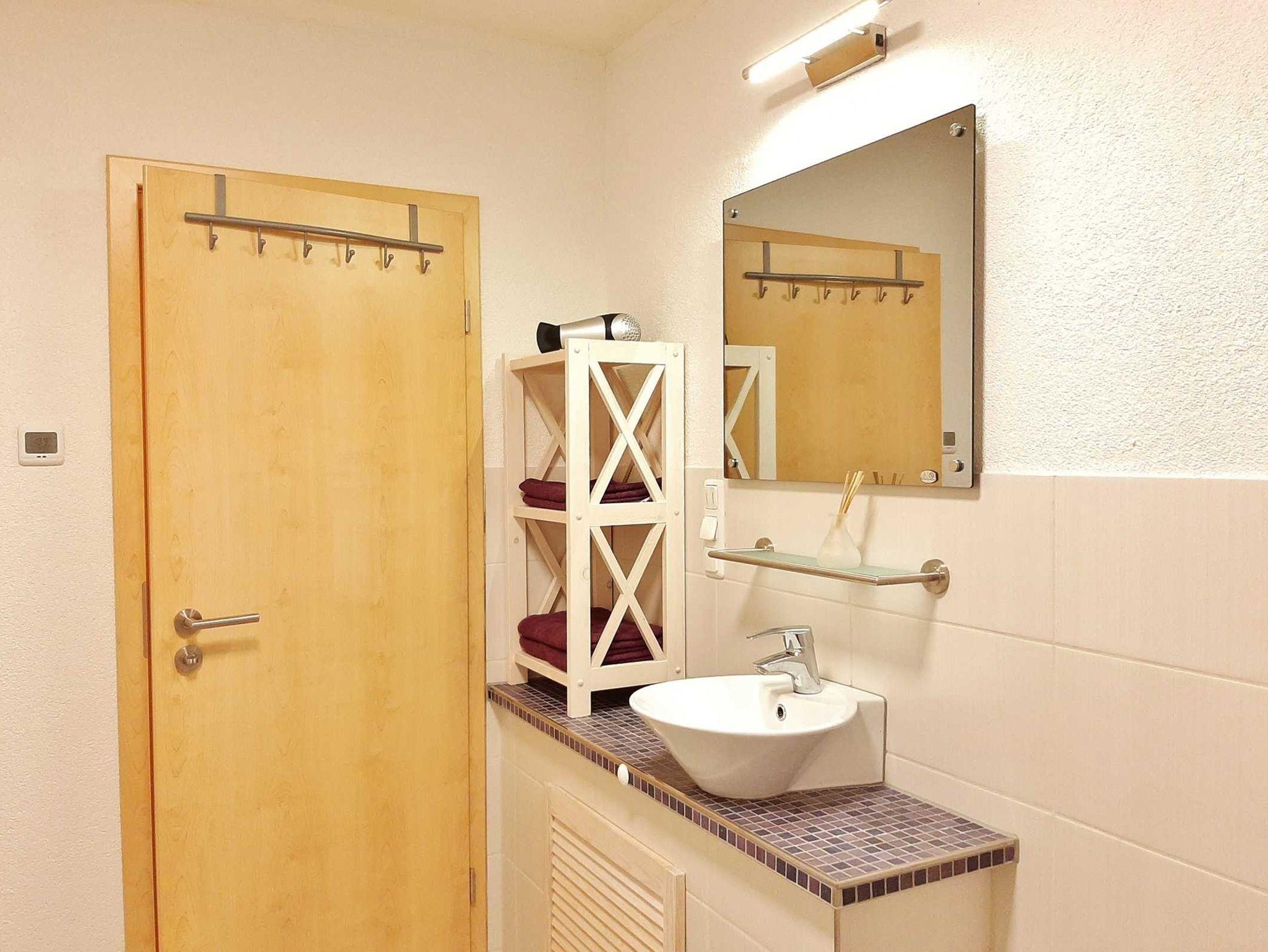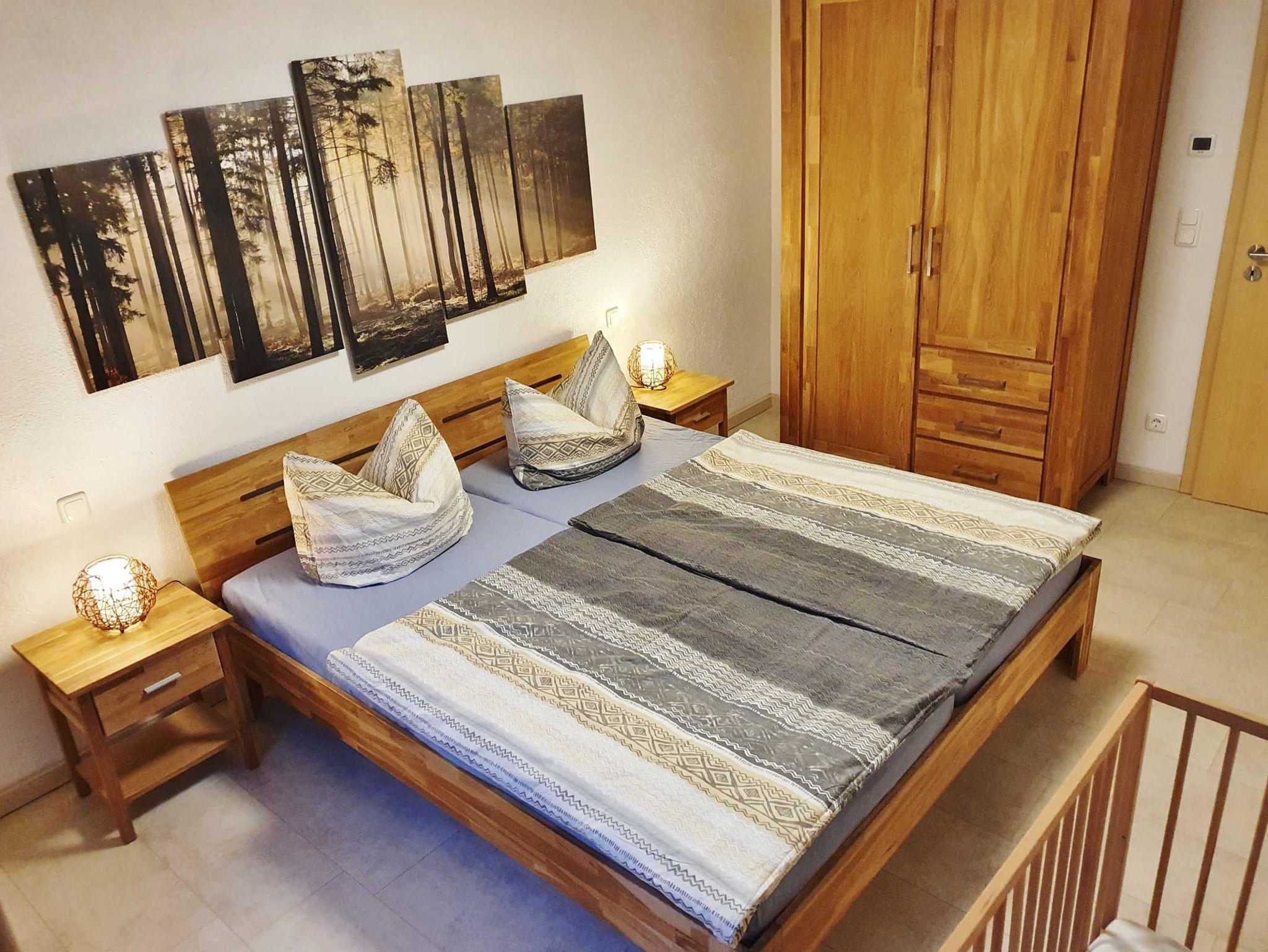Über eine kleine Treppe erreichen Sie die 54 m² große 2 Zimmer Ferienwohnung SpatzenNest. Sie besitzt ein Wohnzimmer mit einer modernen voll ausgestatteten offenen Küche und bietet Platz für 3-4 Personen. Das große gemütliche Ecksofa im Wohnzimmer dient gleichzeitig als Aufbettung. Im Schlafzimmer finden Sie ein Doppelbett, einen Schrank und ein Kinderbettchen. Weiterhin ist das Badezimmer mit einer Badewanne,einer begehbaren Dusche und WC ausgestattet.