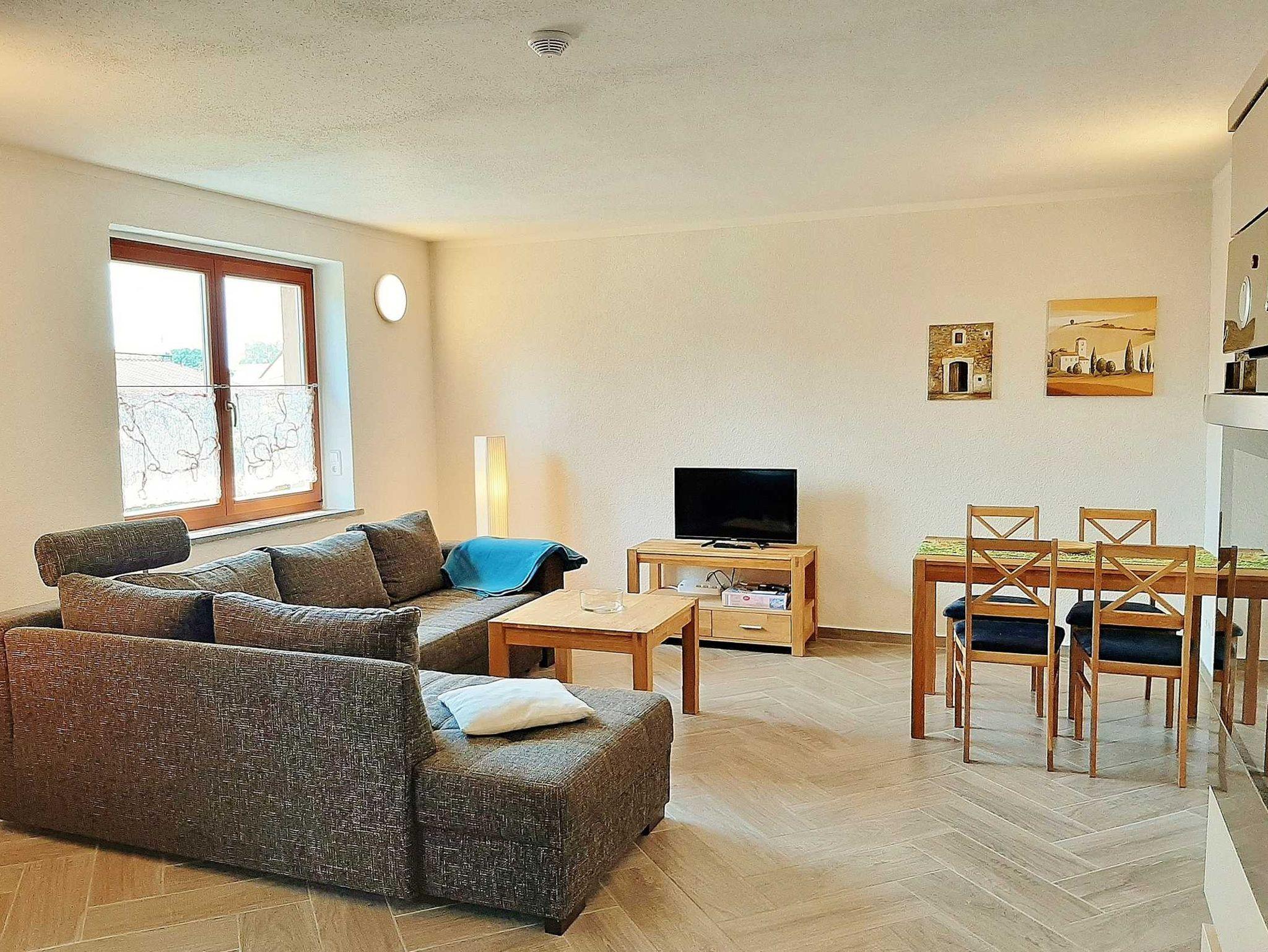 Unser SpatzenNest ist eine moderne Ferienwohnung mit offen gestalteter Wohnzimmer/ Küchenkombination. Die Ausstattung beinhaltet: eine Ech-Schlafcouch, TV-Gerät, Cerankochfeld, E-Herd, Kühlschrank mit Gefrierfach, Mikrowelle, Kaffeemaschine, Wasserkocher und natürlich Geschirr sowie Kleinteile des tägl. Bedarfes.