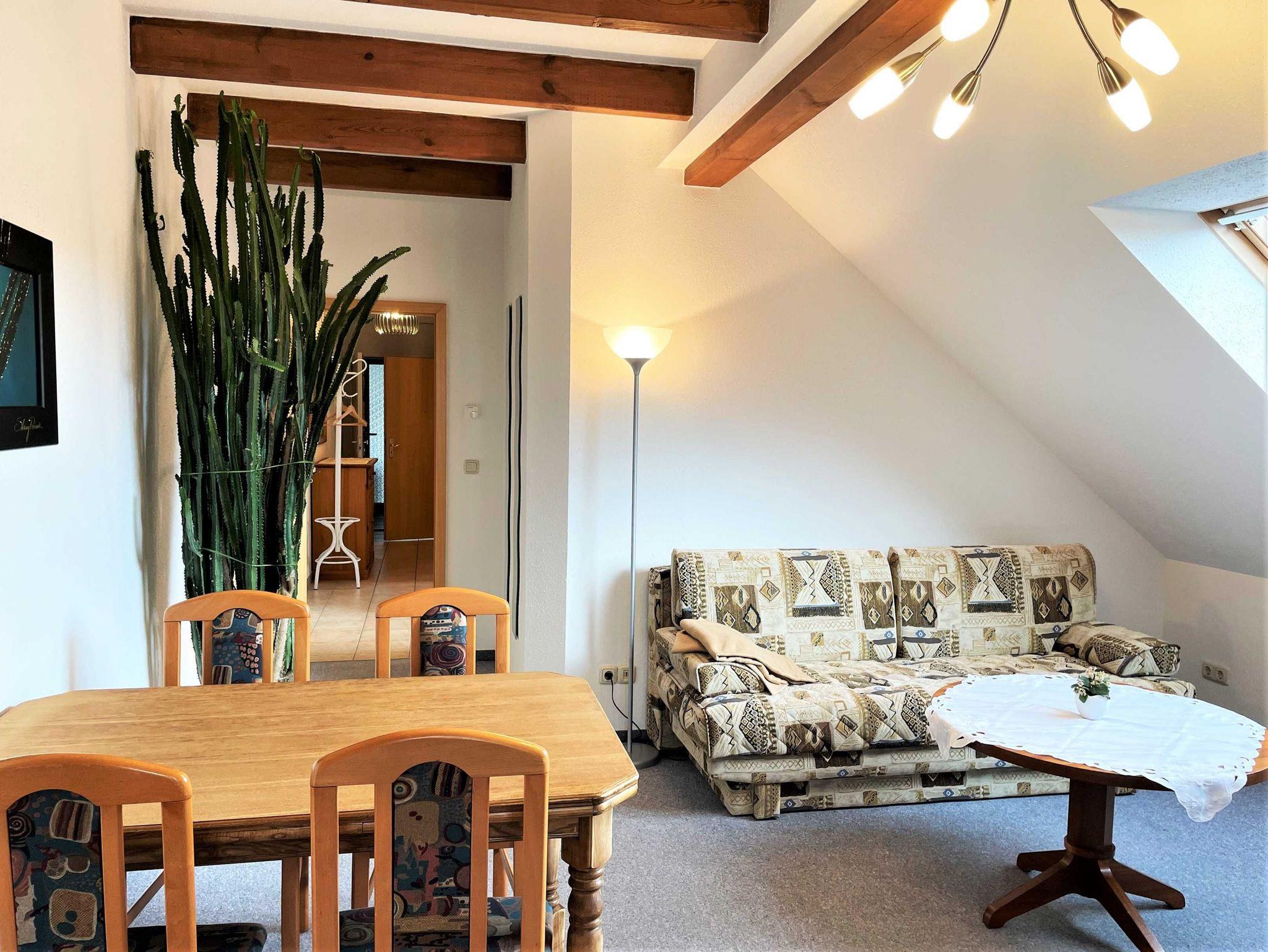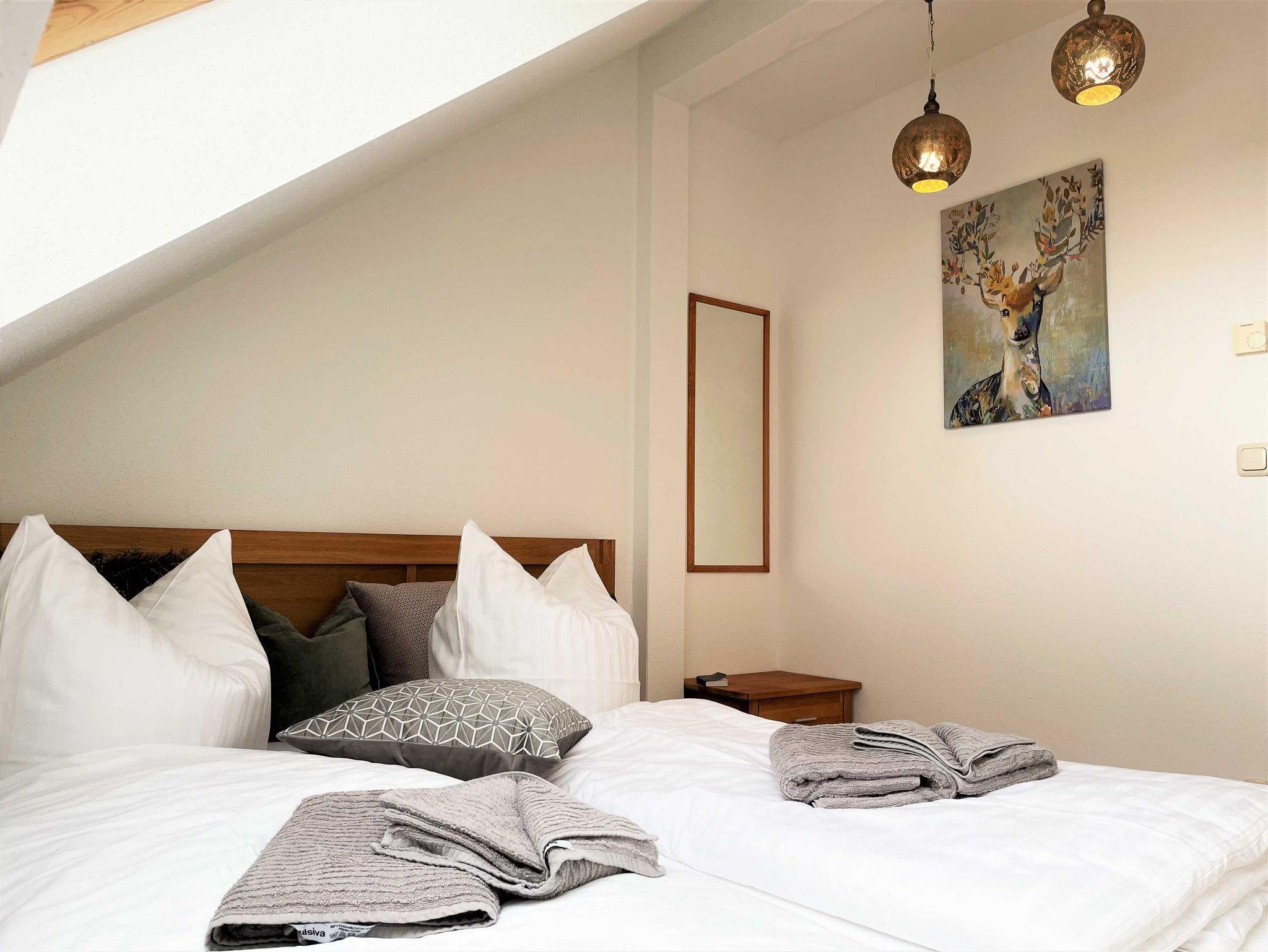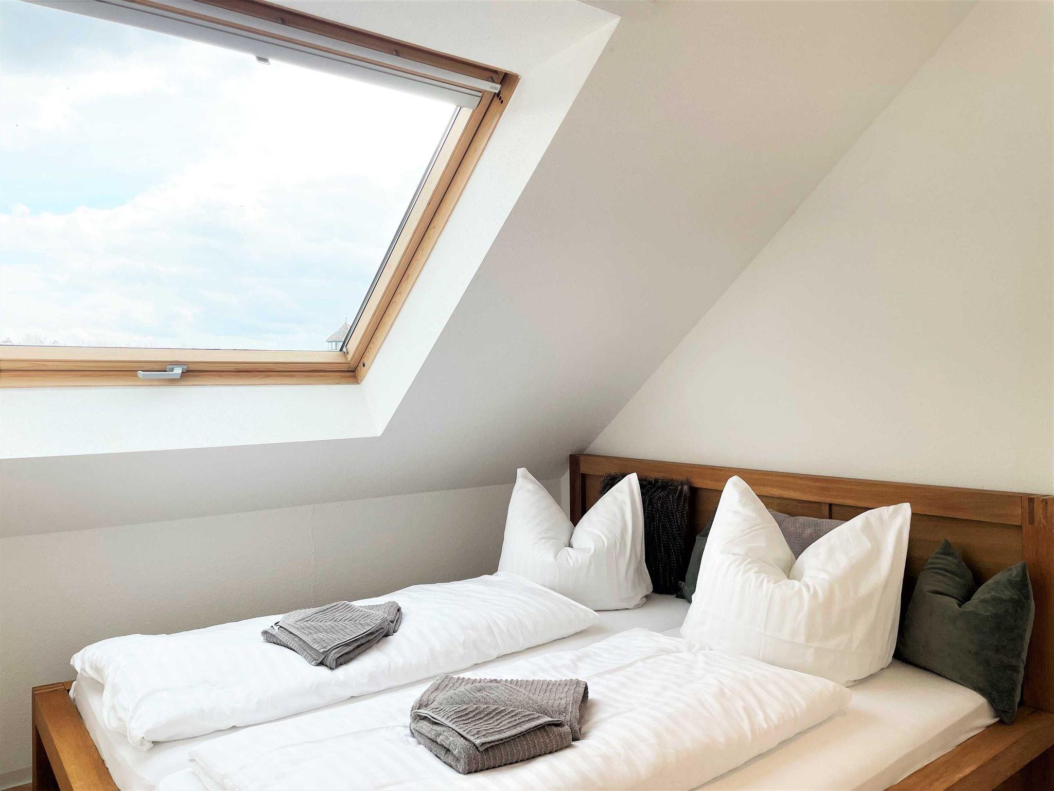 Die 51 qm große 2 Zimmer Nichtraucherwohnung liegt im Obergeschoss des Silberseehauses und bietet Ihnen vom Balkon aus den direkten Blick auf die Jakubzburg. Das Schlafzimmer ist mit einem Doppelbett eingerichtet und im Wohnbereich befindet sich ein Schlafsofa und bietet die Möglichkeit einer Aufbettung für max. 2 Personen. Ausgestattet ist die separate Küche unter anderem mit einem Backofen und einem Kühlschrank mit Gefriermöglichkeit zur Selbstversorgung. Bettwäsche und Handtücher gehören zum Service.
