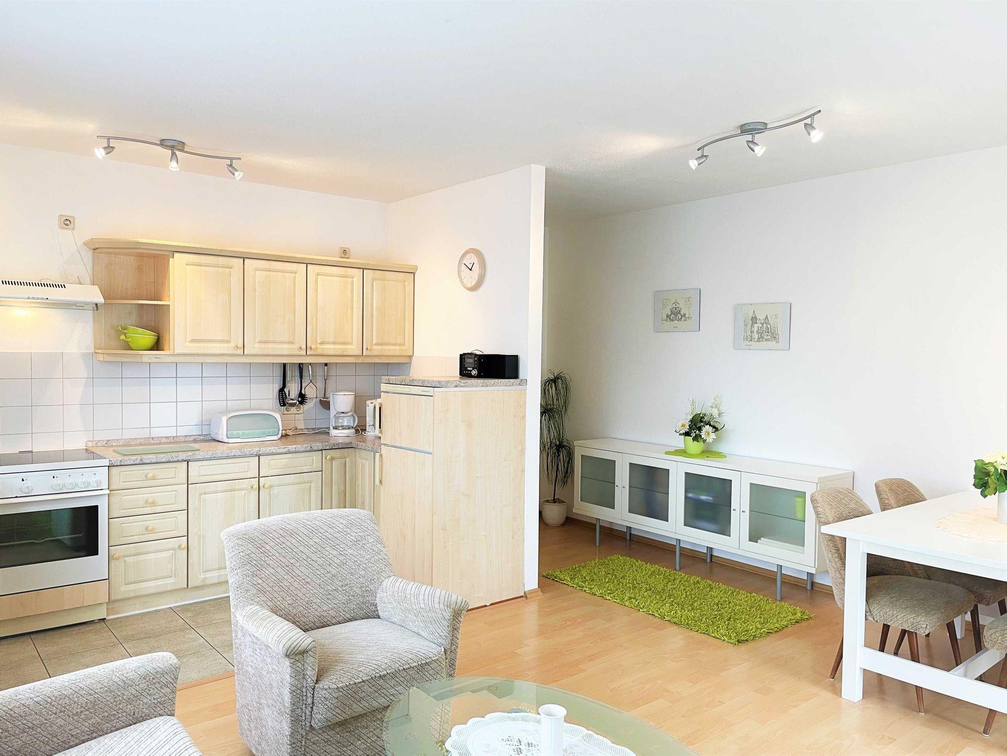 Unsere 2 Zimmer Nichtraucherferienwohnung befindet sich im Erdgeschoß des Silberseehauses, sie ist modern eingerichtet und hat einen Balkon. Die Ferienwohnung hat eine Größe von 58 qm und bietet Platz für bis zu 3 Personen. Die offene Küche ist mit Kühlschrank / Gefriermöglichkeit und Backofen ausgestattet. Bettwäsche und Handtücher gehören zum Service.