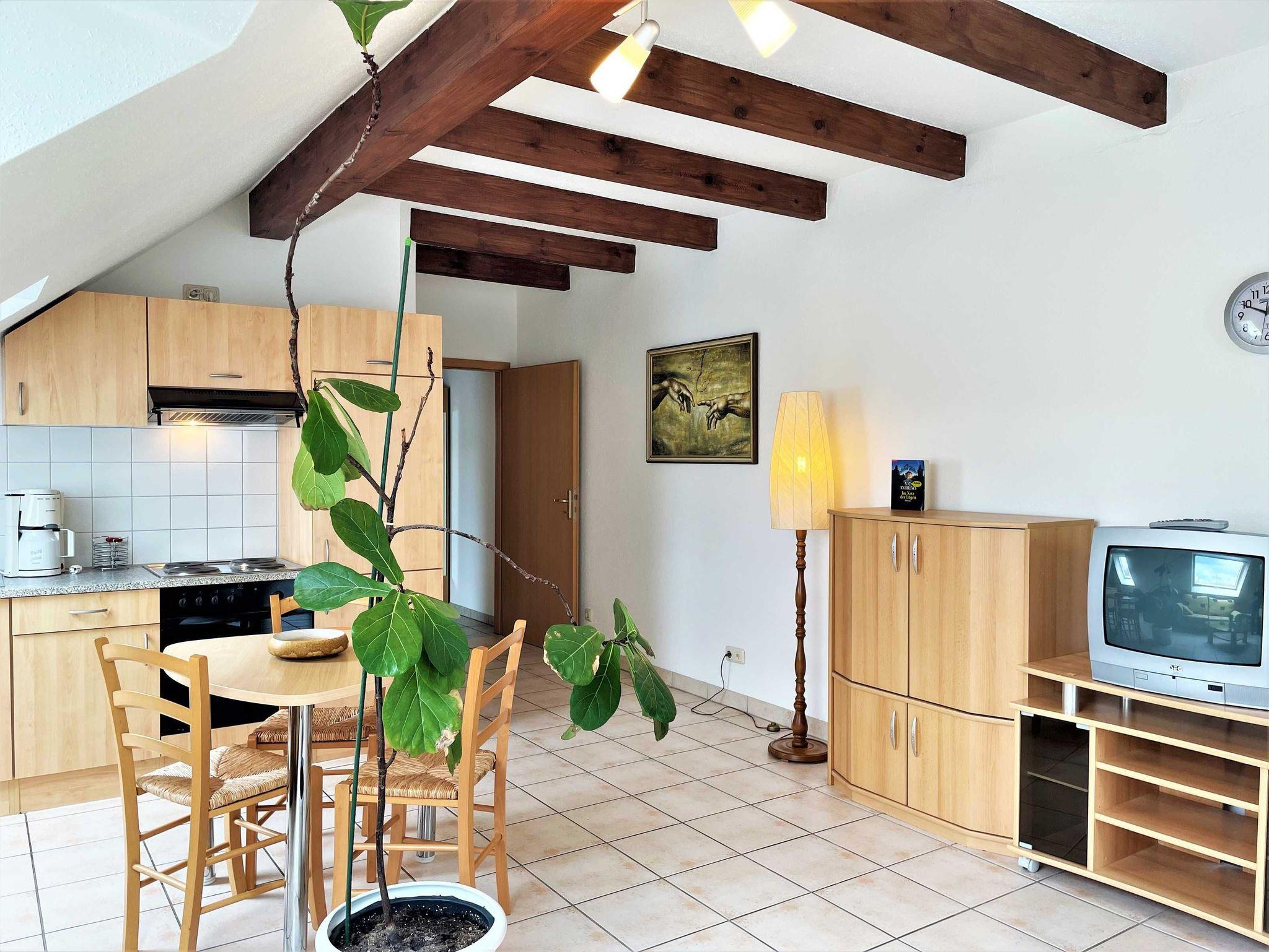 Die 54 qm große 2 Zimmer Nichtraucherferienwohnung befindet sich im Obergeschoß des Silberseehauses, sie ist modern eingerichtet und bietet Platz für bis zu 3 Personen. Das Schlafzimmer ist mit einem Doppel.- und einem Einzelbett ausgestattet. Weiterhin finden Sie in der offenen Küche einen Backofen und Kühlschrank zur Selbstversorgung. Bettwäsche und Handtücher gehören zum Service.