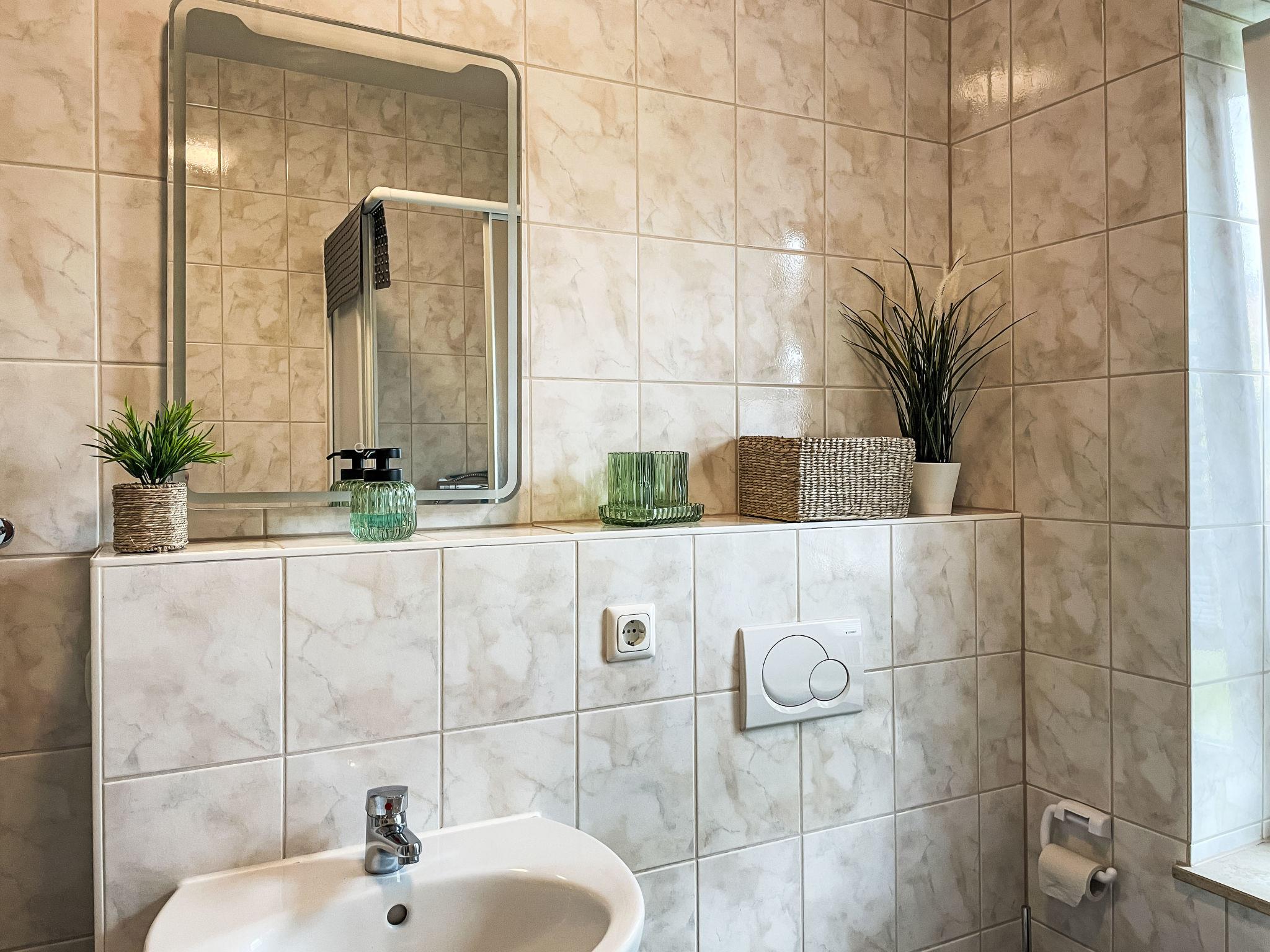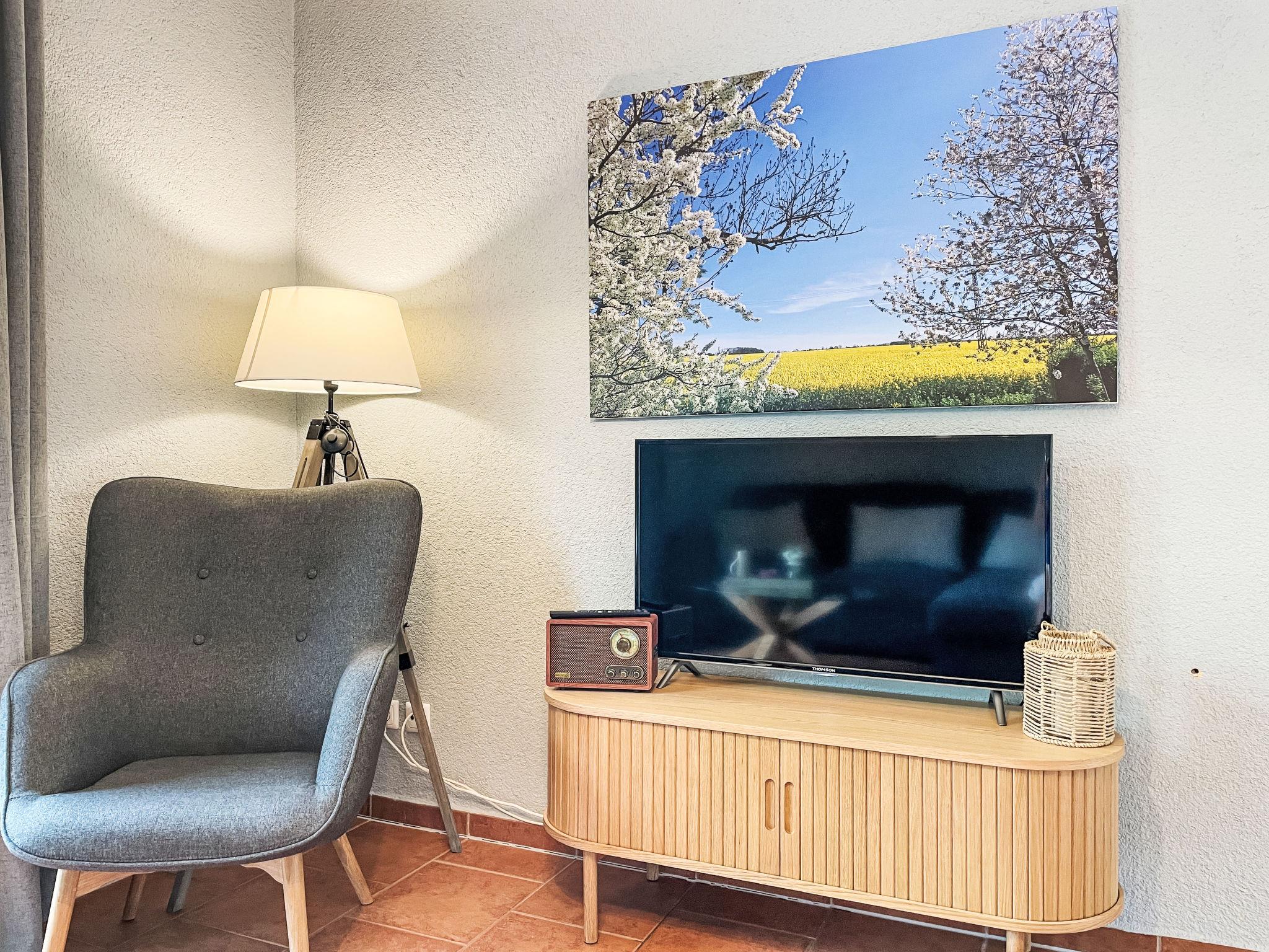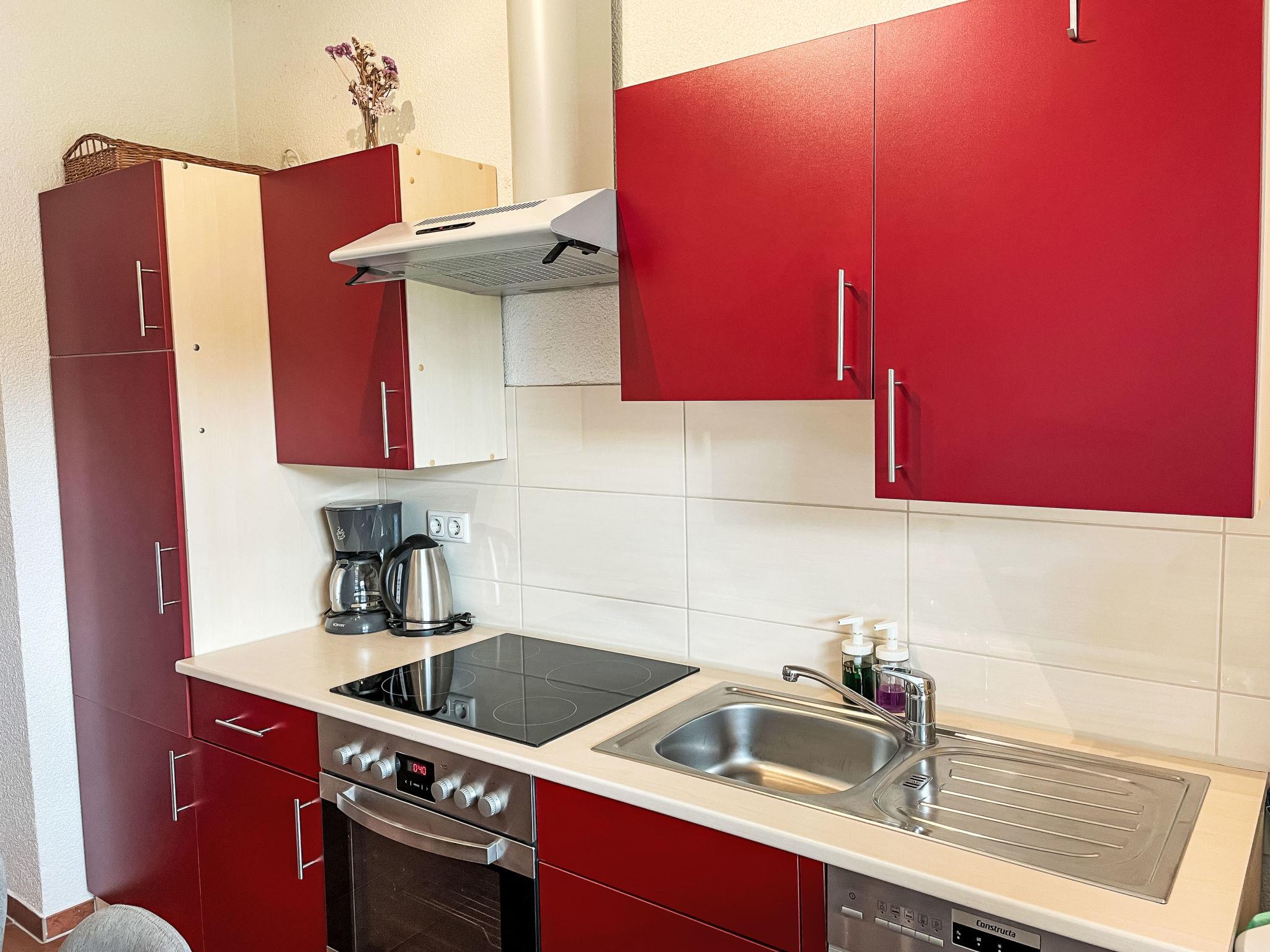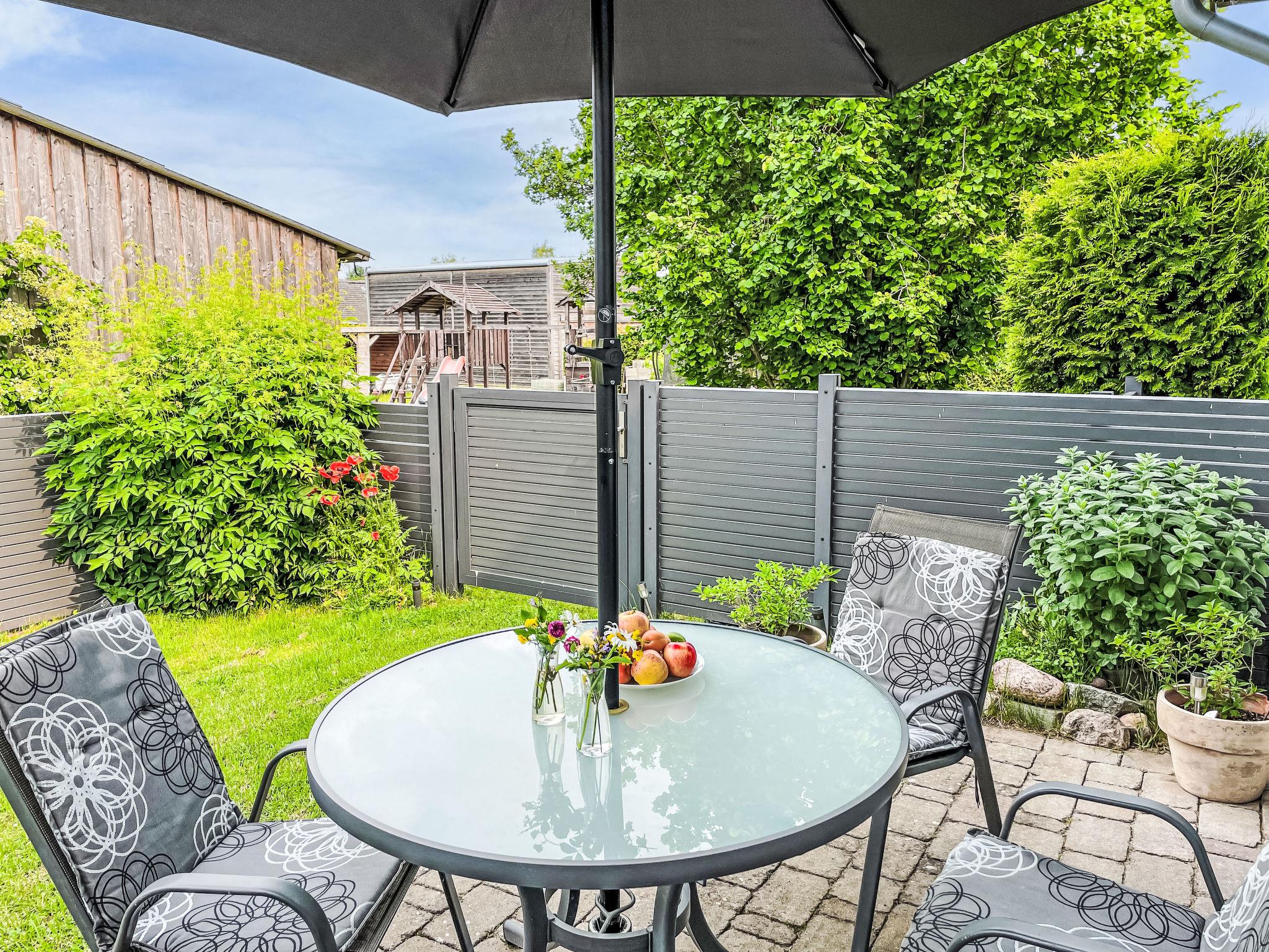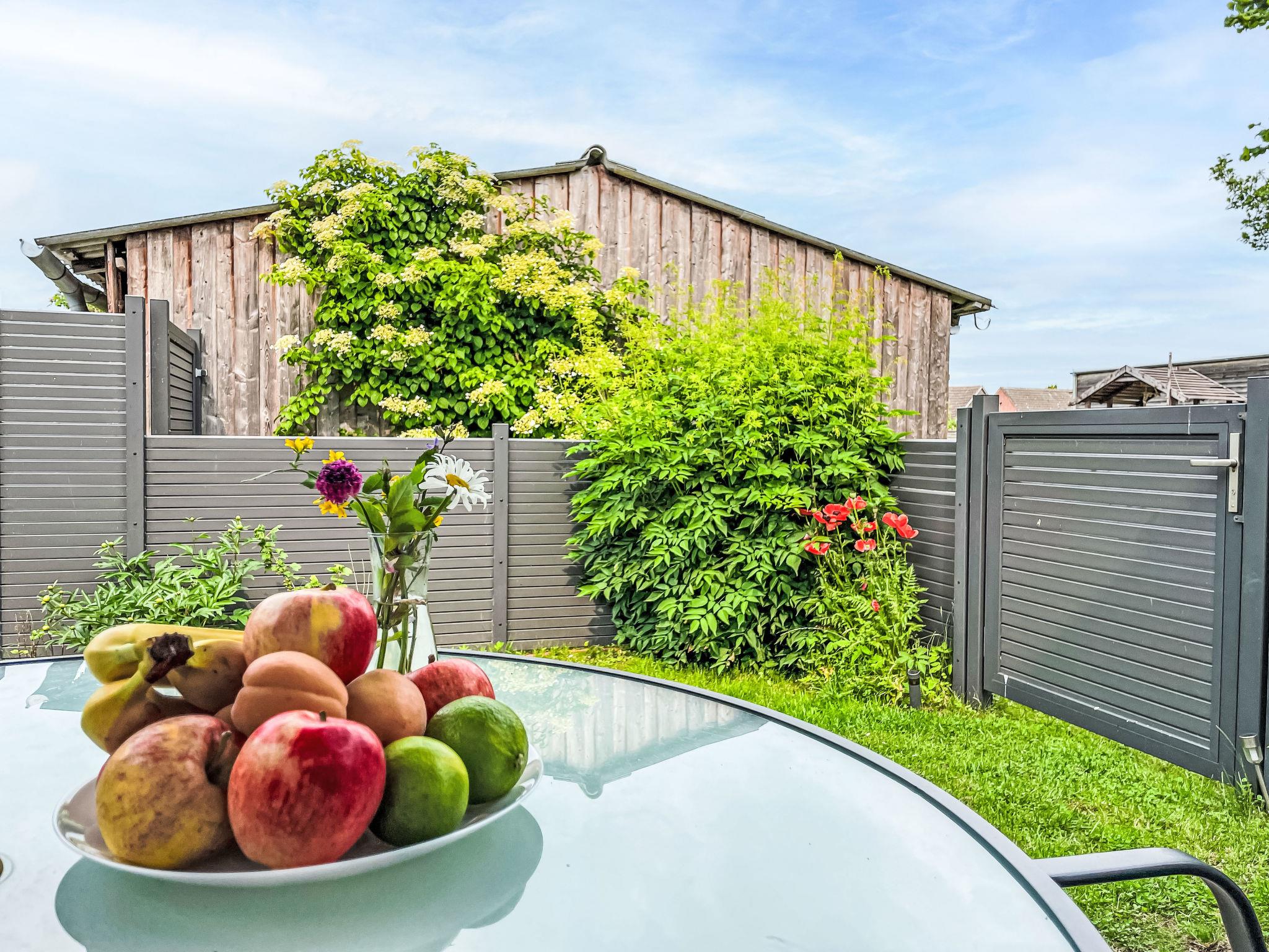 2-room apartment 45 m2, on the ground floor. Beautiful and tasteful furnishings: living/sleeping room with 1 double sofabed, satellite TV and hi-fi system. Exit to the terrace. 1 room with 1 french bed (180 cm, length 200 cm). Kitchen (4 hot plates, oven, dishwasher, toaster, kettle, freezer, electric coffee machine) with dining table. Shower/WC. Gas heating, underfloor heating. Terrace 6 m2, lawn 40 m2. Terrace furniture, barbecue (portable). Facilities: children's high chair, baby cot for up to 2 year olds. Internet (WiFi, free). Please note: non-smokers only. Maximum 1 pet/ dog allowed. Smoke alarm. Terrace with fenced garden plot.