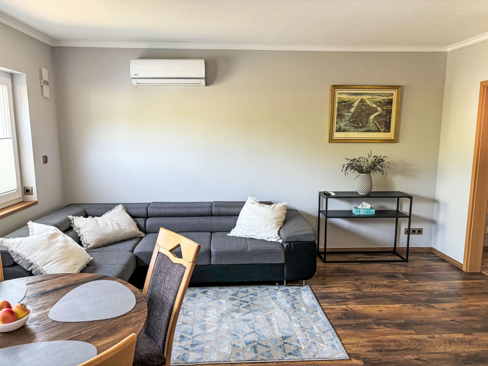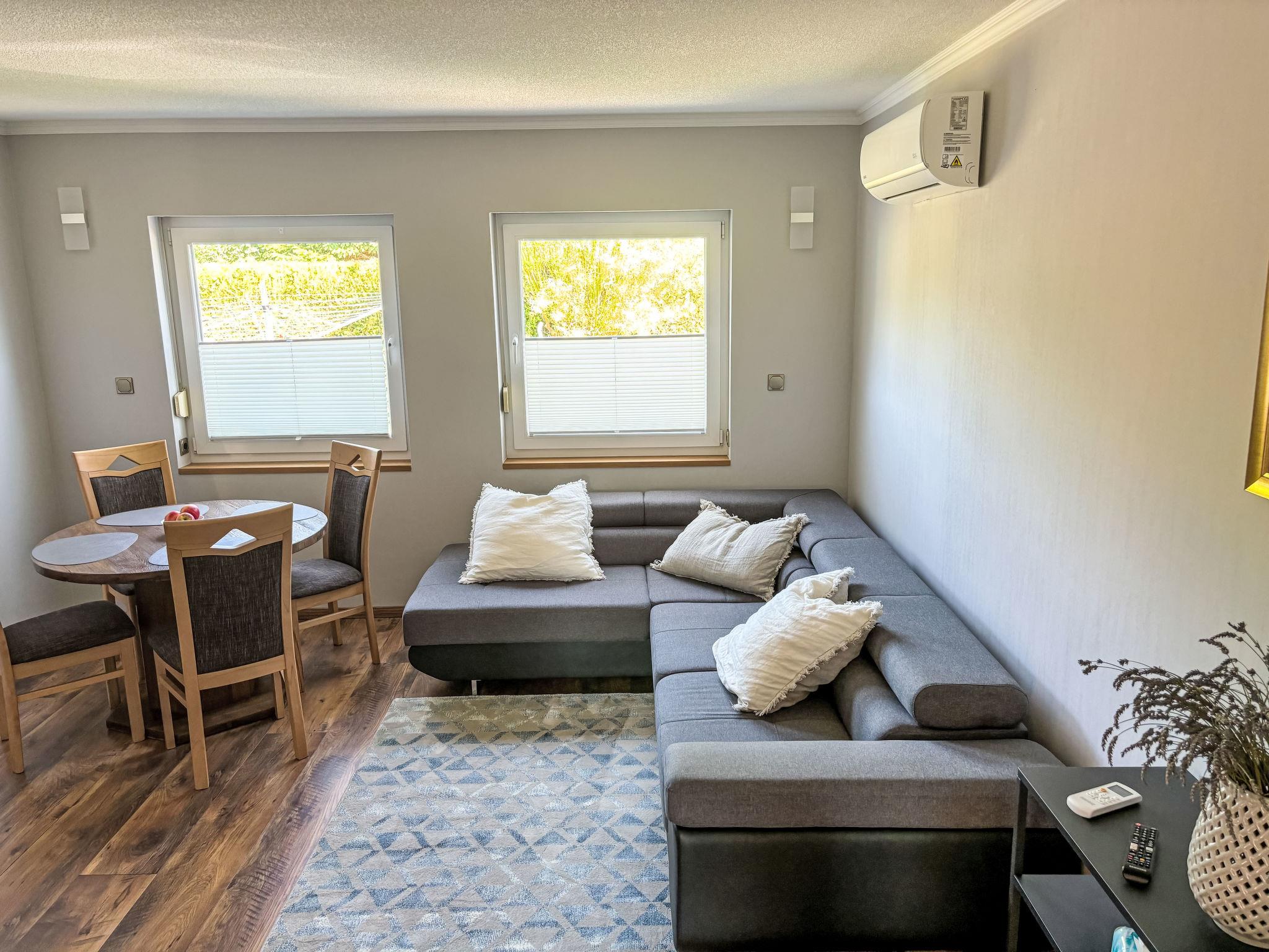 3-room house 75 m2. Bright, cosy furnishings: living/dining room with satellite TV (flat screen). 2 rooms, each room with 1 double bed. Kitchen (oven, dishwasher, 4 ceramic glass hob hotplates, toaster, kettle, microwave, electric coffee machine). Shower/WC. Electric heating, air-conditioning. Large terrace. Terrace furniture, barbecue, deck chairs (4). Facilities: washing machine, dryer, children's high chair, baby cot, hair dryer. Internet (WiFi, free). Parking (roofed). Please note: non-smoking house. Maximum 1 pet/ dog allowed. Smoke alarm, fire extinguisher.