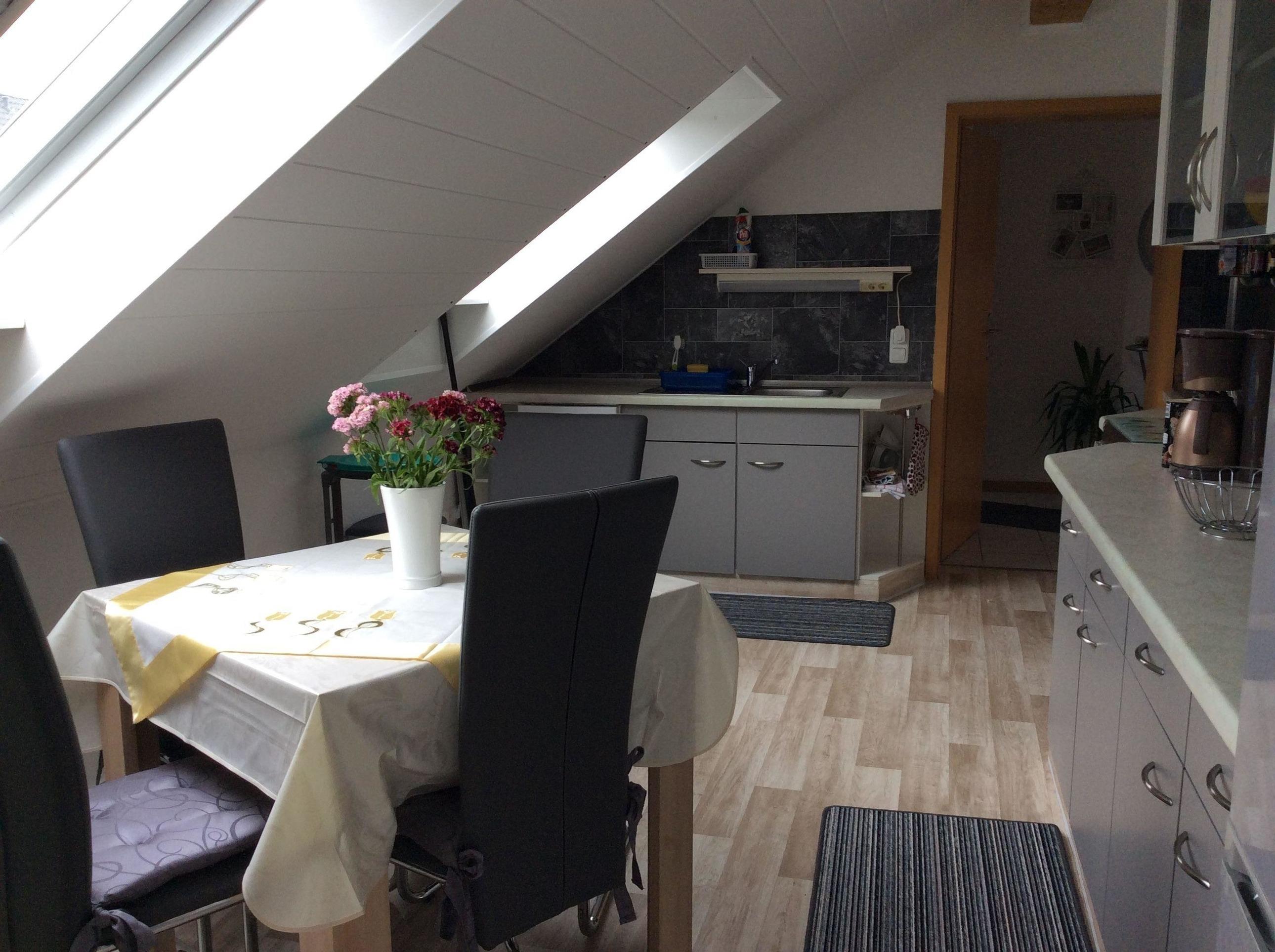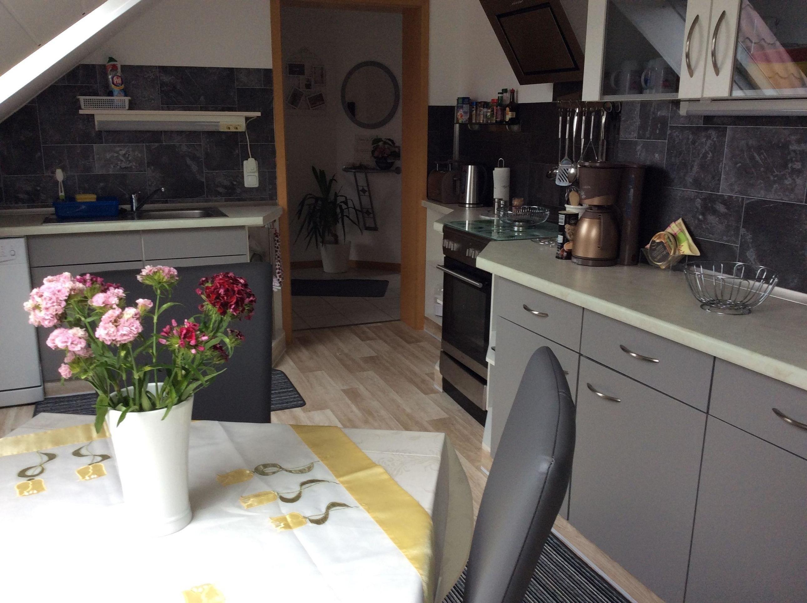 In der separaten Küche finden Sie einen großen Esstisch sowie eine komplett ausgestattete Küchenzeile.