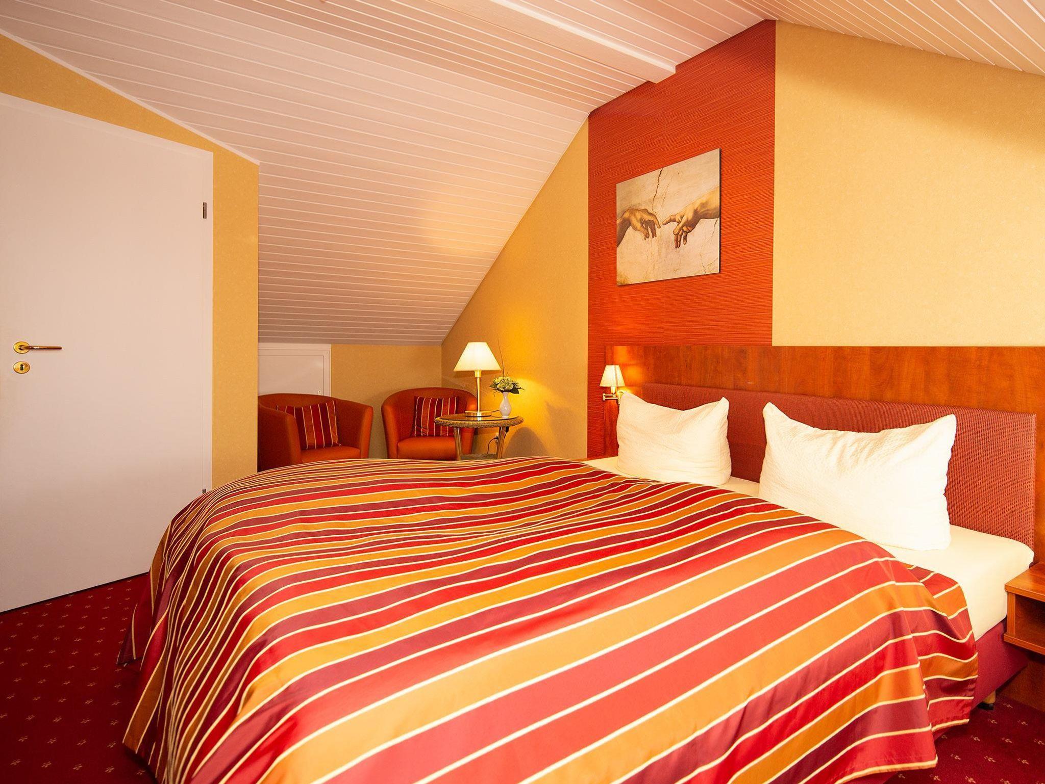 Moderne, liebevoll eingerichtete Zimmer mit Dusche/WC, Haartrockner, SAT-TV, Radio und Sitzgruppe. Freies WLAN
