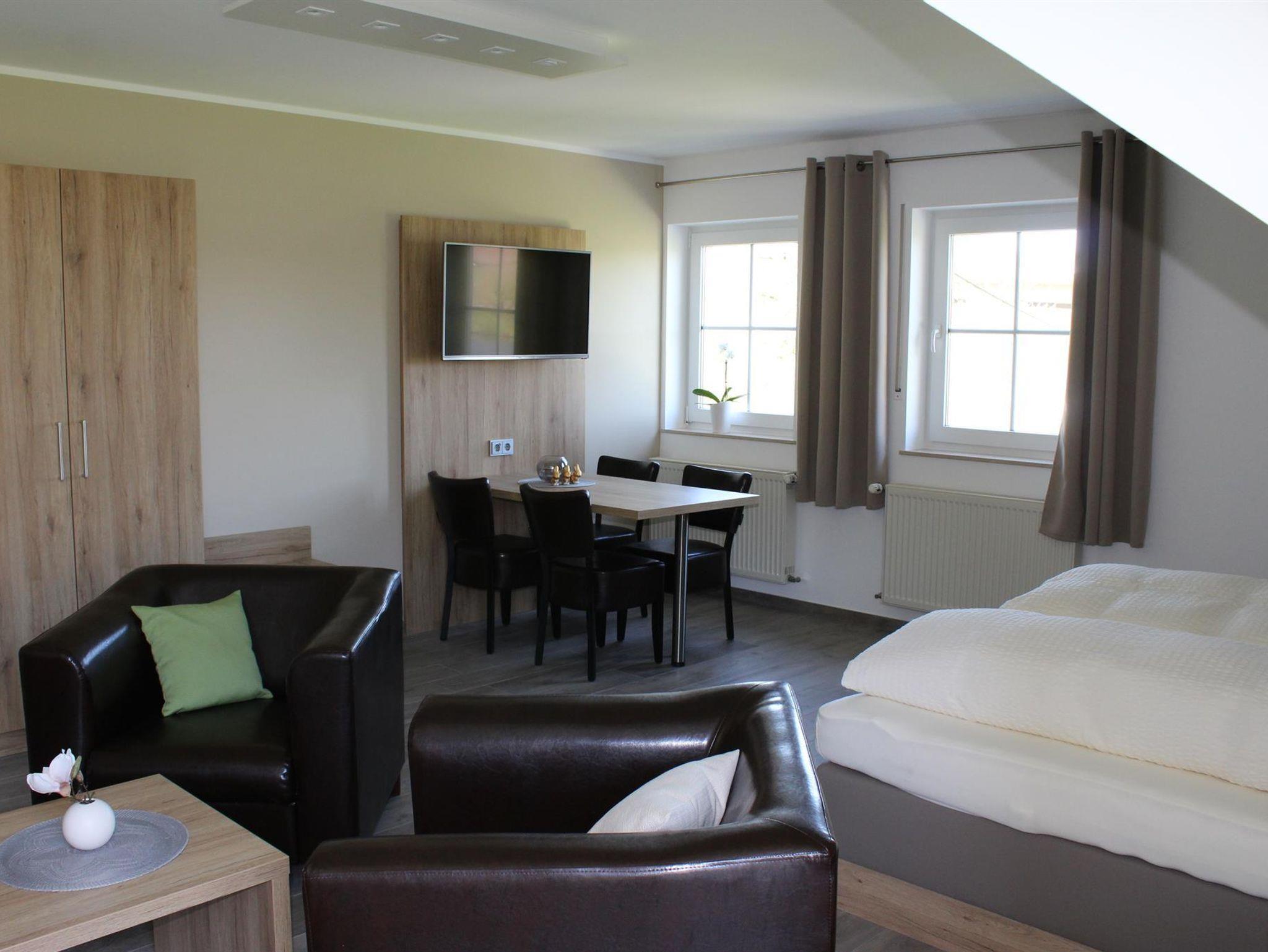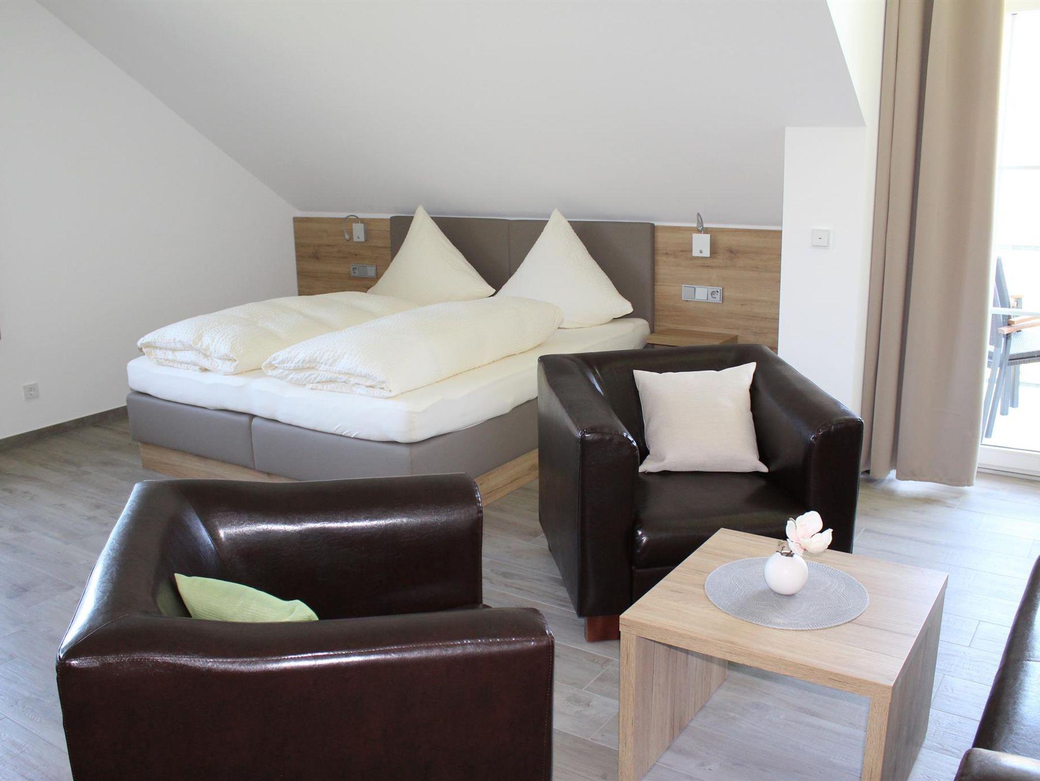 Zu Ihrem Wohlbefinden sind unsere Apartments ausgestattet mit: Dusche, WC, Handtücher (1x wöchtl. Wechsel), Haartrockner, Doppelbett, Bettwäsche, gemütlicher Sitzgruppe, Essbereich, Küche komplett eingerichtet mit Geschirrspüler, Balkon, Fernseher und kostenfreien W-Lan. Außerdem steht Ihnen ein Parkplatz, Unterstellmöglichkeit für Ihre Fahrräder und unsere Weinlaube mit Grillmöglichkeit kostenlos zur Verfügung.