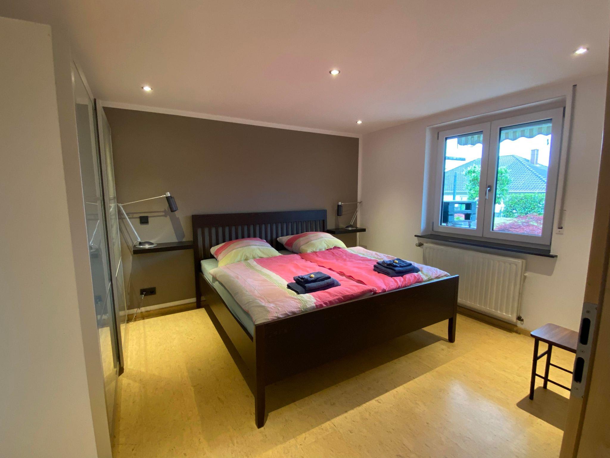 Die Wohnung liegt im Einliegerbereich und verfügt über 90 qm mit Doppelschlafzimmer, großem Wohn-Esszimmer mit Schlafcouch. Die Küche ist voll ausgestattet und verfügt über Herd, Backofen, Spülmaschine und diverse Elektrogeräte, und ausreichend Geschirr.Ebenfalls gibt es ein Bad mit Dusche und WC. Von der Küche aus kann man überdacht sitzen und gemütlich Garten und Draußen geniessen mit Grillecke. Carport für 2 Autos vorhanden. Ebenso kostenloses Wlan + Radio und TV.