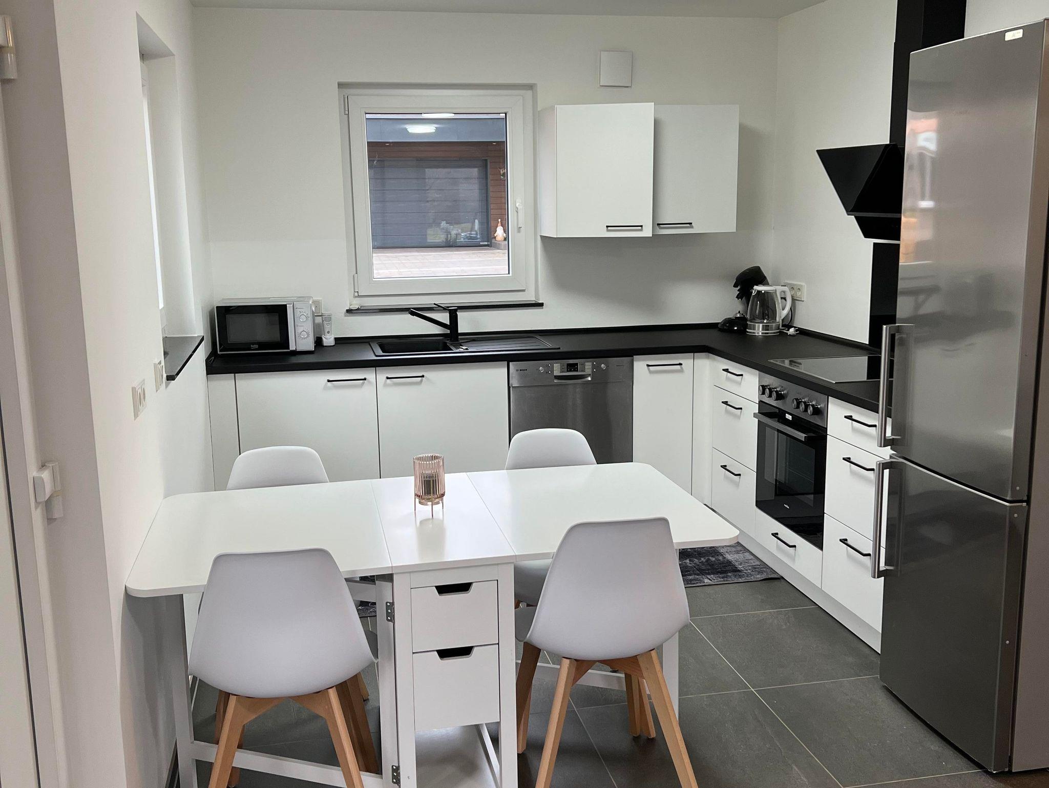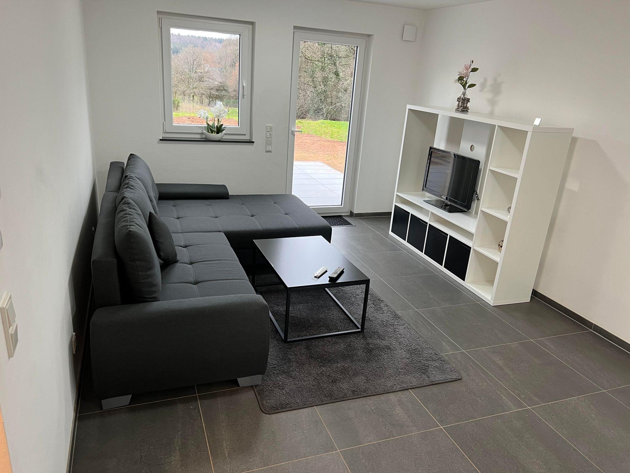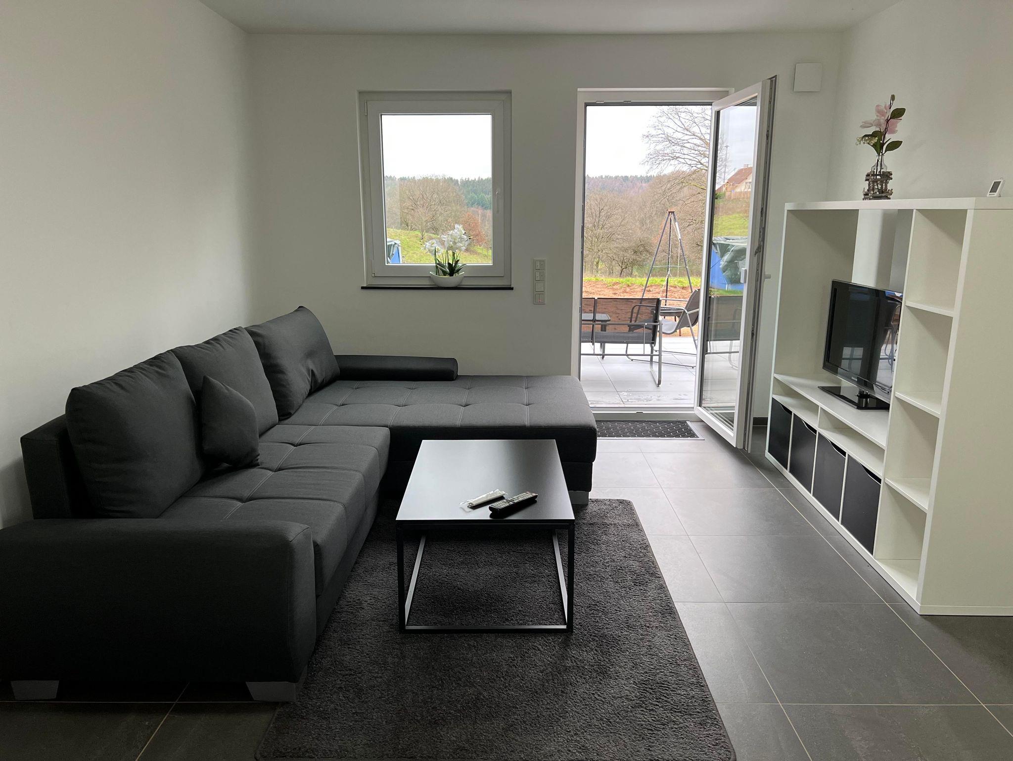Hochwertiger Neubau. Komplett ausgestattete und zum Wohnzimmer offene Küche. Die Küche verfügt auch über eine Mikrowelle, eine Spülmaschine, ein Wasserkocher, einen Toaster und eine Kaffeemaschine. Der Wohnraum ist mit einer Essecke, einem Flachbildfernseher mit Satellitenkanälen und Mehrkanal-Fernsehen sowie ein Schlafsofa ausgestattet. Schönes Schlafzimmer mit Doppelbett, Terrasse mit Sitzecke und Blick ins Grüne. WLAN ist in dem gesamten Apartment kostenlos verfügbar. Das Badezimmer ist mit Dusche und WC ausgestattet.