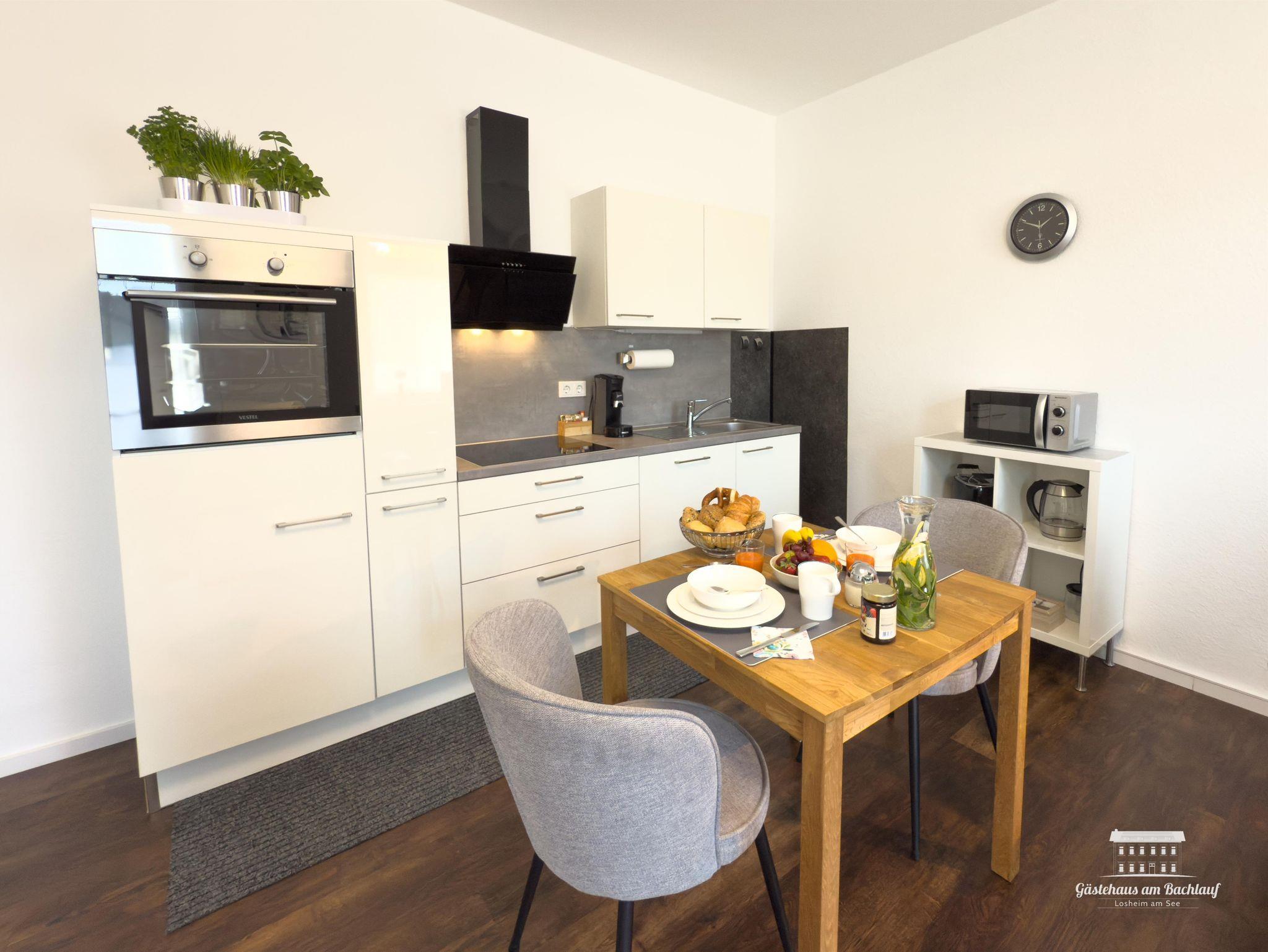 Unsere Ferienwohnung Teichblick ist 53m² groß und bietet 1-2 Personen ausreichend Platz für einen angenehmen Aufenthalt. Die Wohnung befindet sich im Erdgeschoss und verfügt über einen Wohn- Essbereich mit integrierter Küche, einem Schlafzimmer (Doppelbett:180cmx200cm) und einem Badezimmer. Vom Schlafzimmer hat man den direkten Zugang zur überdachten Terrasse und zum Wellness-Garten.