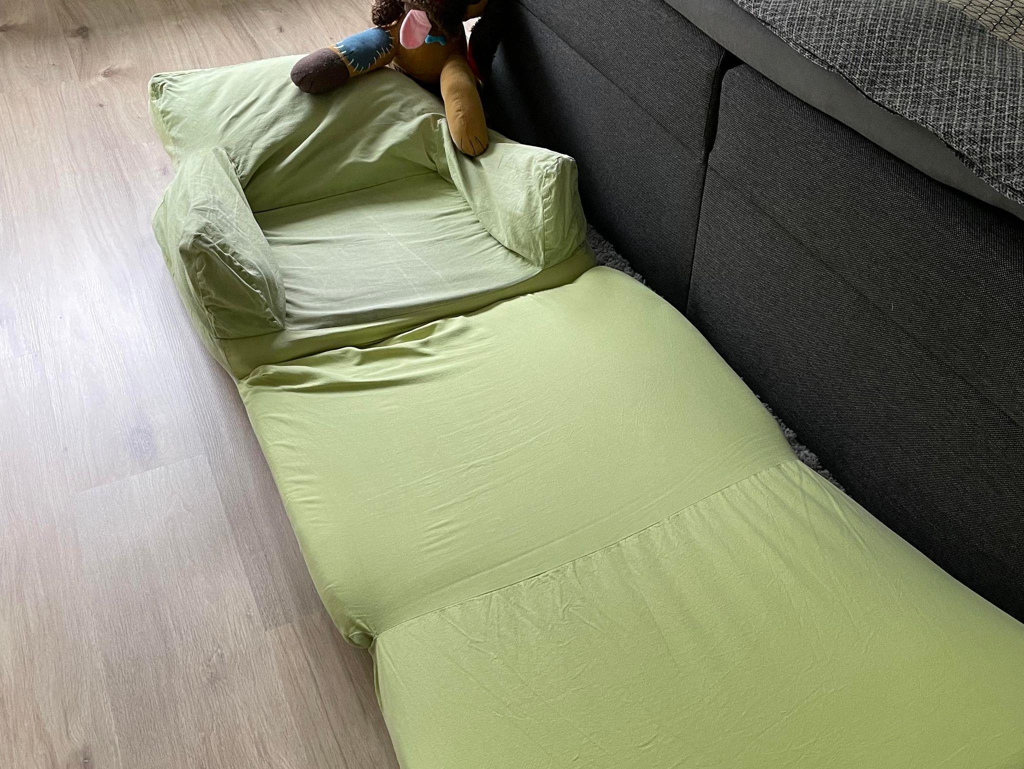 Die beiden bereit stehenden Kindersessel können zu einer Schlafgelegenheit für Kleinkinder bis zu einer Größe von 1,30 bzw. 1,50 m umfunktioniert werden
