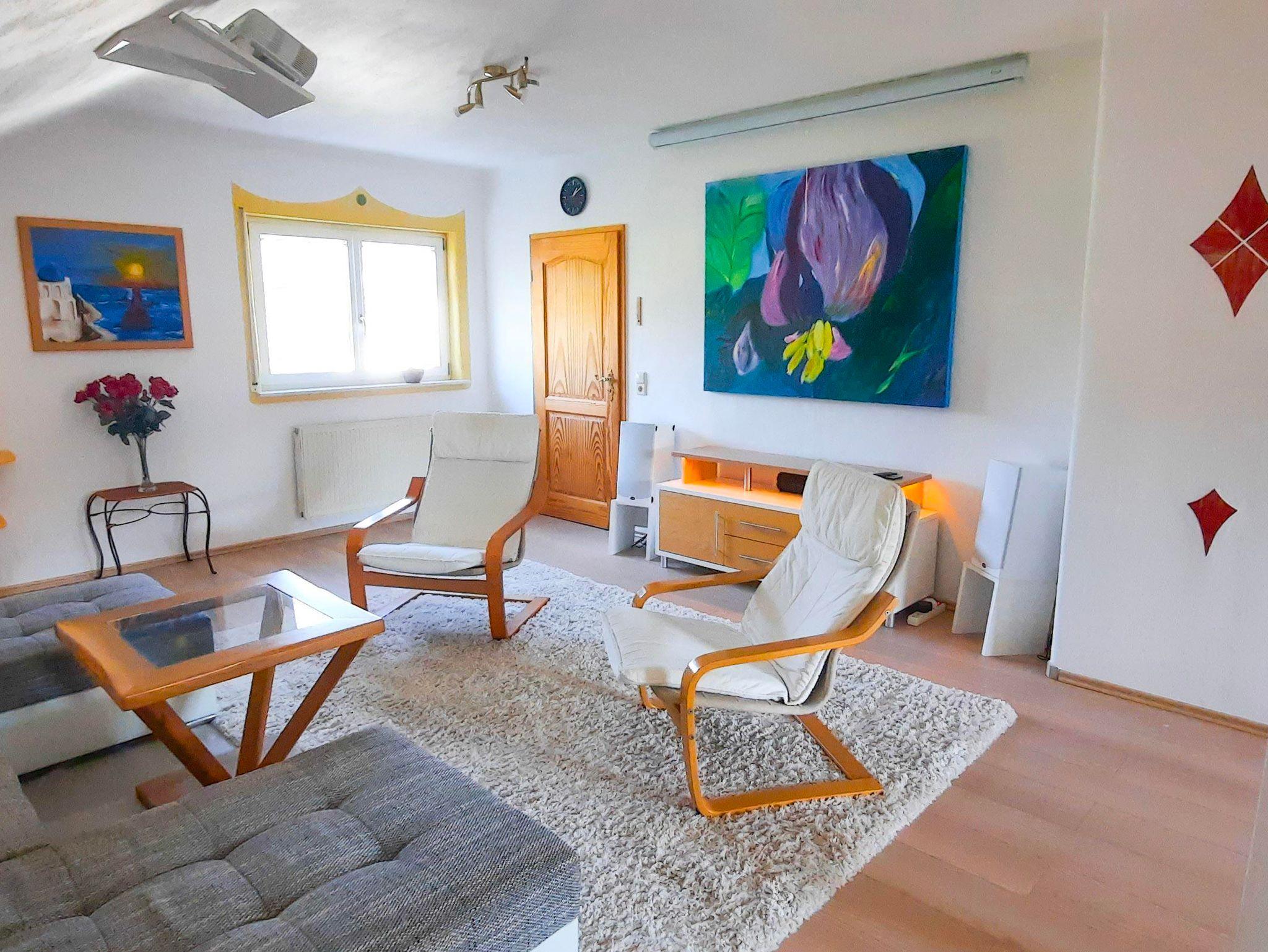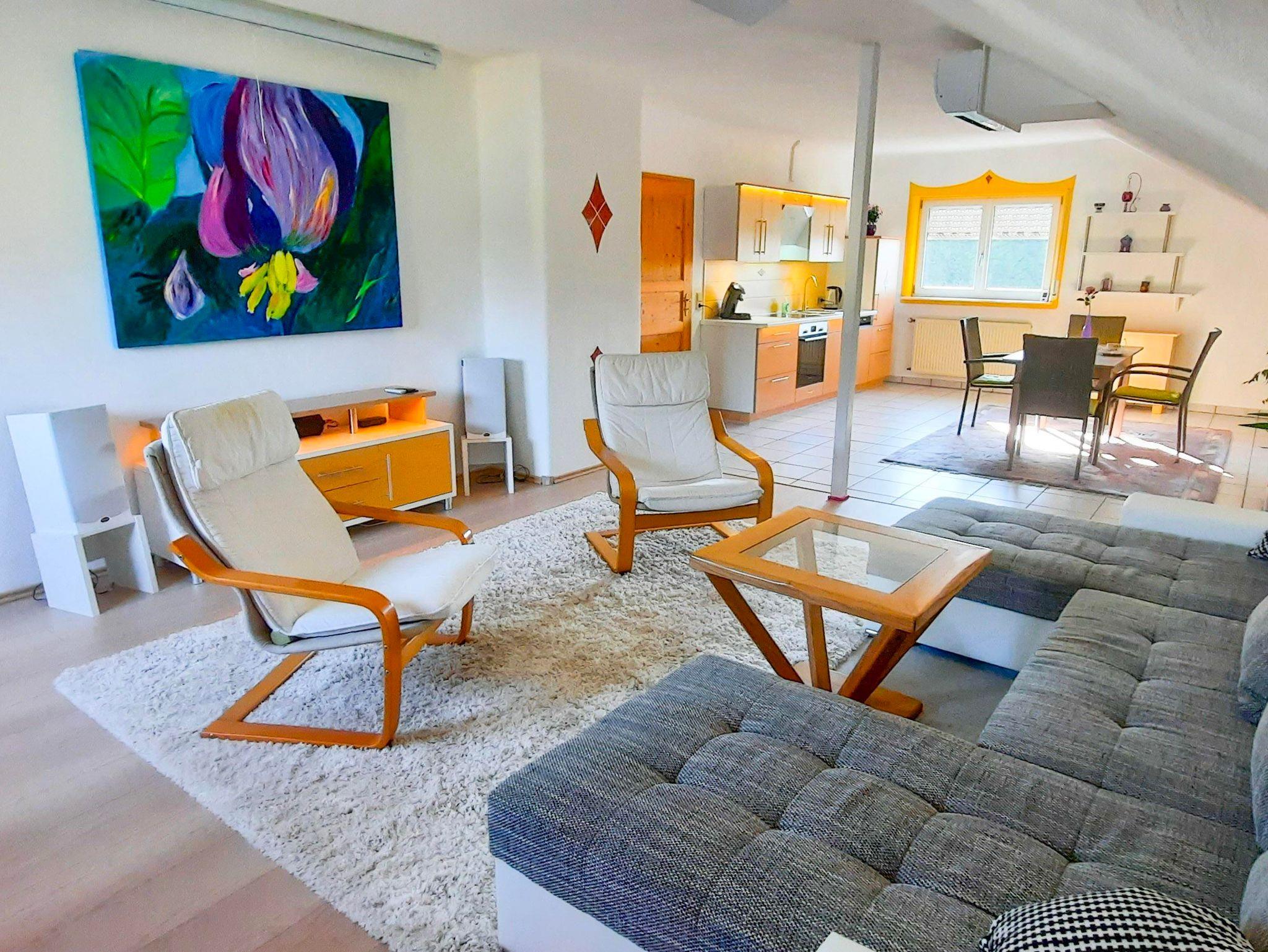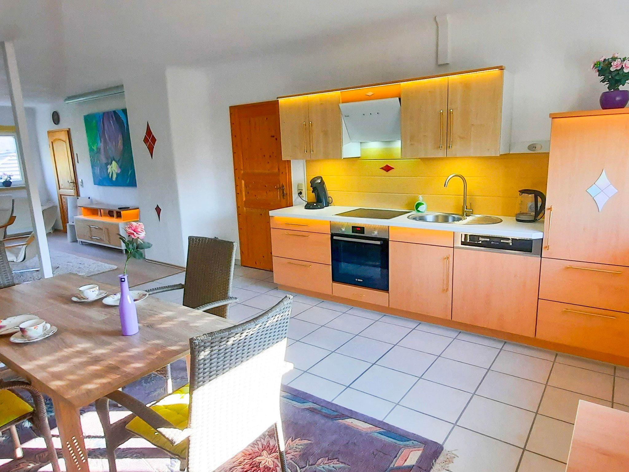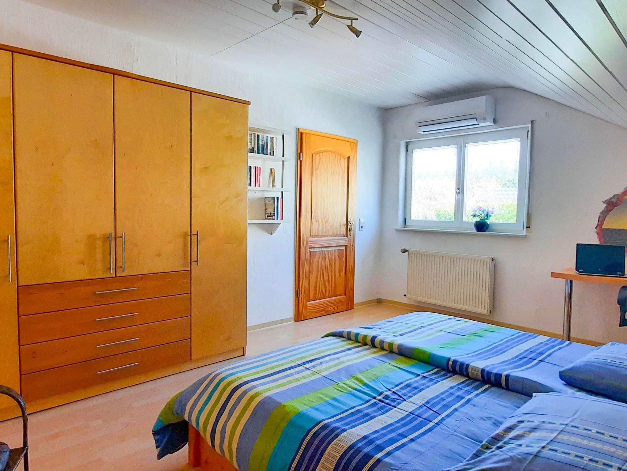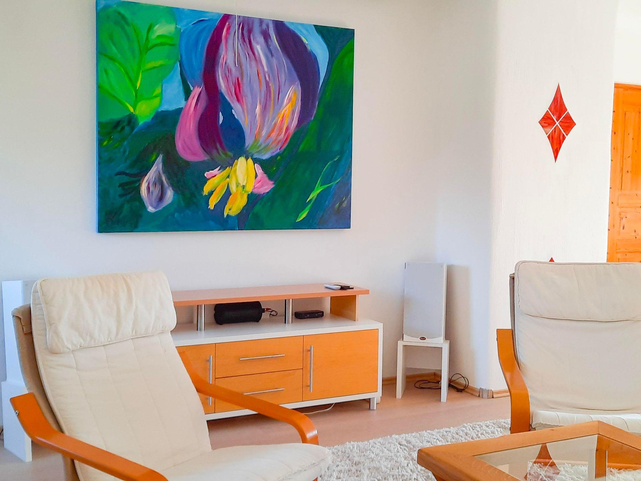 Kommen Sie zur Ruhe in unserer neuen und gemütlichen Wohnung mit Dachschrägung und Klimaanlage. Im Wohnzimmer finden Sie eine gemütliche Sitzecke sowie einen Beamer für entspannte Stunden. Die komplett ausgestattete Küche verfügt über einen Backofen, Elektroherd, Kühlschrank, Geschirrspülmaschine, eine Kaffeemaschine und einen Wasserkocher. Das Schlafzimmer ist mit Bio-Massivholzmöbeln und einem komfortablen Doppelbett ausgestattet. Das Bad bietet eine Dusche und ein WC. Auf Anfrage kann auch unser Billardtisch genutzt werden.