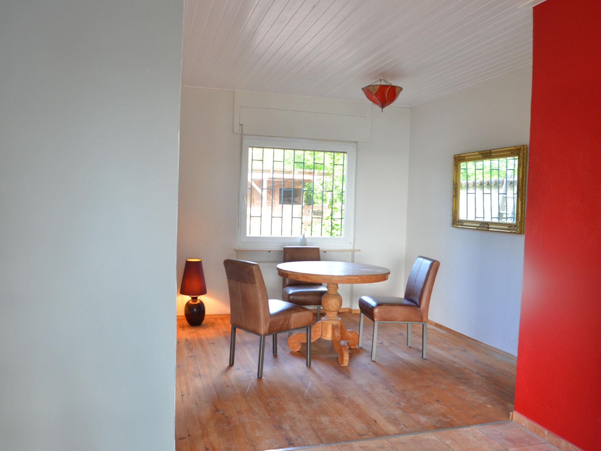 Auf gleicher Ebene ist das Schlafzimmer und separate Toilette. Ein neu gestaltetes Bad mit Wanne und ebener Dusche befindet sich um Untergeschoss.