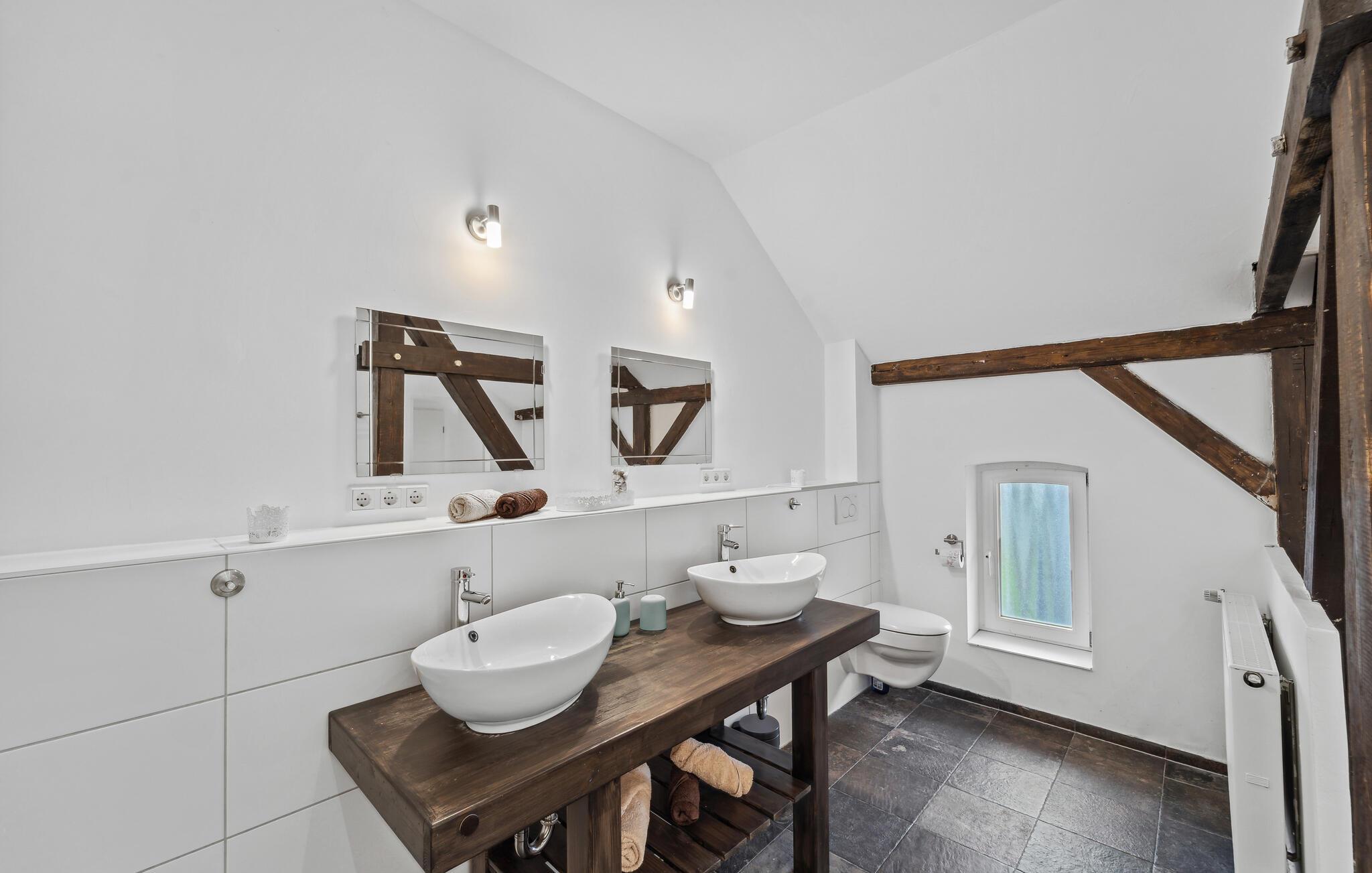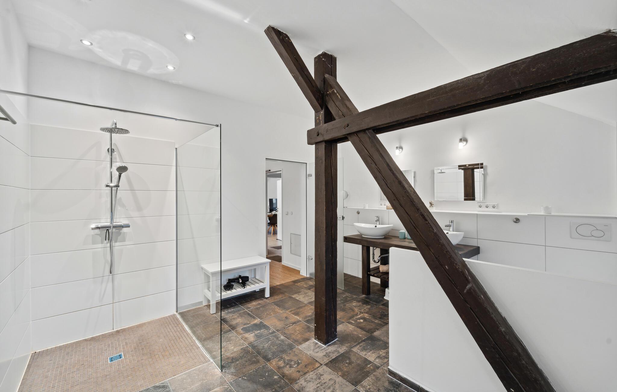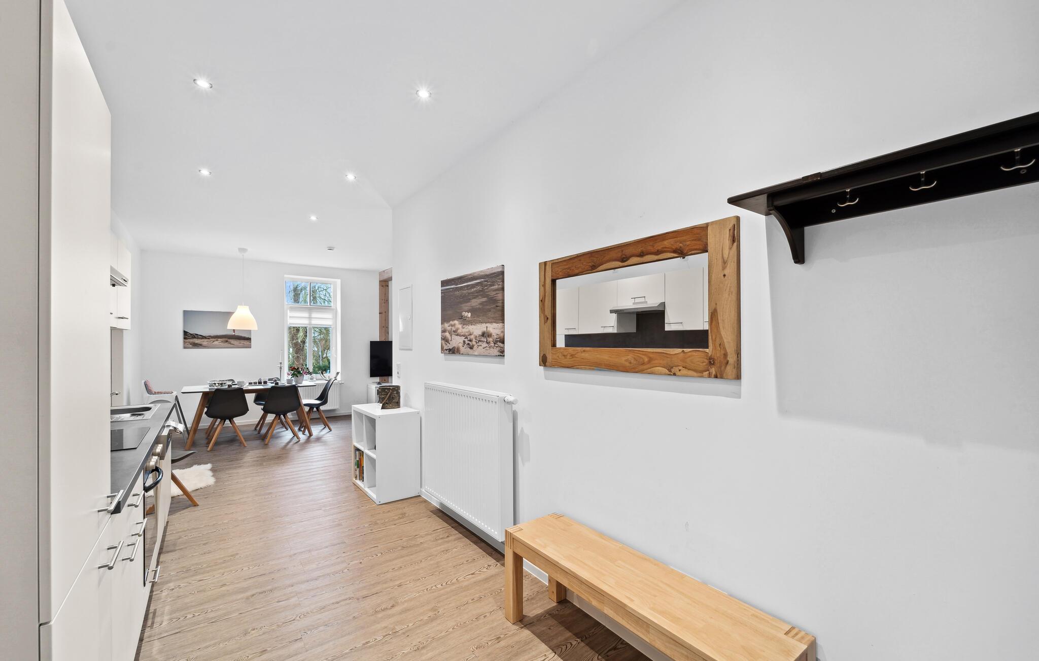 Freuen Sie sich auf Ihren Urlaub in dieser wunderschönen Ferienwohnung, die sich auf einem Hof mit einer weiteren Ferienwohnung befindet. Die Kombination auf Fachwerk, hohen Fenstern und moderner Einrichtung lädt Sie ein Ihre Ferienzeit voll und ganz zu genießen. Die hellen Räume lassen keine Ihrer Wünsche offen und versprechen Klein und Groß den idealen Ferienalltag beim Kochen, Essen, Spielen und Relaxen. Freuen Sie sich auch auf Ihre ans Haus anschließende Terrasse und den schönen Gemeinschaftsgarten, in dem Sie sich Sonnen und Ihren Kindern beim Umhertoben zusehen können.
