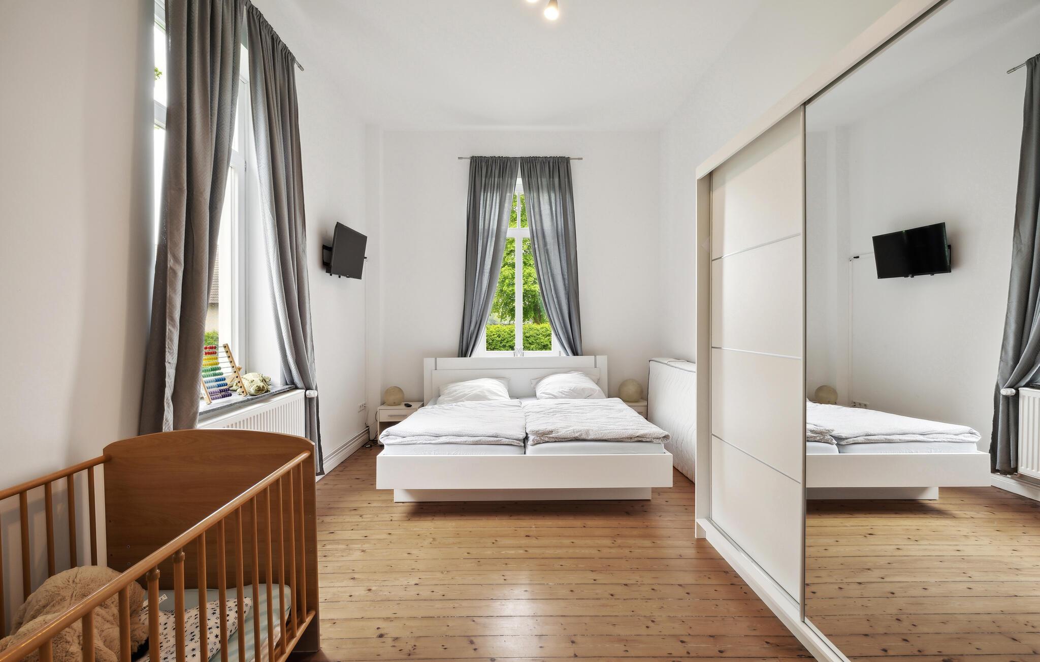 Verbringen Sie in diesem einladenden historischen Haus mit Ihren Lieben eine unvergessliche Auszeit in stilvollem Ambiente. In den komfortablen Innenräumen dieses Hauses genießen Sie eine wunderschöne Aussicht auf die Umgebung. Helle Räume mit wohnlich-moderner Einrichtung geben Ihnen die Möglichkeit, die gemeinsame Zeit in vollen Zügen zu genießen. Entspannen Sie nach einem erlebnisreichen Tag in der Sauna oder am leise prasselnden Kaminofen.