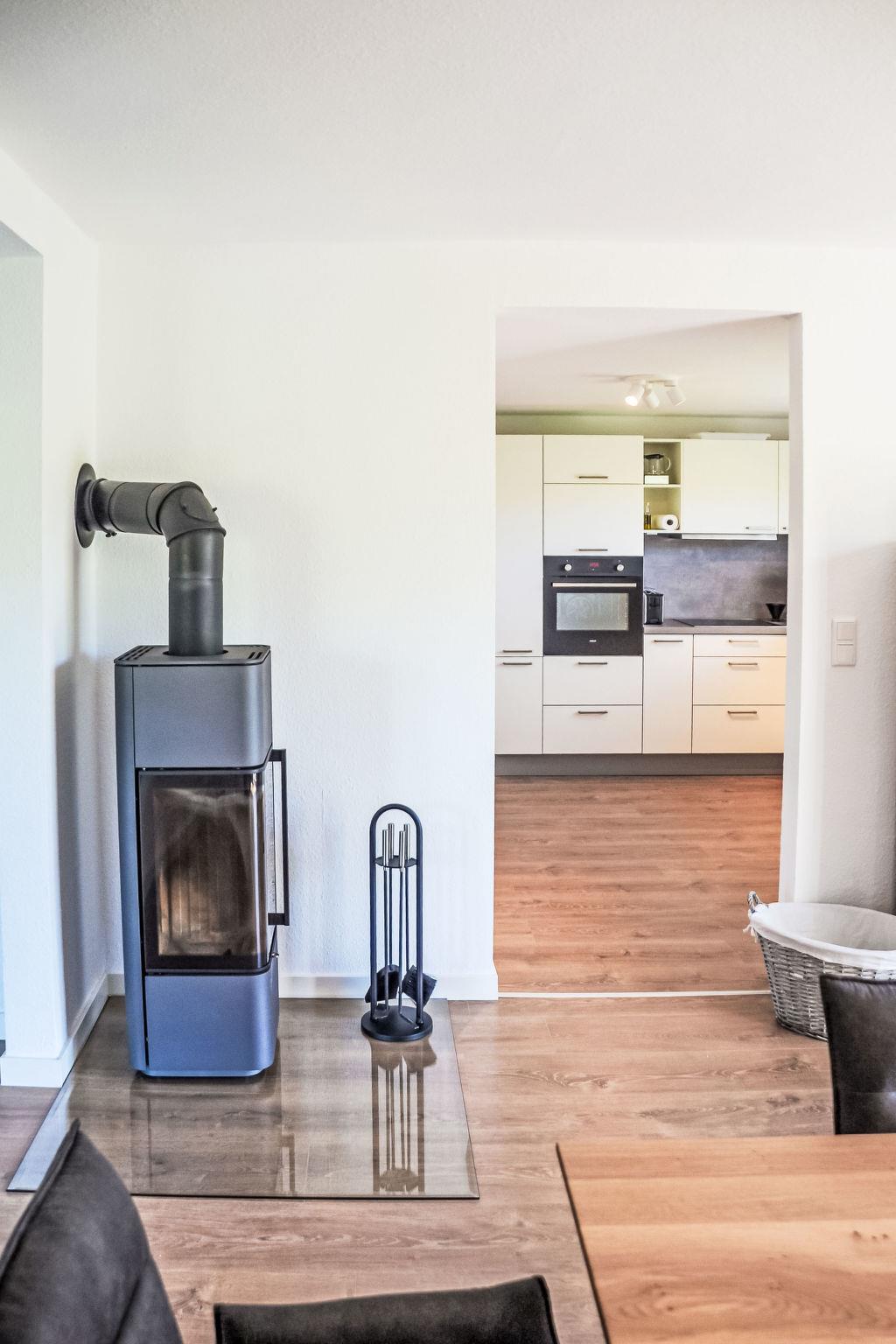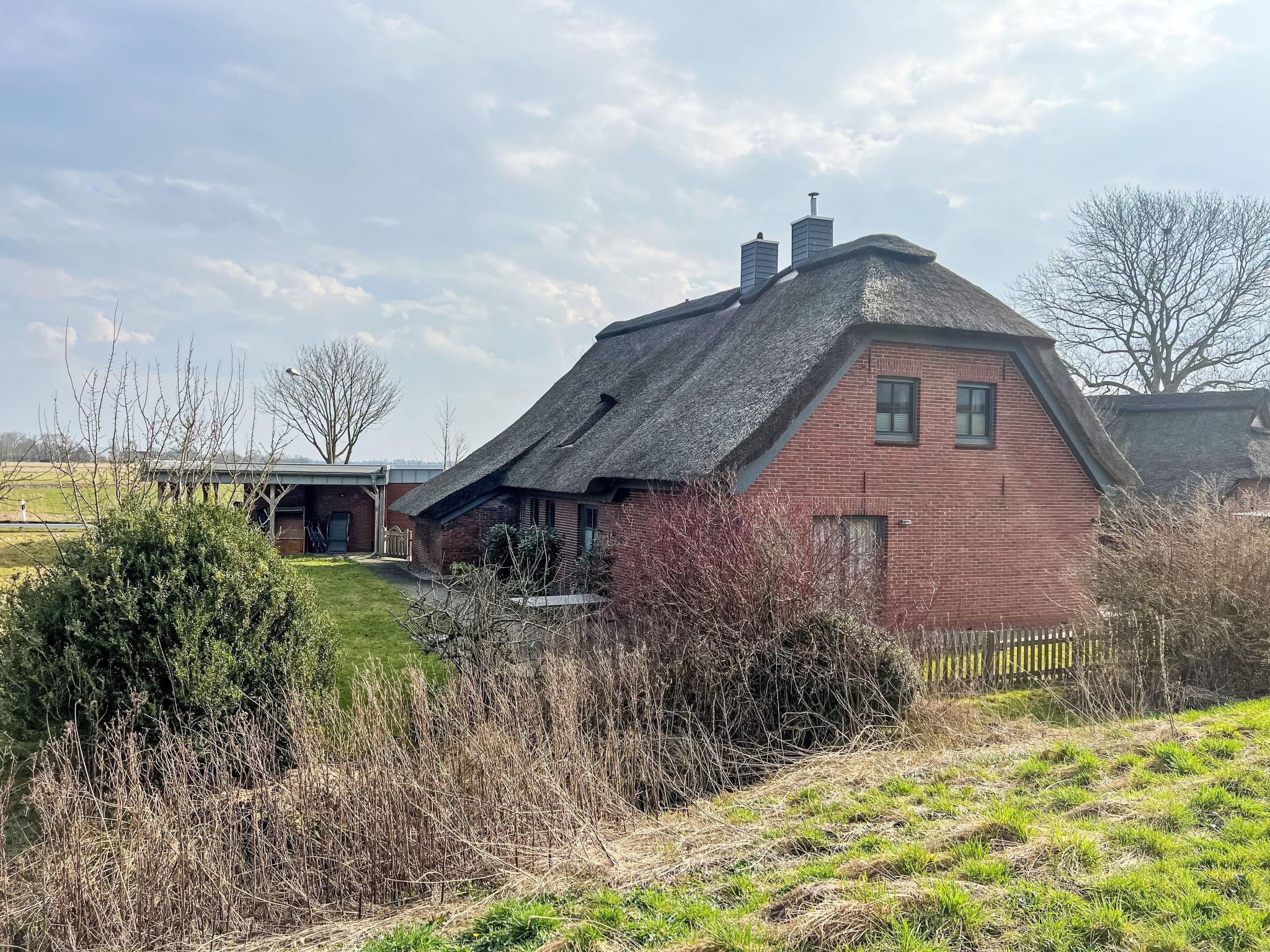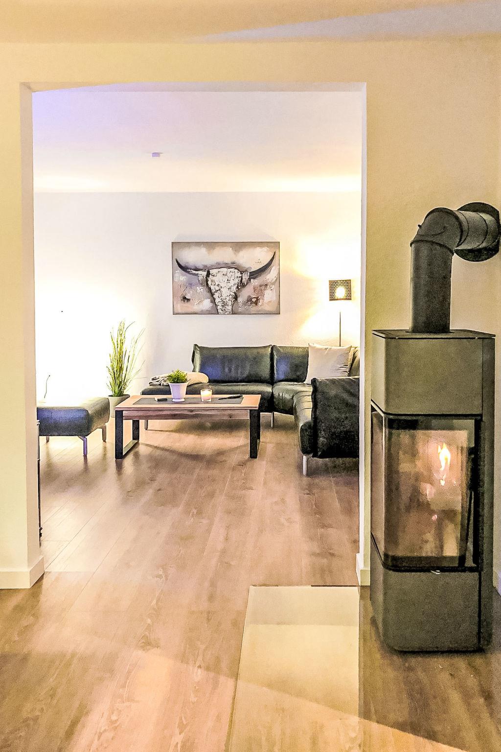 "Westerdeich", 4-room house 125 m2 on 2 levels. Tasteful and cosy furnishings: living room with Scandinavian wood stove and satellite TV (flat screen), radio. Exit to the terrace. 2 rooms, each room with 1 double bed (2 x 90 cm, length 200 cm). Open kitchen (oven, dishwasher, 4 ceramic glass hob hotplates, toaster, kettle, microwave, electric coffee machine). 2 baths/WC, Sauna. Upper floor: 1 room with 1 double bed (2 x 90 cm, length 200 cm). Terrace. Terrace furniture, barbecue. Facilities: hair dryer. Internet (WiFi, free). Please note: non-smoking house.