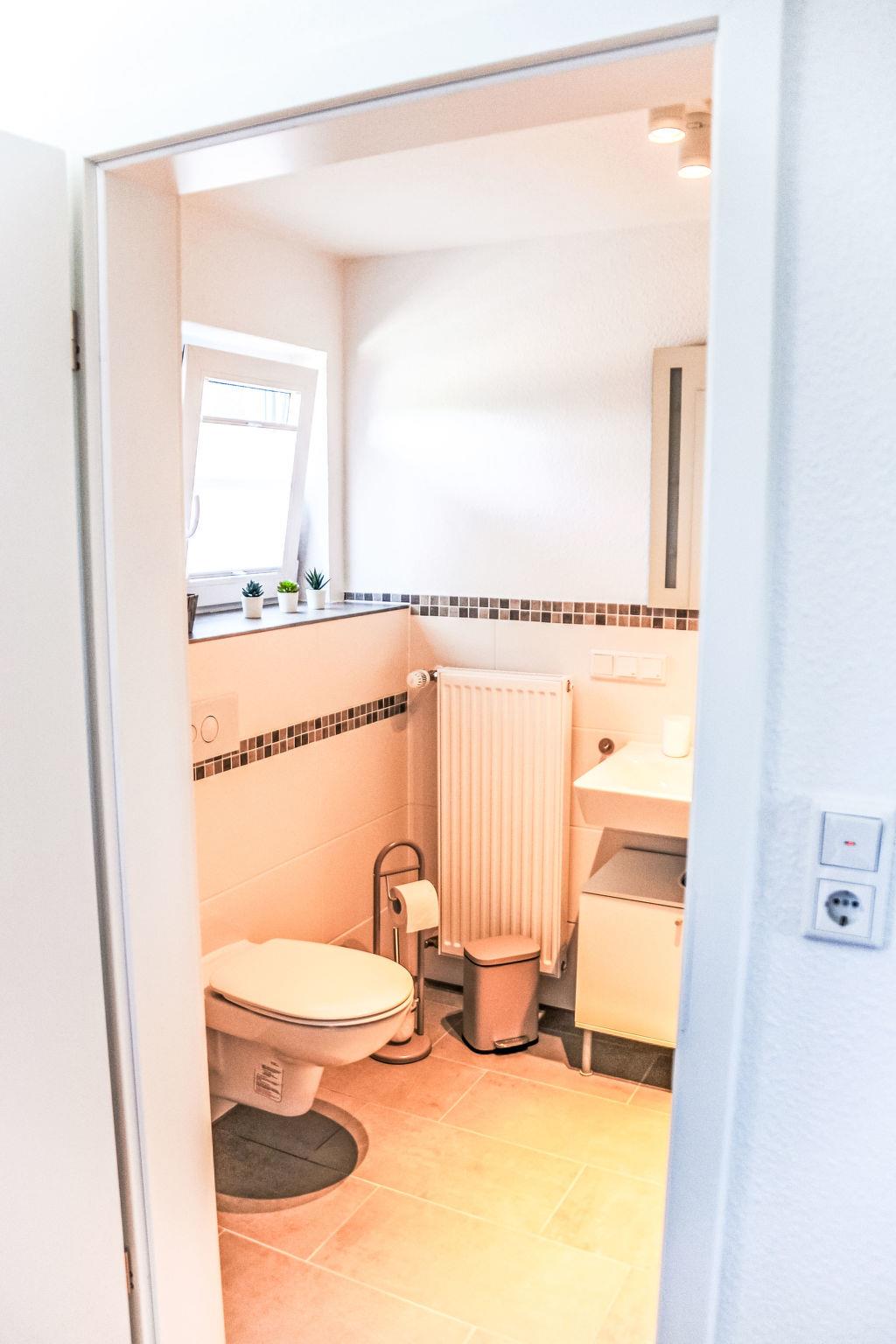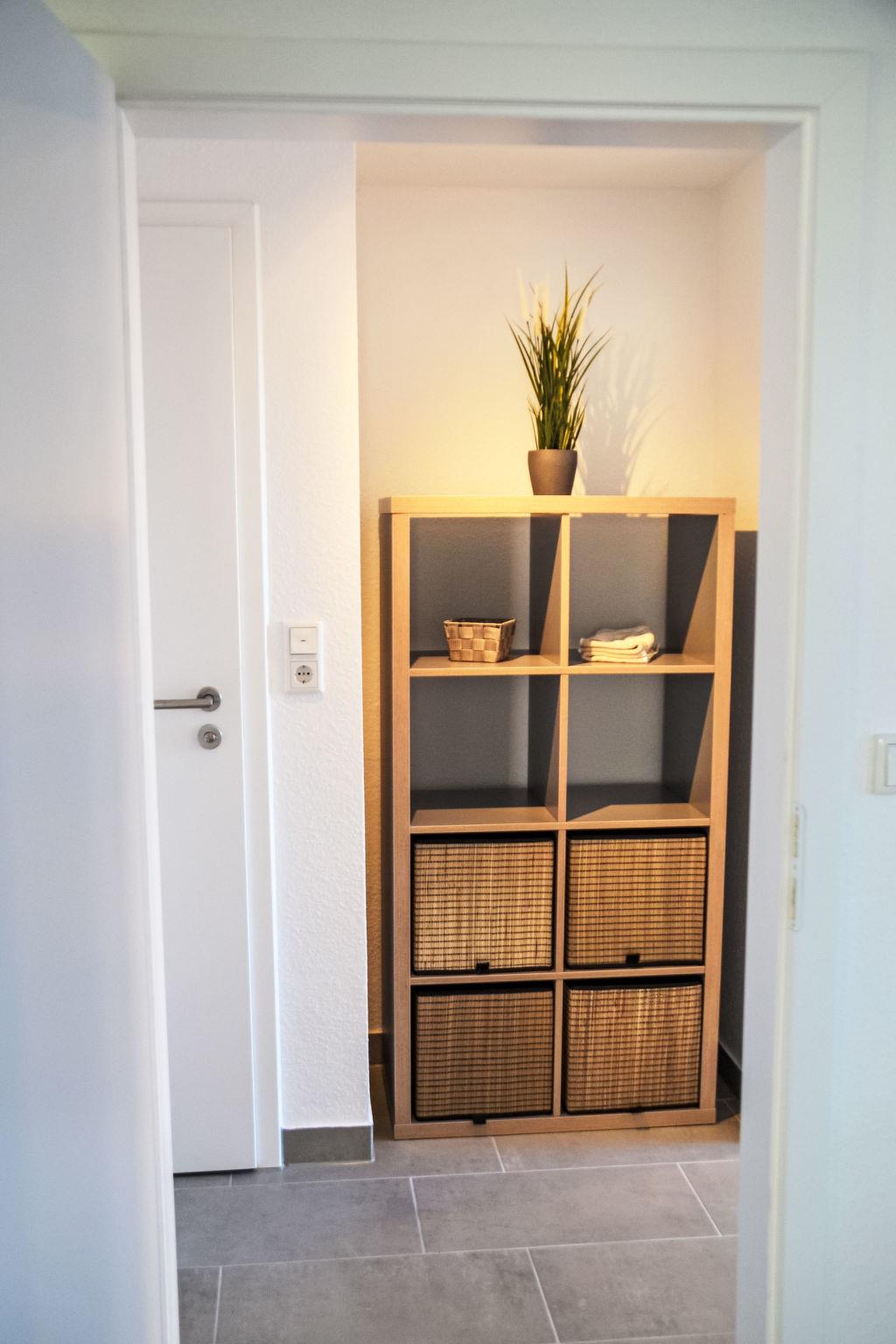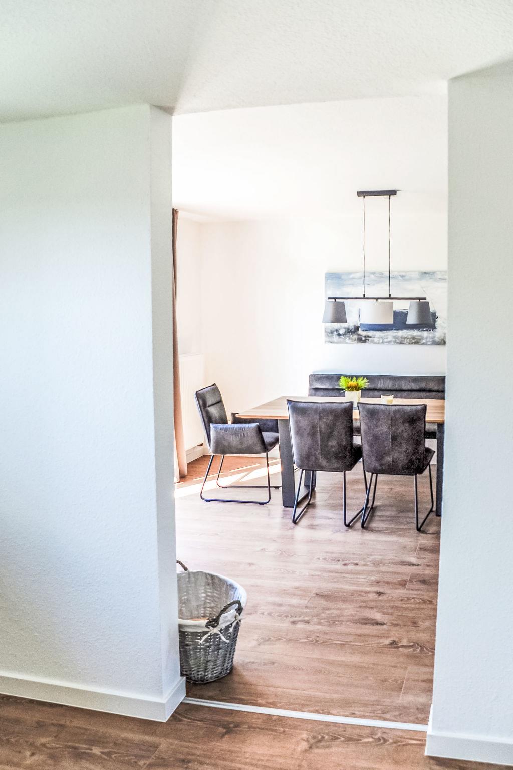 "Westerdeich", 4-room house 125 m2 on 2 levels. Tasteful and cosy furnishings: living room with Scandinavian wood stove and satellite TV (flat screen), radio. Exit to the terrace. 2 rooms, each room with 1 double bed (2 x 90 cm, length 200 cm). Open kitchen (oven, dishwasher, 4 ceramic glass hob hotplates, toaster, kettle, microwave, electric coffee machine). 2 baths/WC, Sauna. Upper floor: 1 room with 1 double bed (2 x 90 cm, length 200 cm). Terrace. Terrace furniture, barbecue. Facilities: hair dryer. Internet (WiFi, free). Please note: non-smoking house.