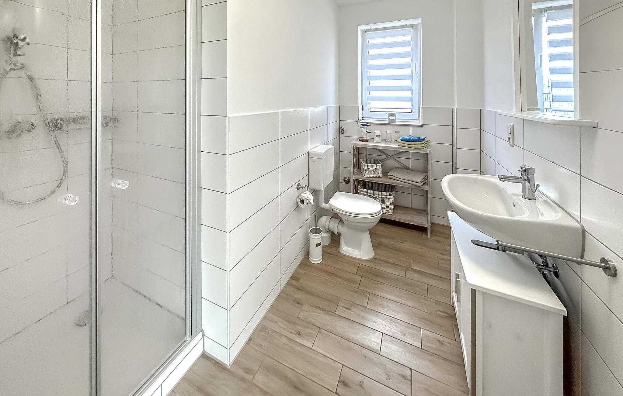 In Ortslage von Lubmin befindet sich auf dem ca. 370 qm großen Wohngrundstück im Erdgeschoss eines Wohnhauses die separate Ferienwohnung für zwei Personen. Der Strand am Greifswalder Bodden, Restaurants und Einkaufsmöglichkeiten befinden sich im Umkreis von ca. 500 m.Die ca. 40 qm große, 2022 renovierte und mit Fußbodenheizung ausgestattete Nichtraucher-Ferienwohnung verfügt über einen Wohnraum (Polstermöbel, Flachbild-TV, Esstisch) mit offener Küchenzeile (E-Kochplatten, Backofen, Kühlschrank, Geschirrspüler, Kaffeemaschine, Toaster, Wasserkocher), einen Schlafraum (Doppelbett), ein Bad (Dusche, WC, Fön) und einen Flur.