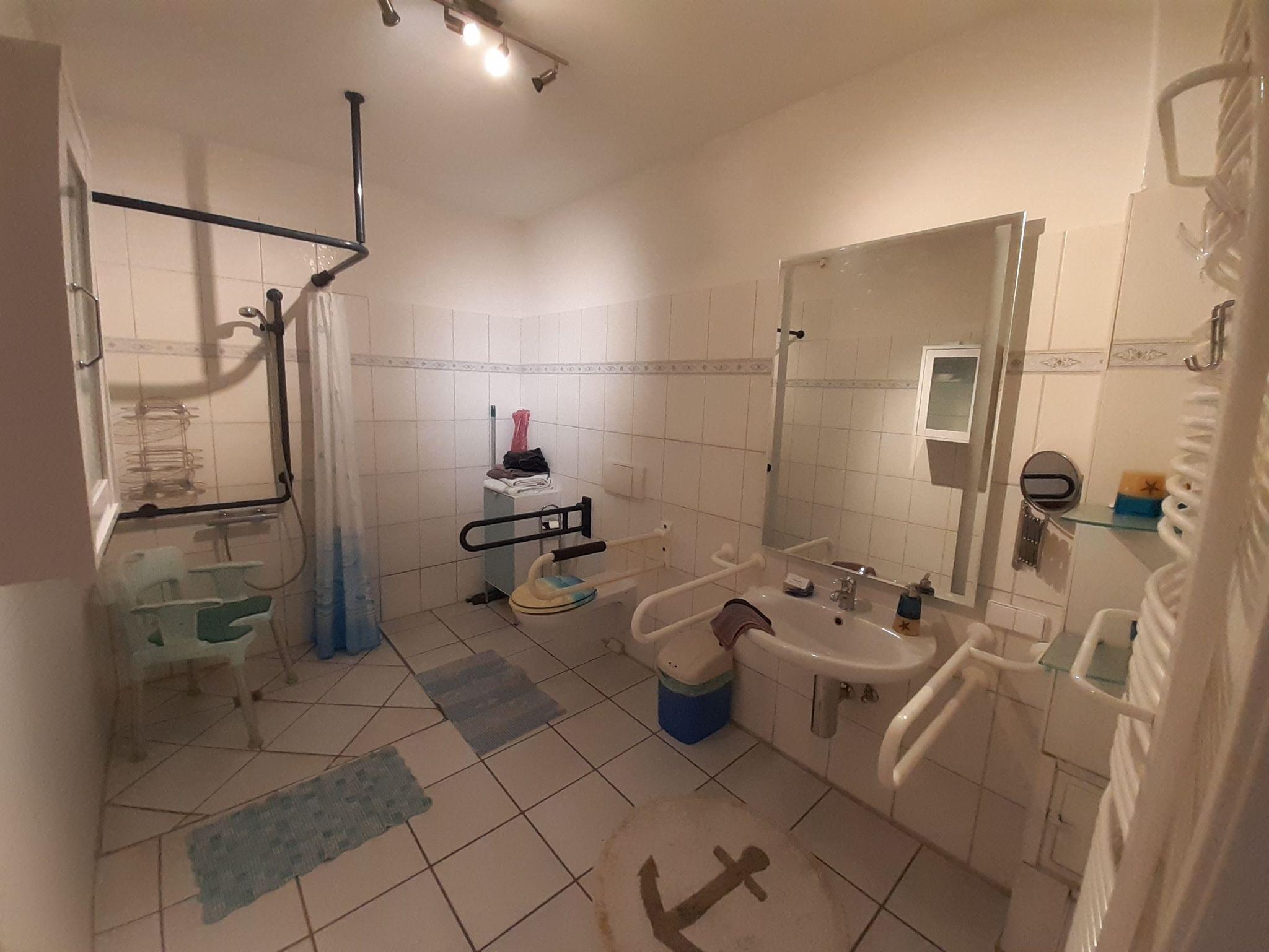 Diese rollstuhlgerechte Ferienwohnung entstand 2005. Sie besteht aus einem Schlafzimmer mit Doppelbett, einer Wohn - Essküche mit Kamin und ausziehbarer Schlafcouch, einem weiteren Zimmer mit Etagenbett, einem Wintergarten und einem rollstuhlgerechten Duschbad. Alle Betten sind allergikergercht ausgestattet. Die Böden sind alle mit Laminat /Fliesen ausgelegt, gerne auch für nur eine Nacht buchbar => 25,00 Euro Aufpreis!.