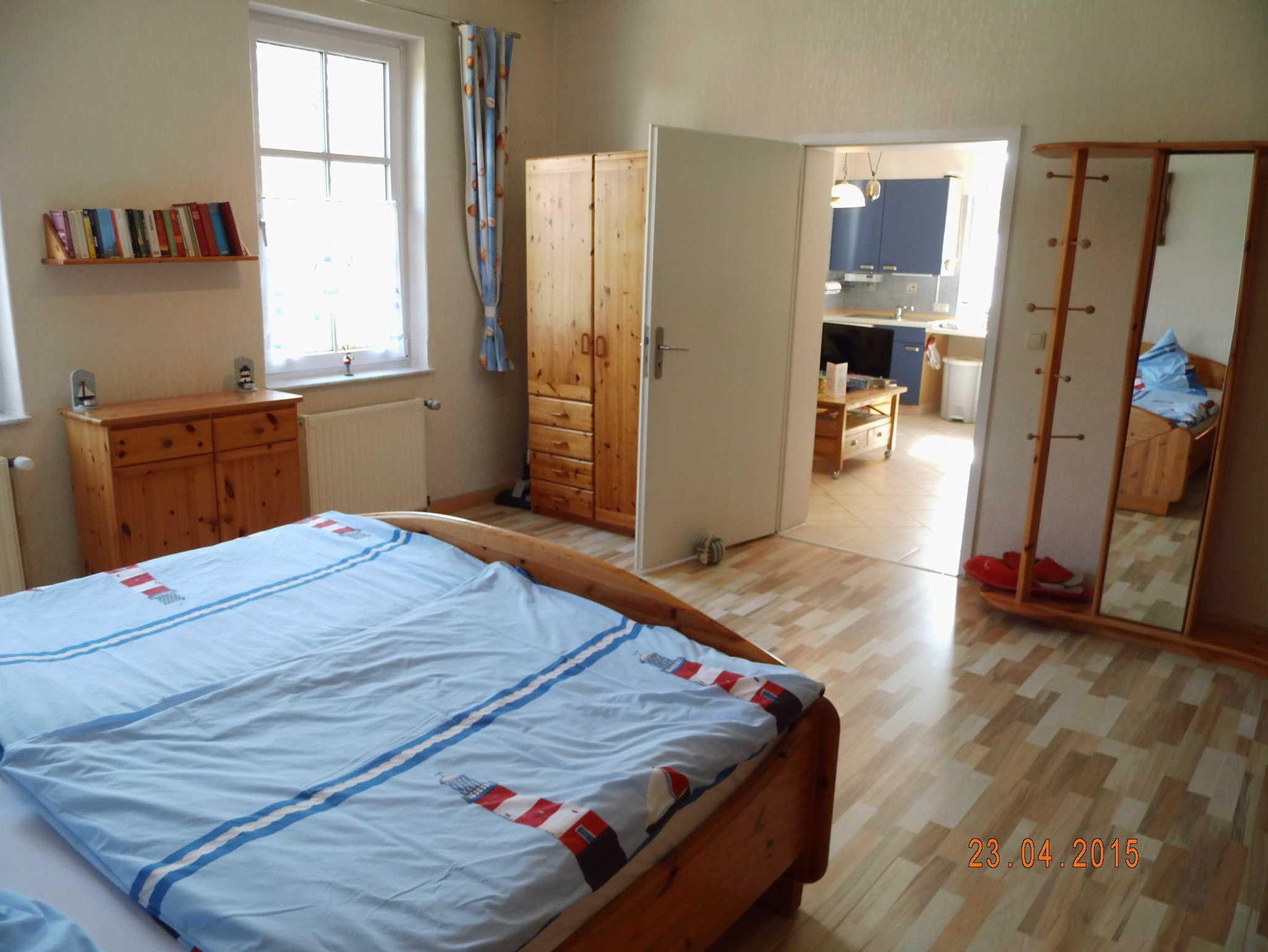 Das große Schlafzimmer ist eingerichtet mit einem Doppelbett (200x180), zwei großen Kleiderschränken, zwei Kommoden und einer Musikanlage (CD, Tape & Plattenspieler).