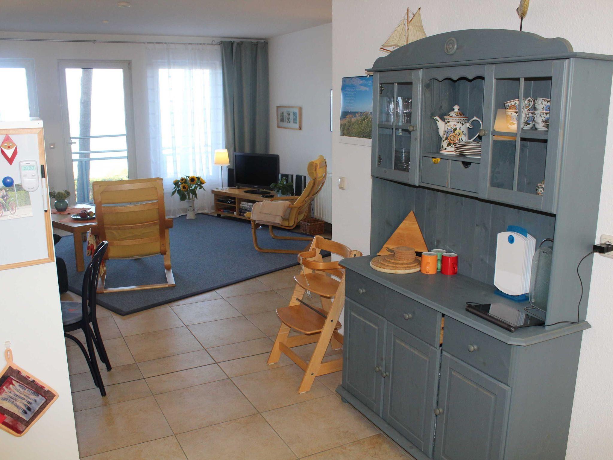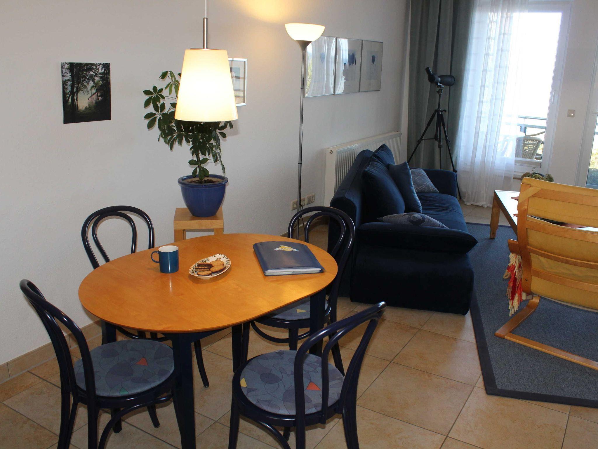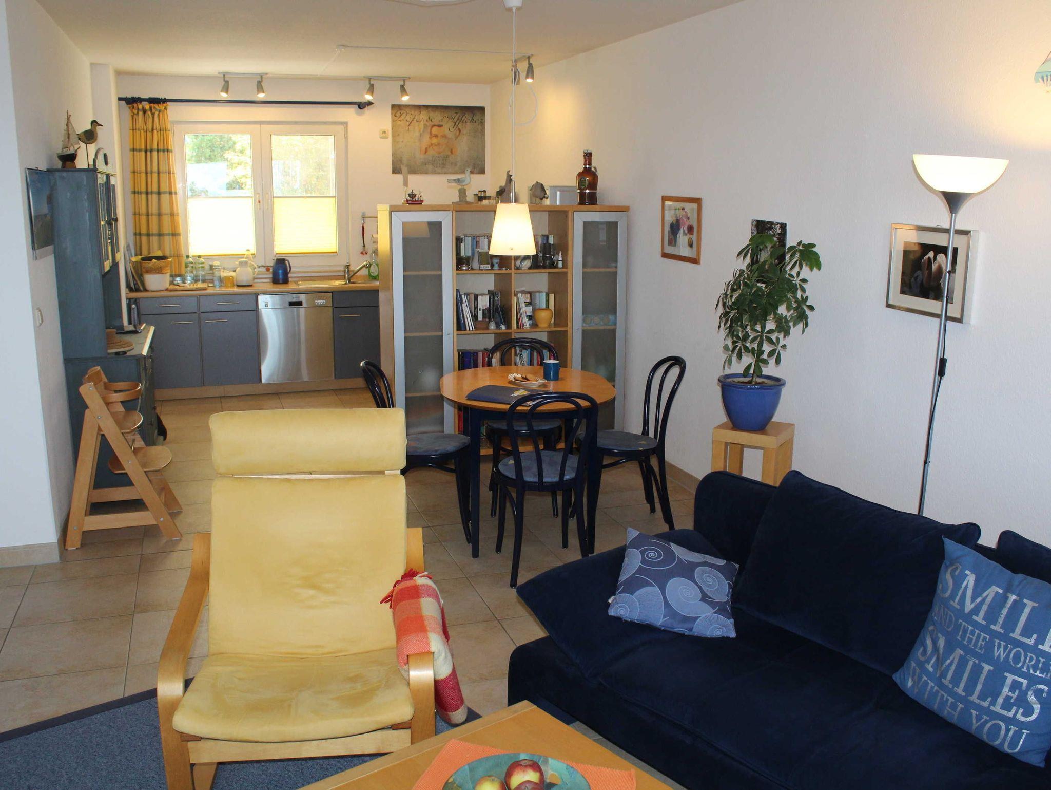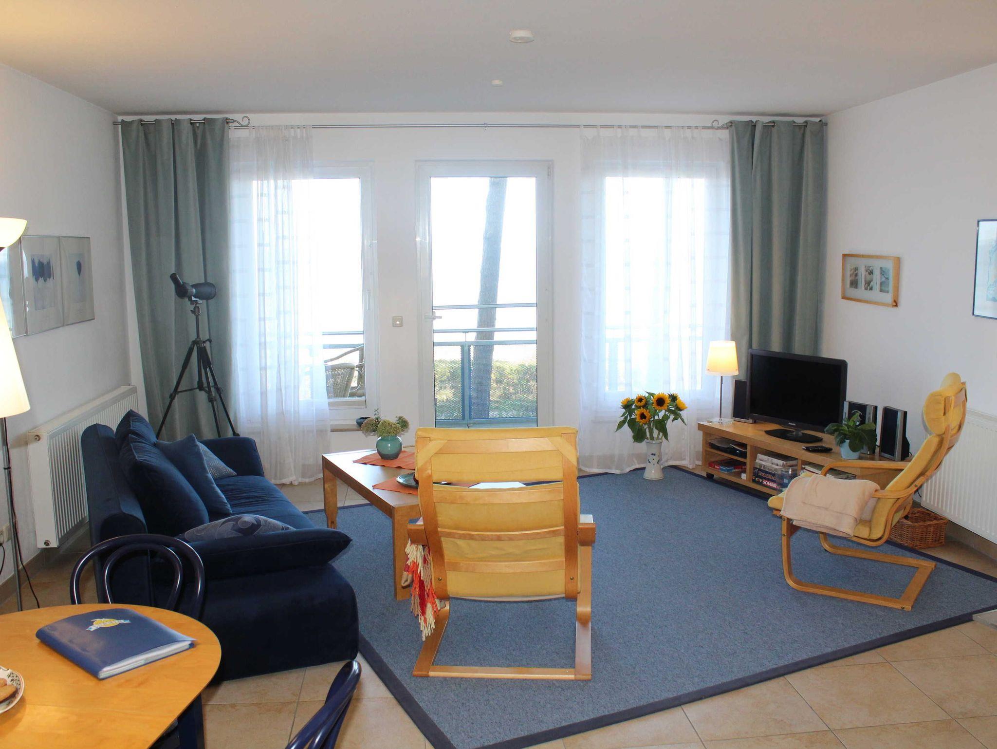 Diese komfortable Ferienwohnung vereint strandnahes Wohnen mit durchdachtem Komfort und ist dank Aufzug sowie behindertenfreundlicher Ausstattung auch für Gäste mit eingeschränkter Mobilität gut geeignet. Ihnen stehen ein Wohn-/Schlafraum mit gemütlicher Schlafcouch (1,40 m breit), ein separates Schlafzimmer mit Doppelbett (1,60 m breit), eine Küche sowie ein Badezimmer mit Badewanne und WC zur Verfügung. Für entspannte Stunden an der frischen Luft genießen Sie außerdem einen eigenen Balkon.