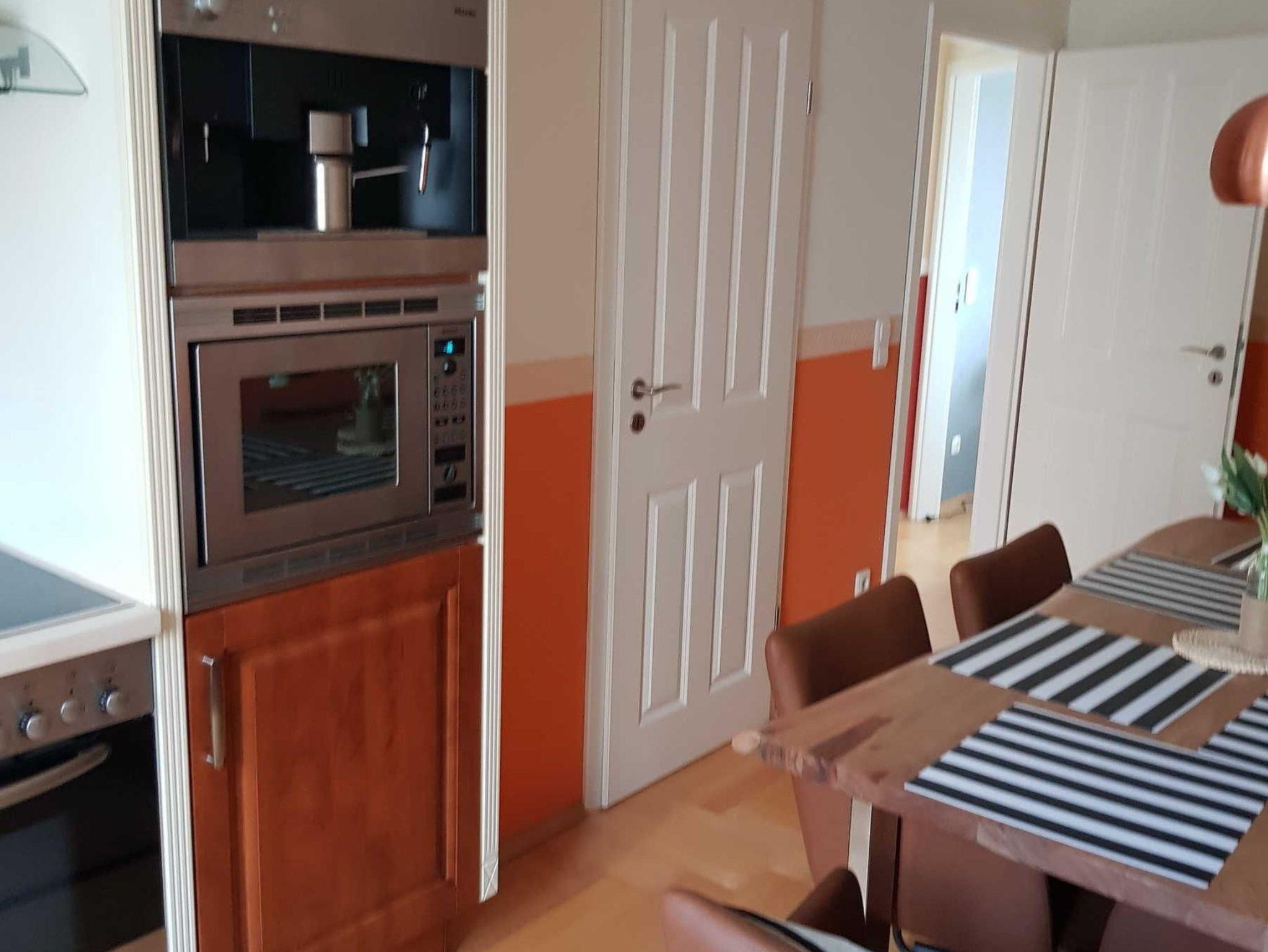 Die Küche ist umfassend ausgestattet und macht Selbstversorgung angenehm und unkompliziert: Spüle, Geschirrspüler, Mikrowelle, Herd, Backofen, Gefrierschrank, Kühlschrank, zusätzlicher Getränkekühlschrank sowie Kaffeemaschine sind vorhanden - ideal für Frühstück in Ruhe und gemeinsame Abendessen.