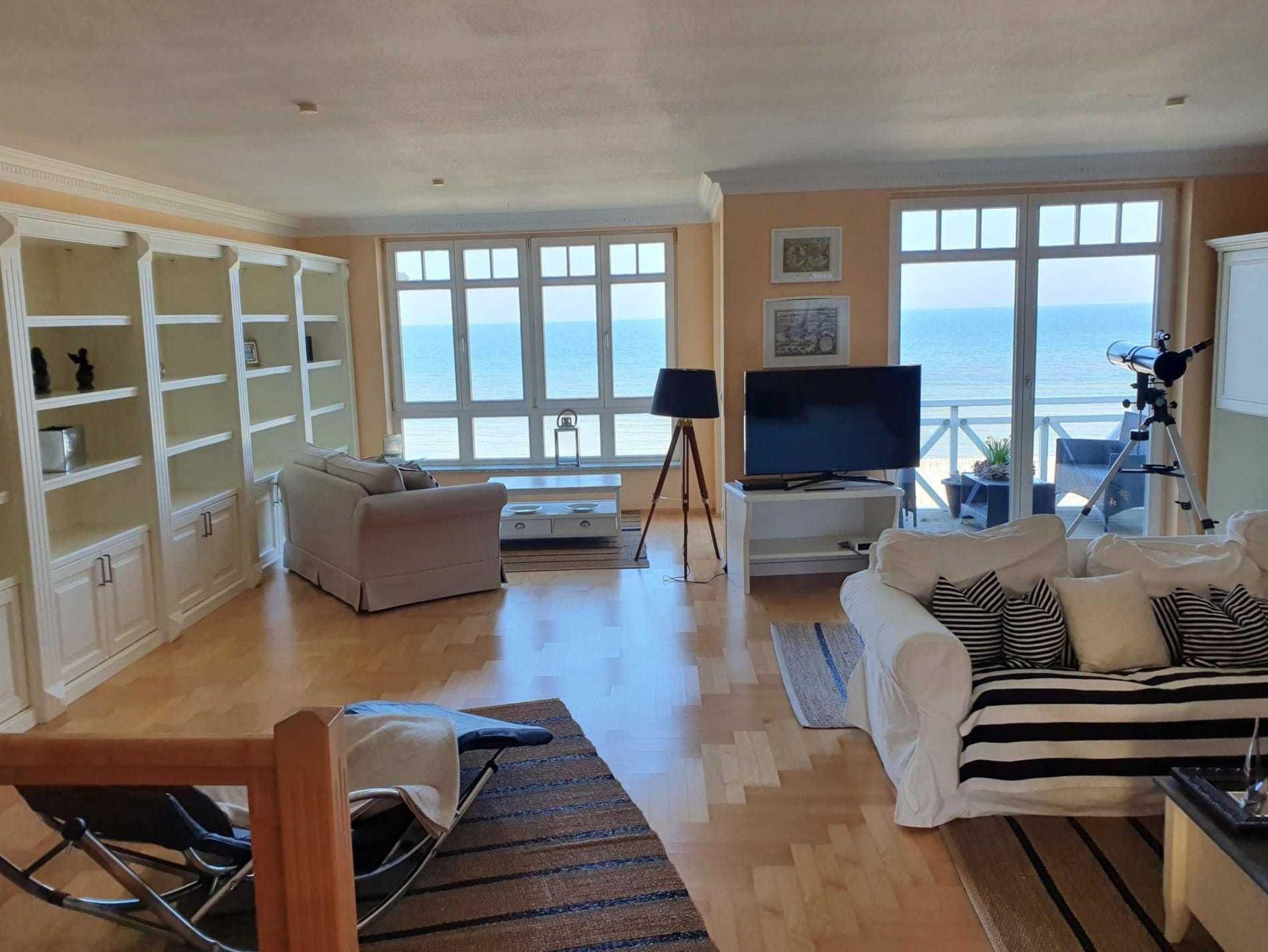 Diese großzügige Ferienwohnung bietet auf ca. 157 m² und zwei Etagen viel Raum für entspannte Urlaubstage mit bis zu sechs Gästen. Mit insgesamt drei Schlafzimmern, einem großen Wohnzimmer mit Meerblick und mehreren TV-Geräten ist sie bestens geeignet, wenn Sie Komfort, Platz und Ostsee-Atmosphäre verbinden möchten. Zwei Badezimmer erleichtern den Tagesablauf - besonders bei Familien oder wenn mehrere Personen gemeinsam reisen.
